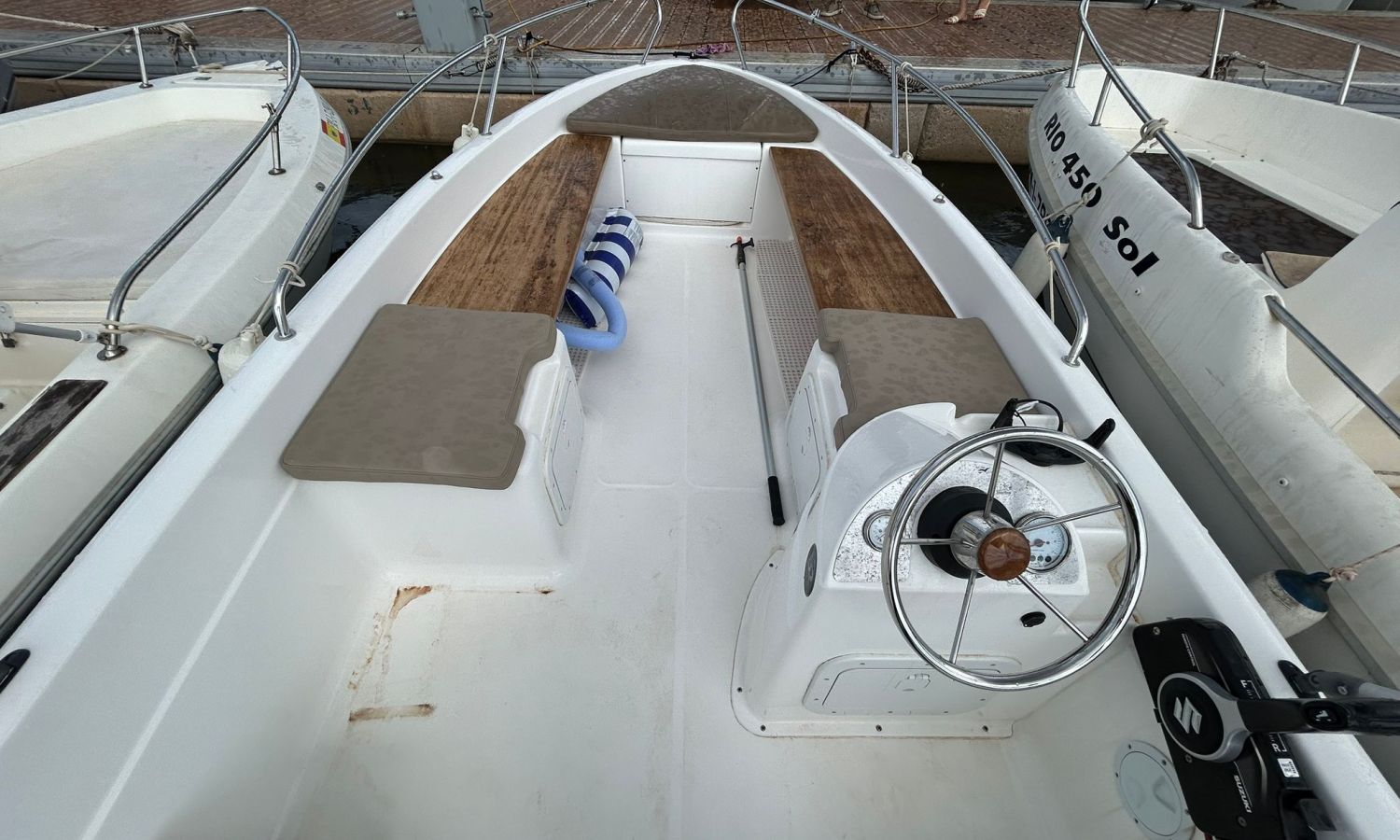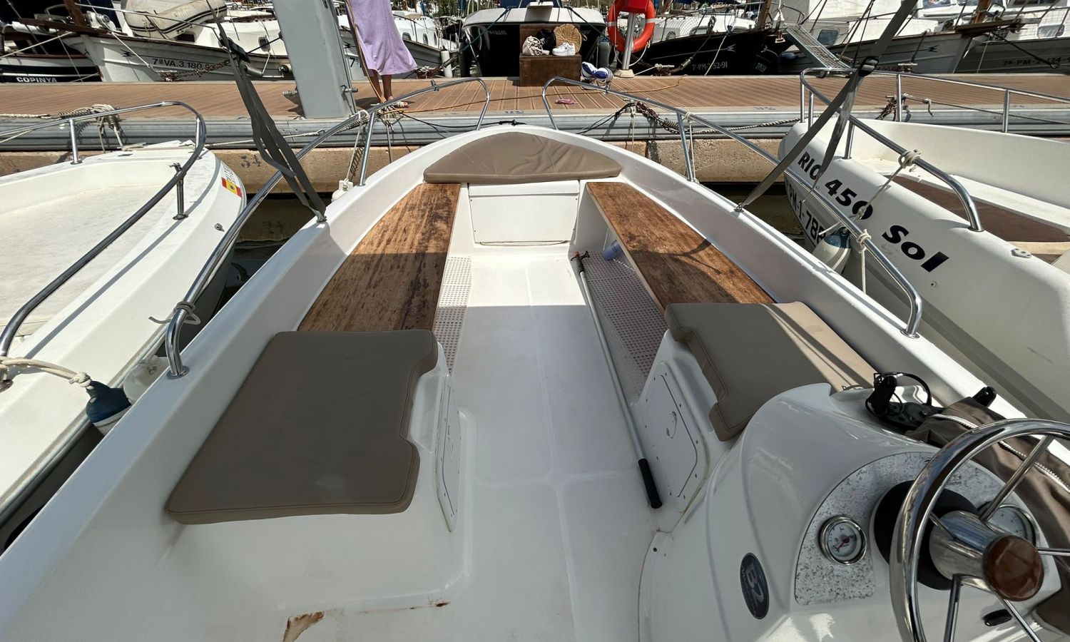 Bath ladder - Bimini top - Garmin sonar - 2 USB ports - 2 wooden benches - 2 summer and winter covers - Anchor and chain - Trailer - Antifouling.Boat description