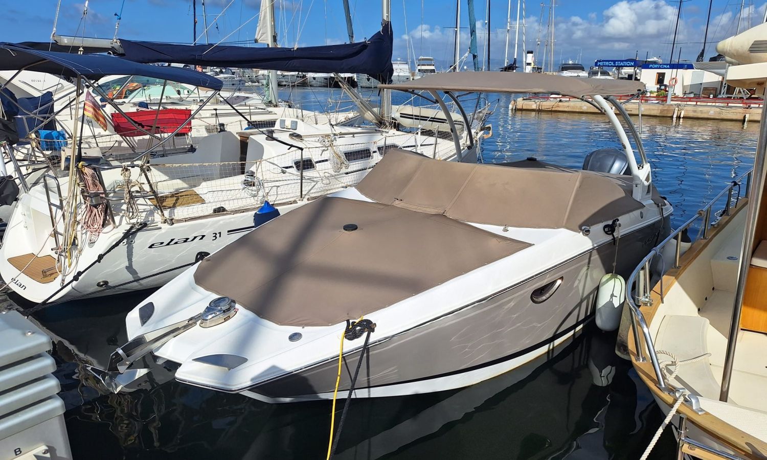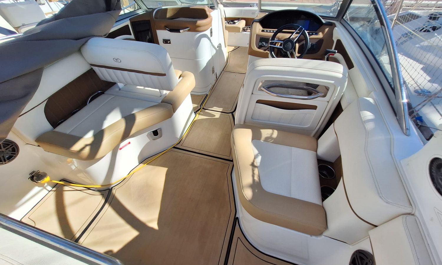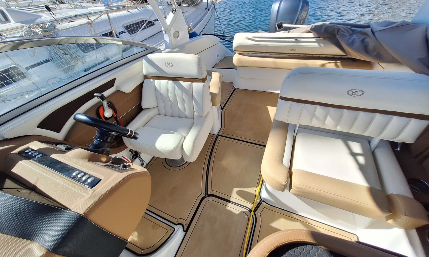 Navigation lights - Flaps Lenco - Electric windlass - Audio equipement - Horn - Marine toilet with holding tank - Port intake - Stern shower - Seadeck - Ski mast - Anchor tarpaulin - Stainless steel anchor - Stern bow sundeck - Gps/Plotter/Deep finder - Battery charger - AntifoulingBoat description