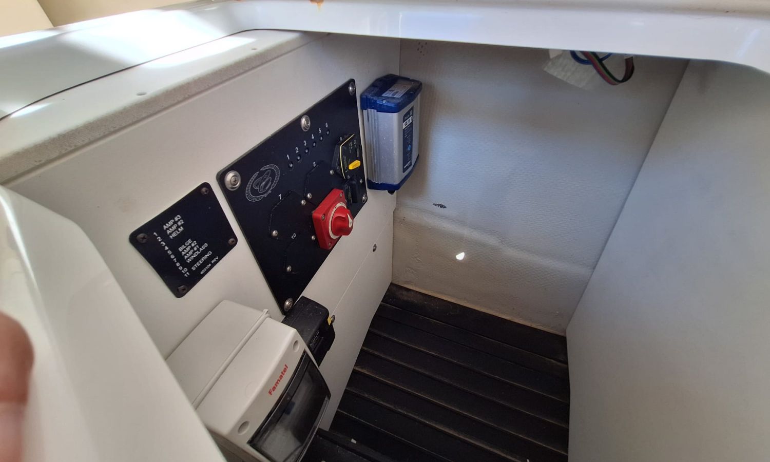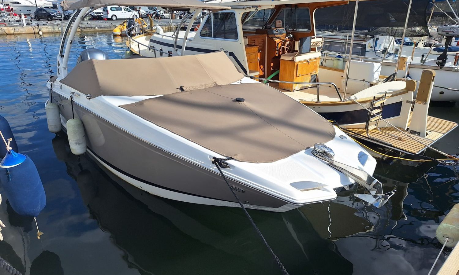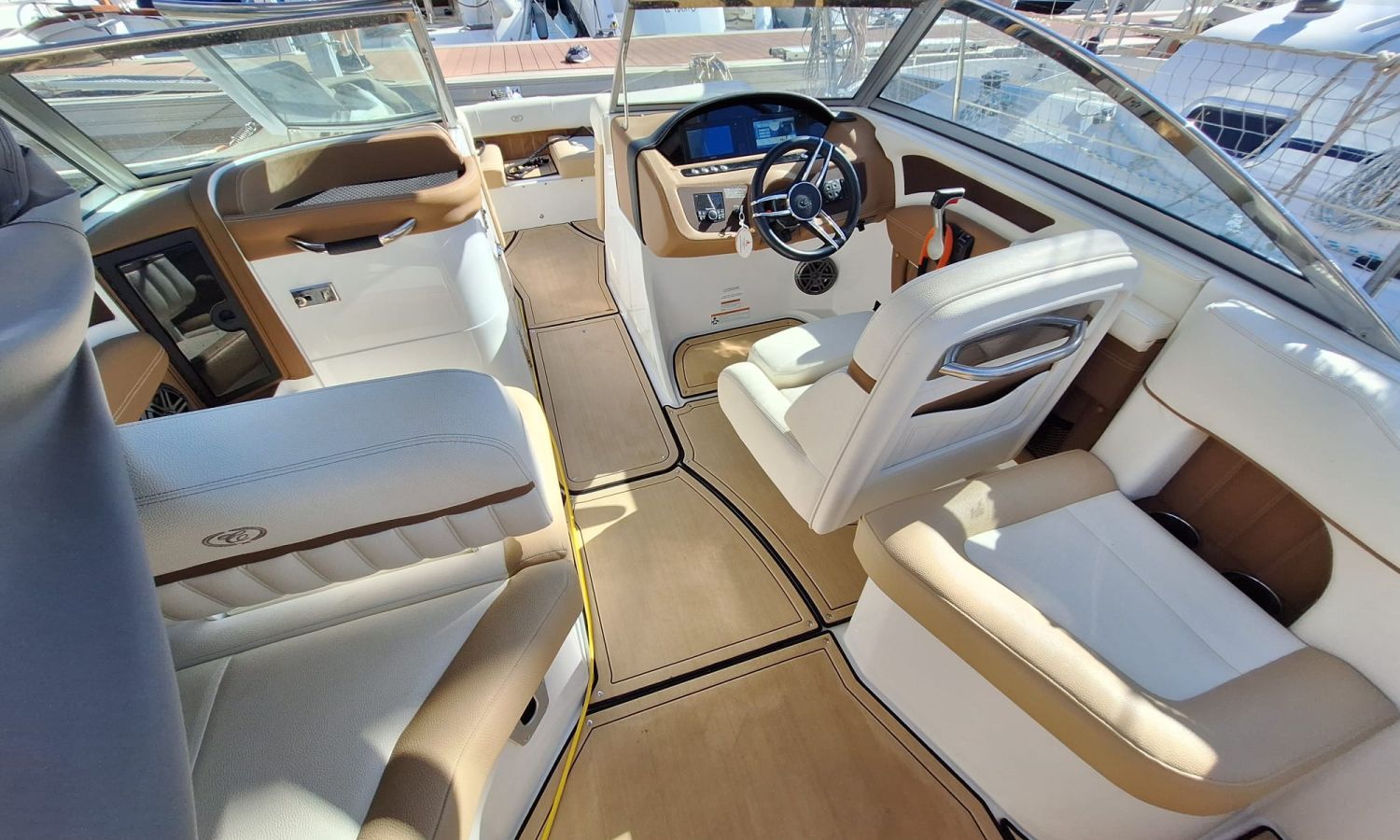 Navigation lights - Flaps Lenco - Electric windlass - Audio equipement - Horn - Marine toilet with holding tank - Port intake - Stern shower - Seadeck - Ski mast - Anchor tarpaulin - Stainless steel anchor - Stern bow sundeck - Gps/Plotter/Deep finder - Battery charger - AntifoulingBoat description