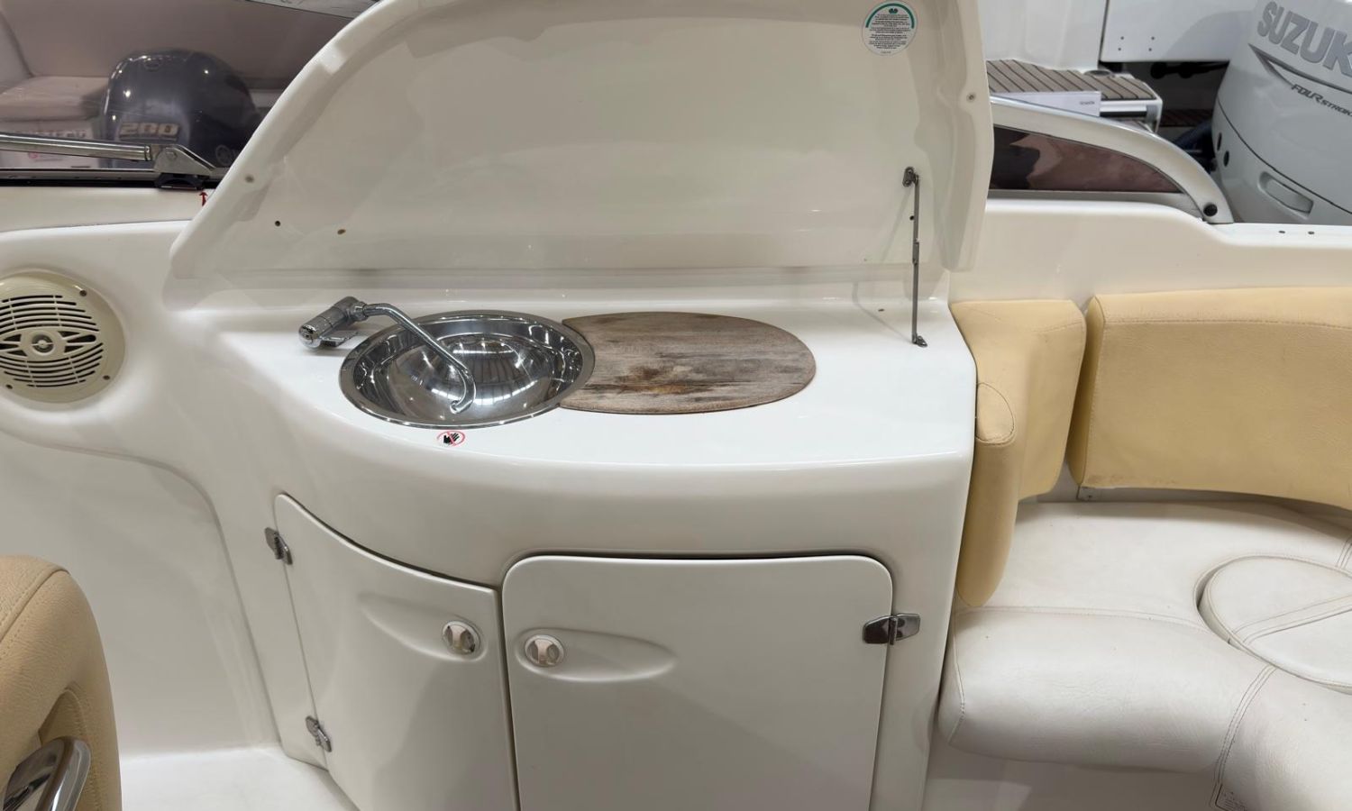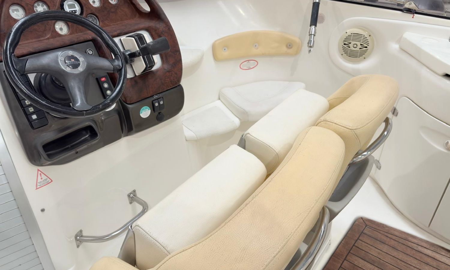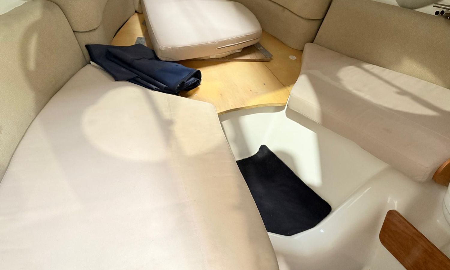 Anchor tarpaulin - Parasol awning - Electric anchor windlass - Table in the bathhub - Sink - Refrigerator - Marine toilet - Bathing platform with ladder - Audio equipement - Bow solarium - Aft sundeck - Bow thruster - Antifouling.Boat description