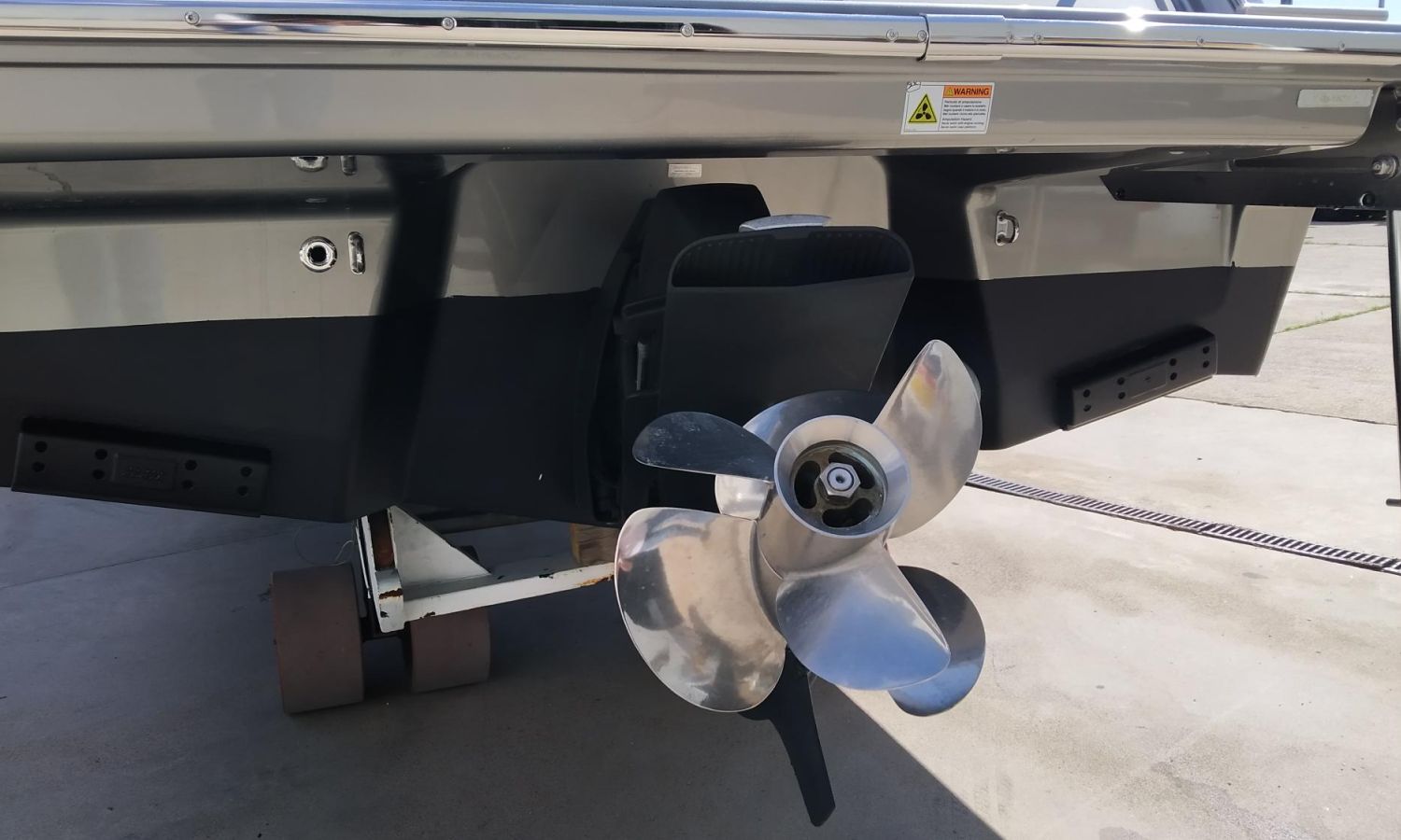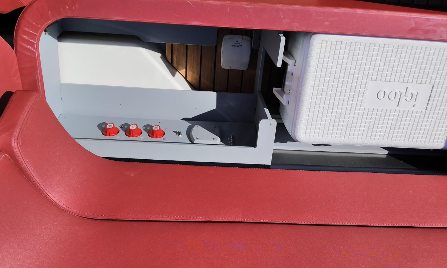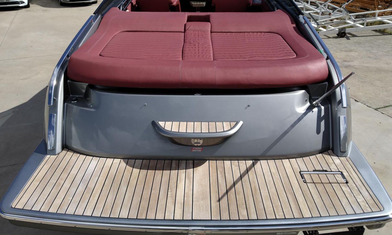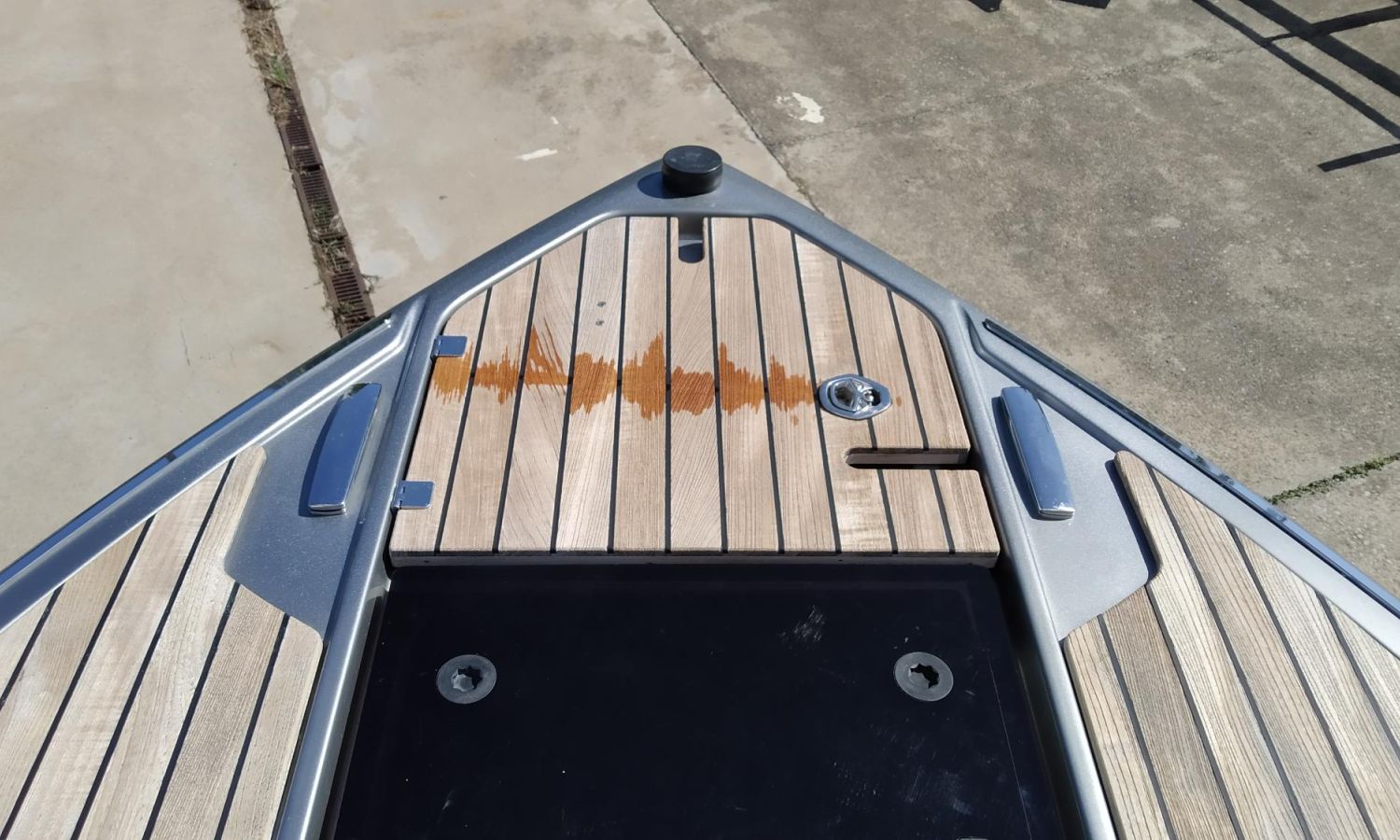 Black bimini top microperforated - Bow thruster - Removable icebox 34 l - Radio Fusion with iPod connexion and USB socket - Cockpit table - Teak laid bathing platform - Teak laid foredeck - Teak laid cockpit - Cockpit cover - Trip computer + power trim assitance - Electric anchor winch with chain and Ultramarine anchor - VHF - Ski hook - Antifouling.Boat description