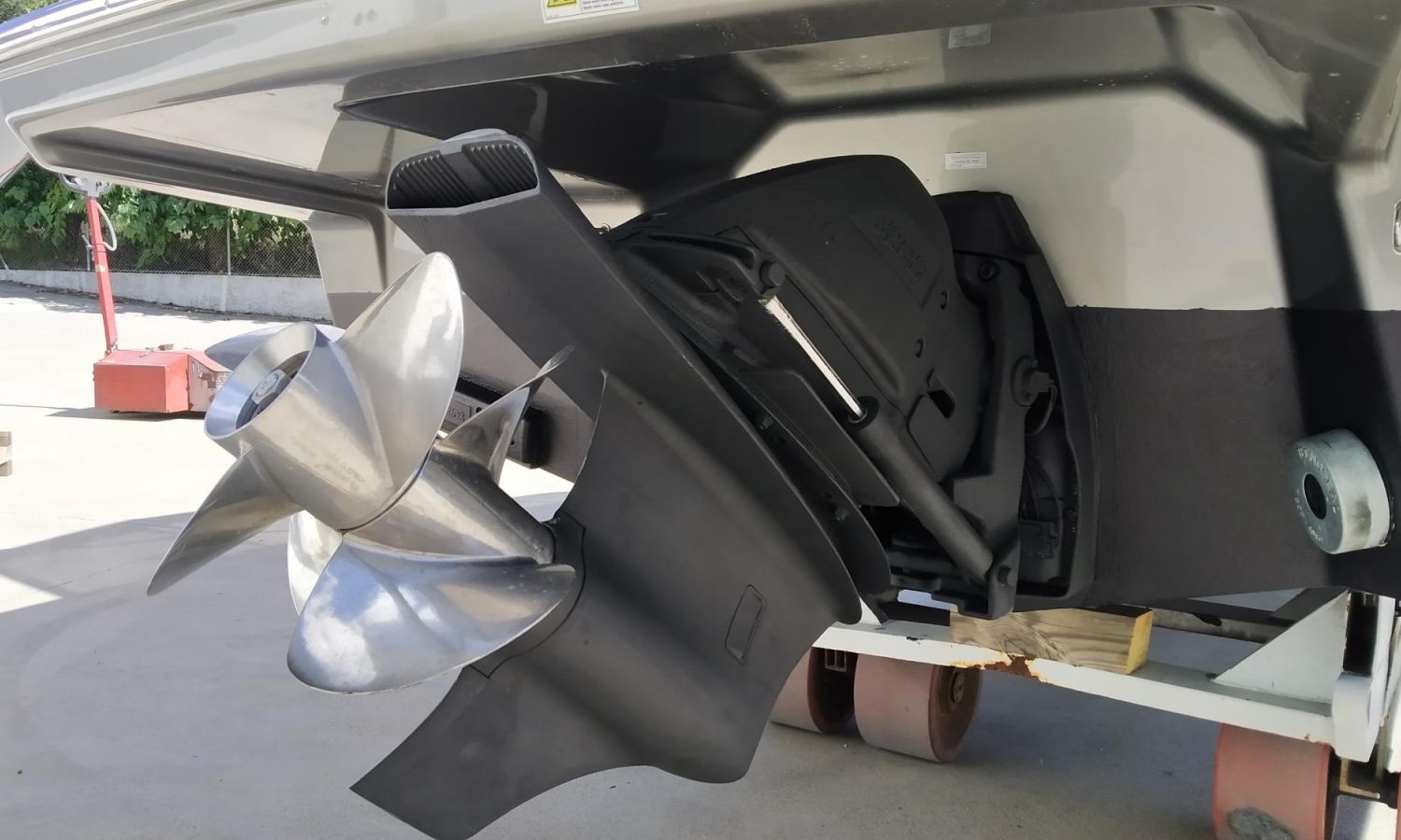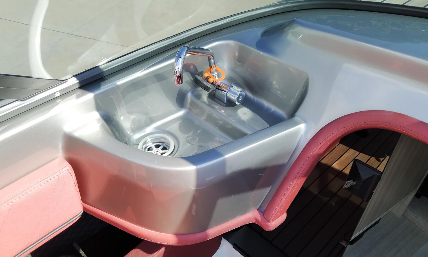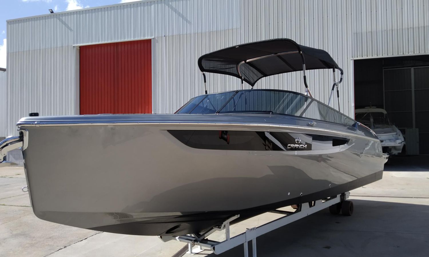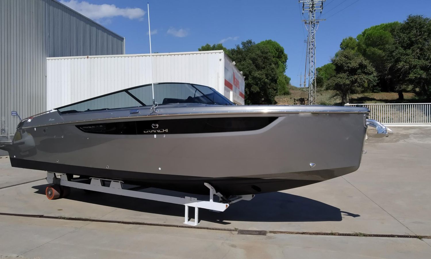 Black bimini top microperforated - Bow thruster - Removable icebox 34 l - Radio Fusion with iPod connexion and USB socket - Cockpit table - Teak laid bathing platform - Teak laid foredeck - Teak laid cockpit - Cockpit cover - Trip computer + power trim assitance - Electric anchor winch with chain and Ultramarine anchor - VHF - Ski hook - Antifouling.Boat description