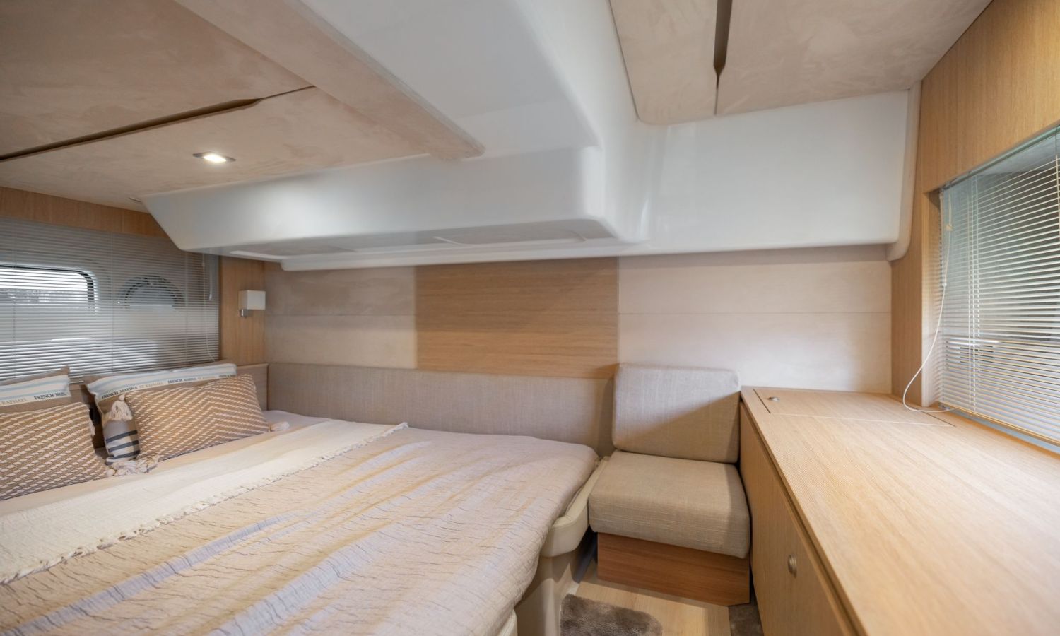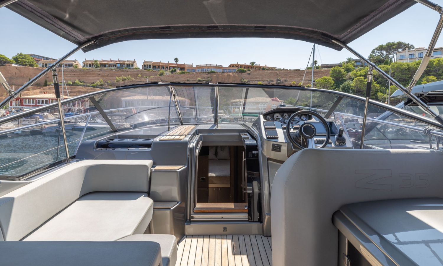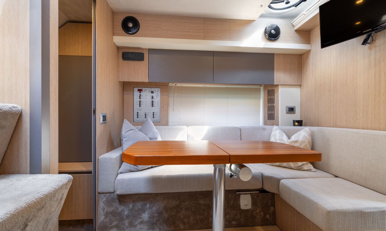 Bimini top - Walkway - Hot water shower - Two refrigerators - Teak picnic - Table - Battery charger 220 v. - Tv - Marine toilet - Shower with screen - Teak deck system - Two cabins - Sun deck at bow and stern - Joystick - Gps/Plooter/Deep finder - Autopilot - Rudder direction indicator - Electric windlass - Antifouling.Boat description
