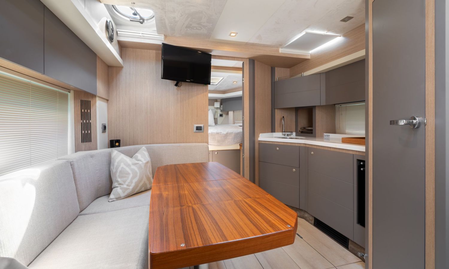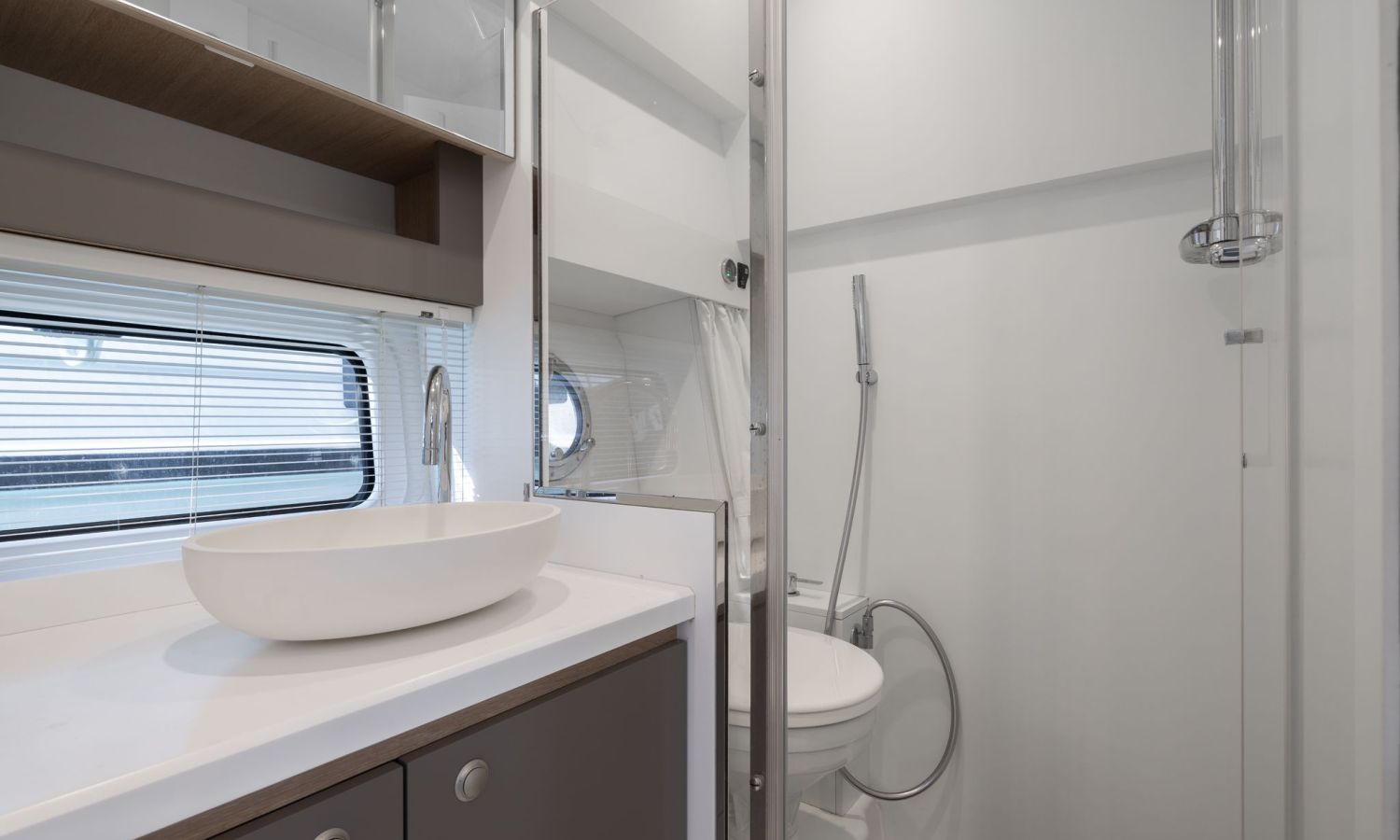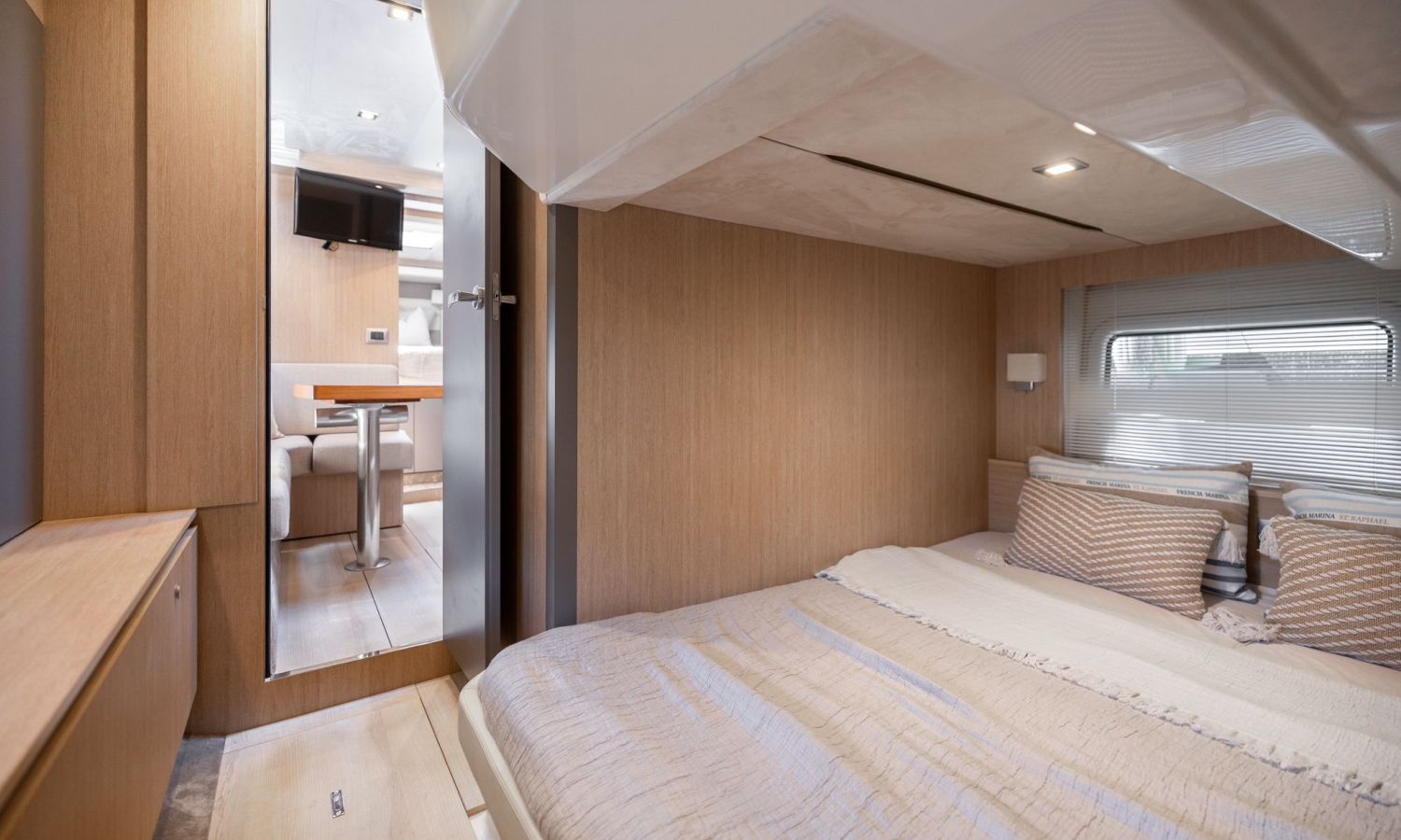 Bimini top - Walkway - Hot water shower - Two refrigerators - Teak picnic - Table - Battery charger 220 v. - Tv - Marine toilet - Shower with screen - Teak deck system - Two cabins - Sun deck at bow and stern - Joystick - Gps/Plooter/Deep finder - Autopilot - Rudder direction indicator - Electric windlass - Antifouling.Boat description