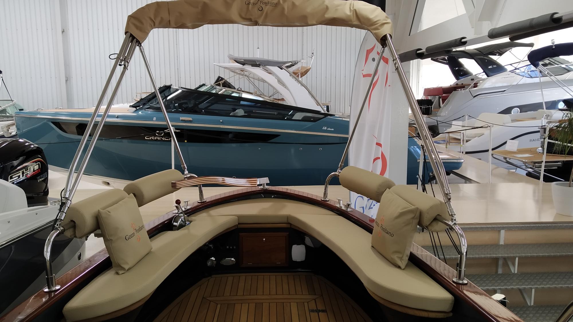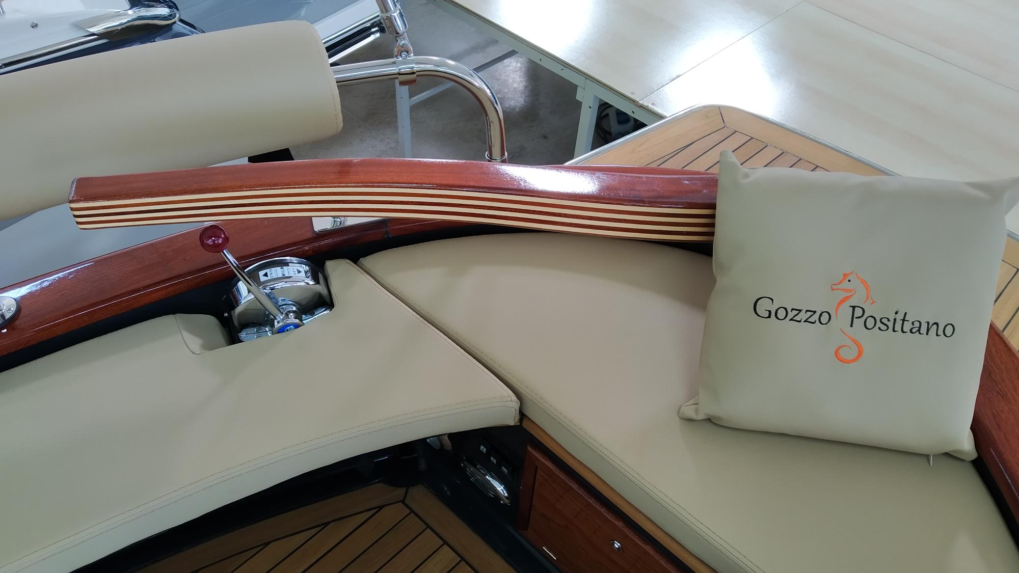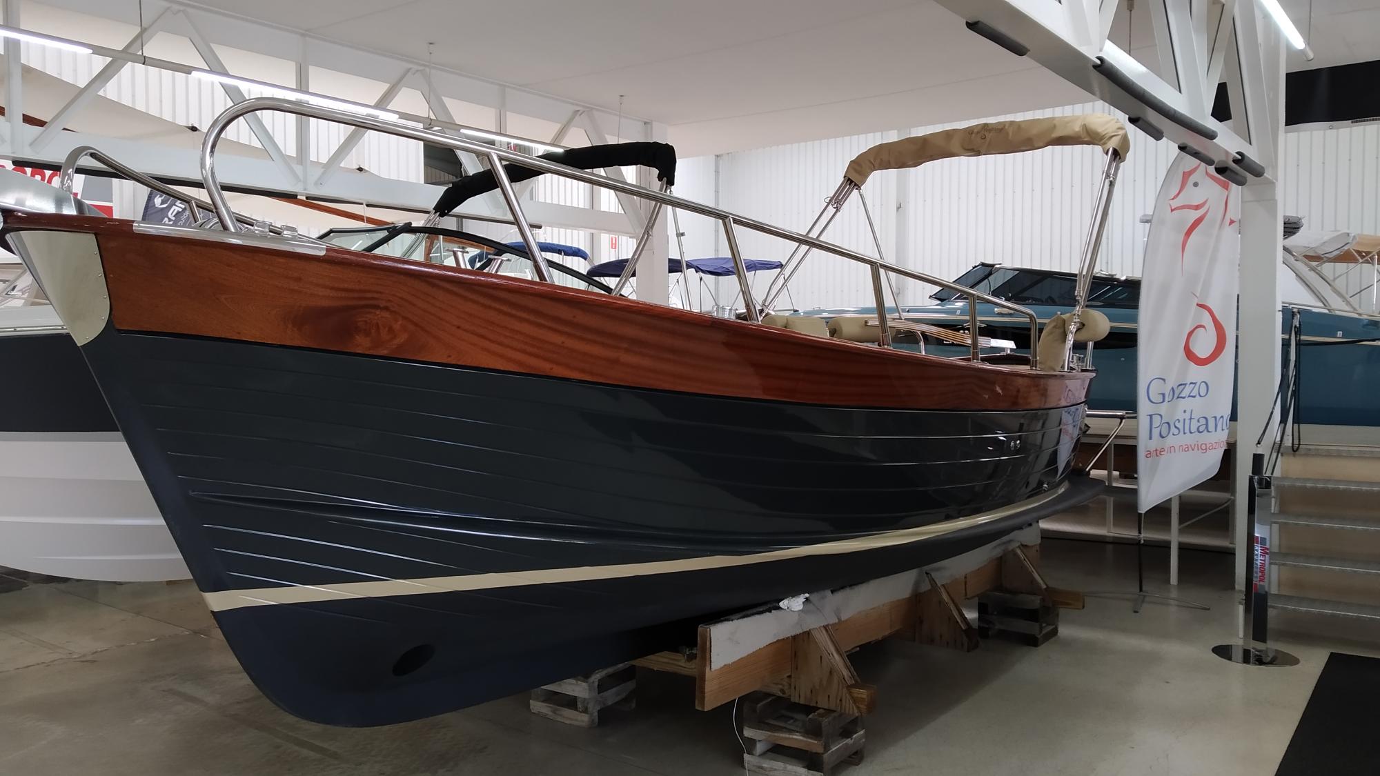 Boat being produced. Delivery in February 2026. Stock photos, colours and equipment may not correspond exactly to the offered unit. Model Positano 23 of the Neapolitan shipyard Gozzo Positano of 7 meters in total length. Boat with comfortable bathing platform, spacious layout.AST-Nº 02