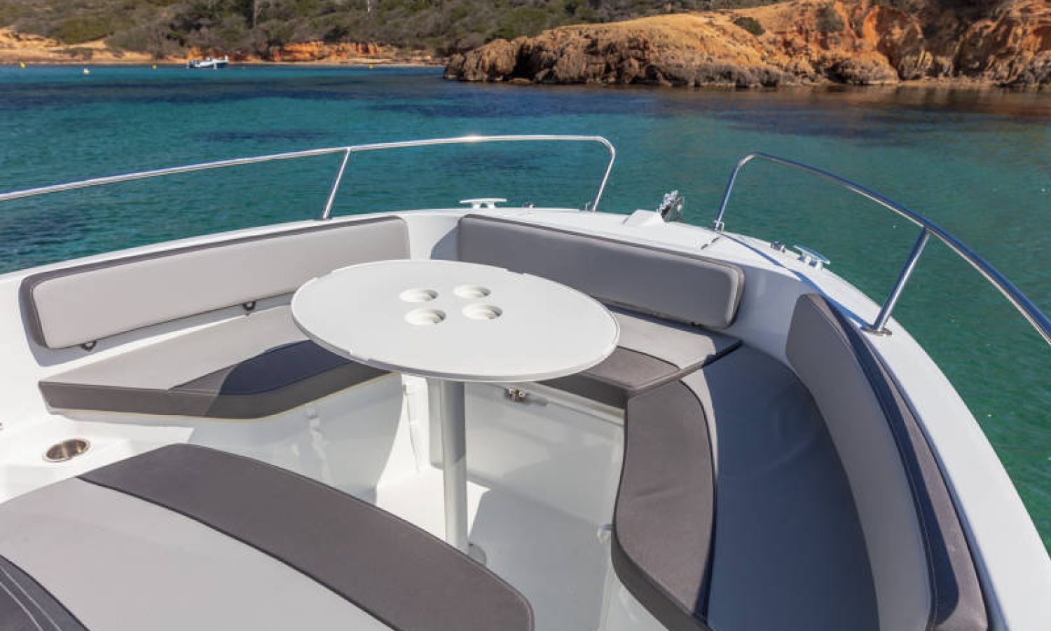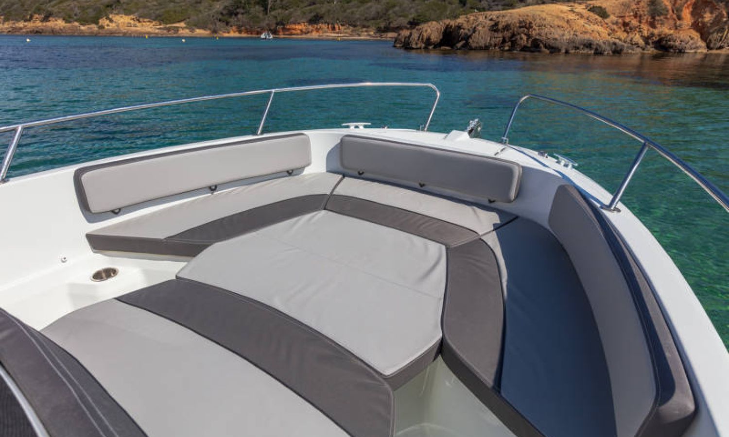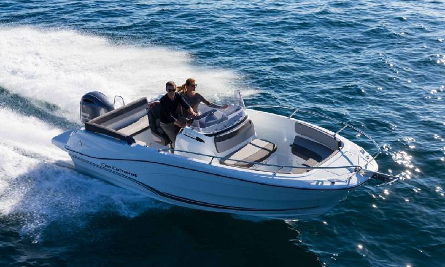 A sporty, family boat by nature, the Cap Camarat 6.5 Center Console Serie3 features a particularly comfortable ergonomic cockpit design. The living space is expanded, with an L-shaped bench seat, contributing to the relaxing and inviting atmosphere on board.