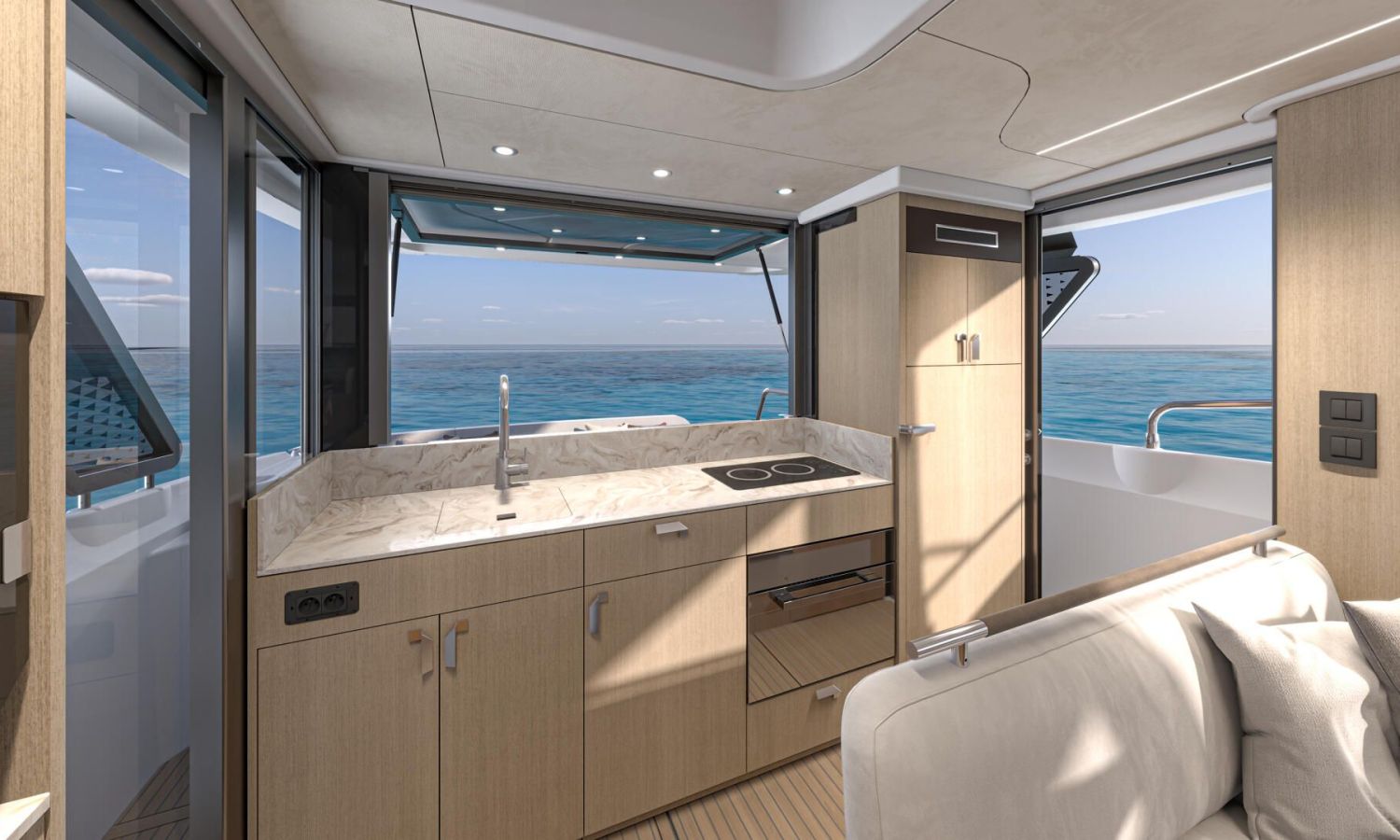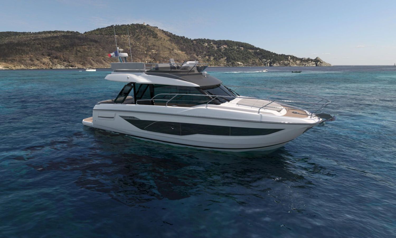 Shaped by bold decisions, this 43-foot model welcomes you aboard with the elegance and refinement distinctive of the new generation of the F-Line.