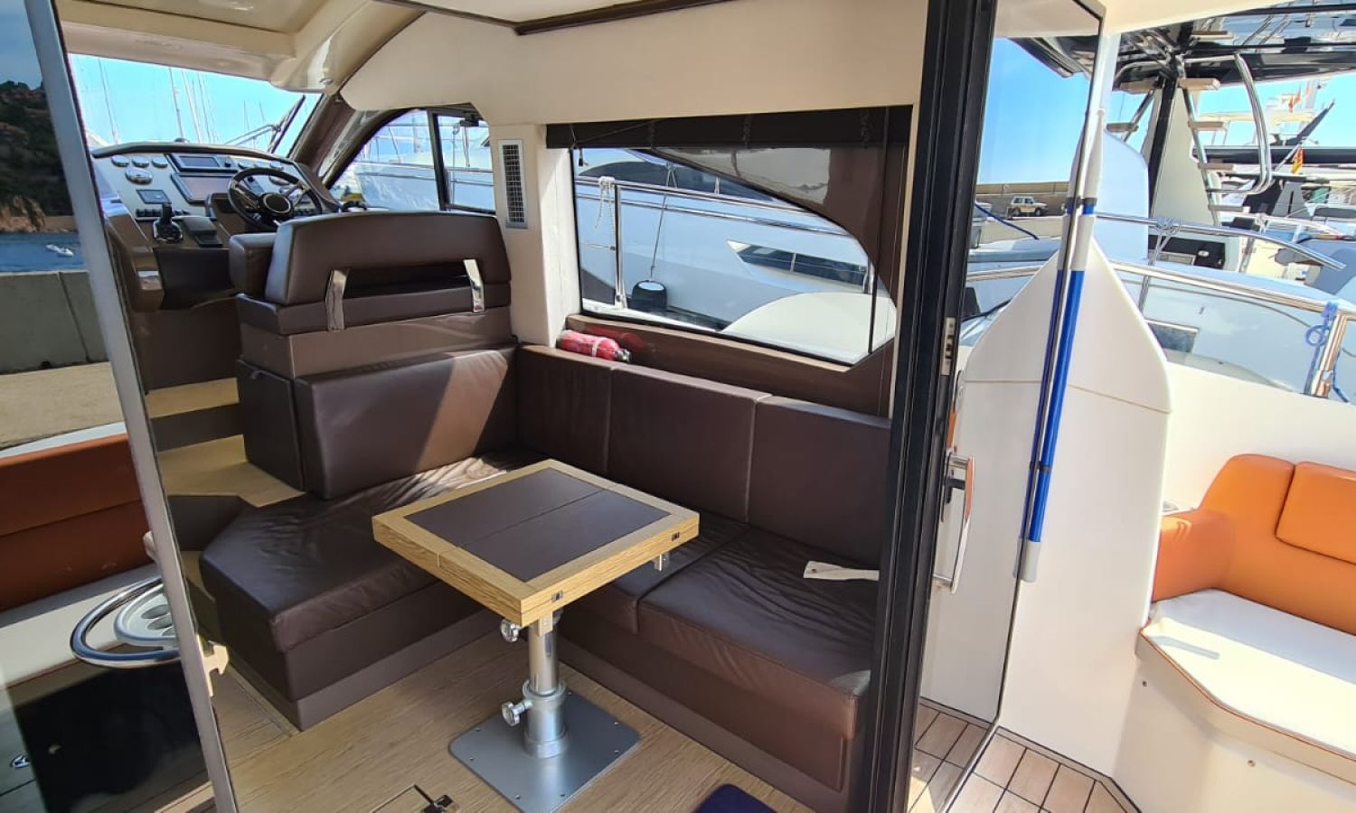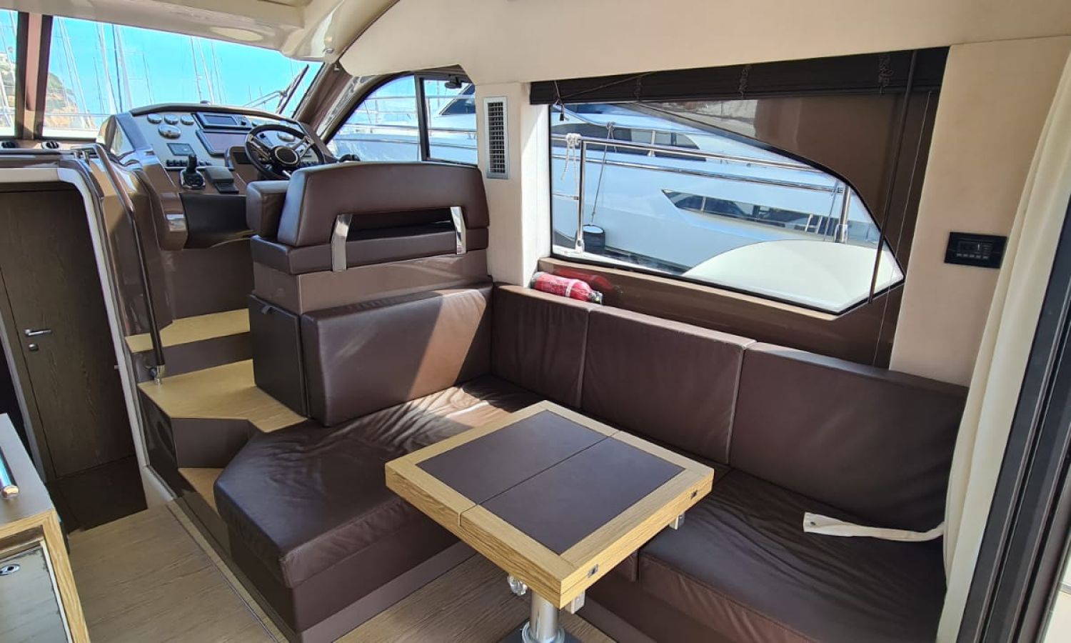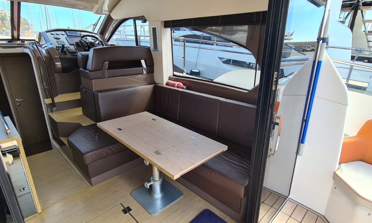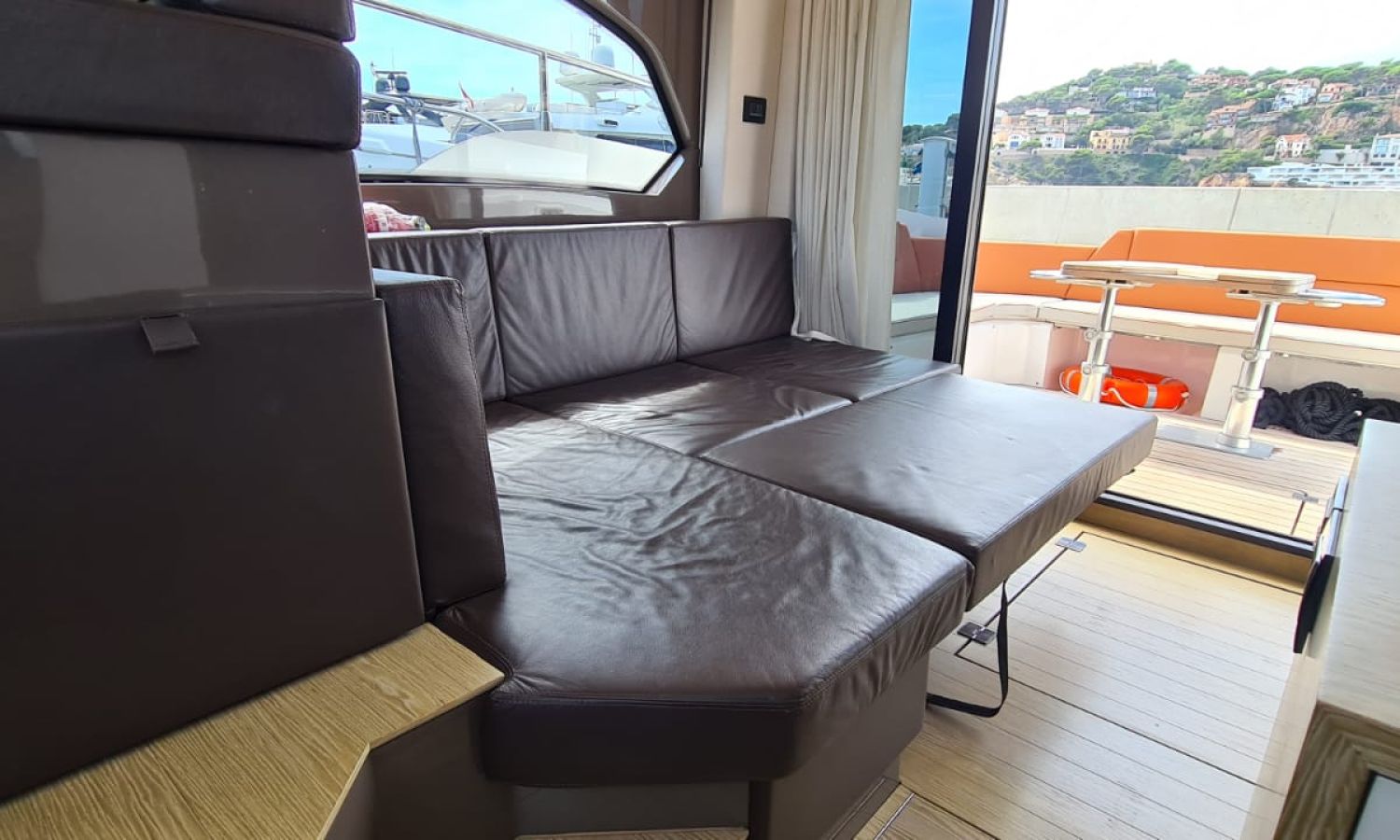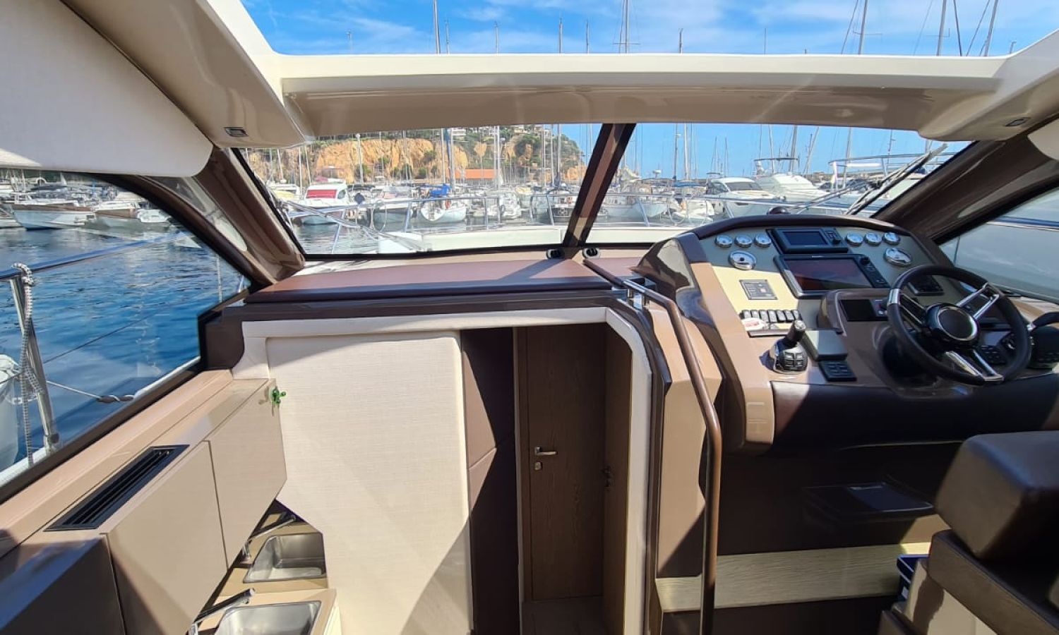 Generator - Air conditioning - Auto pilot - GPS/Plotter/Depth finder Raymarine 12 " - Electric windlass - Chain meter counter - Sound system inside/outside - Joystick IPS - Bow thruster - Trim tabs Benetti - Hydraulic swim platform - Electric bimini - Bow sun cushions and aft sundeck - Grill on swim platform - Electric Hard-top - Fresh water intake - Complete kitchen inside with vitro - Microwave - Refrigerator - Freezer - Extractor hood in kitchen - Electric WCs with waste water tank - Refrigerator in living room - DPS positioning system.Boat description