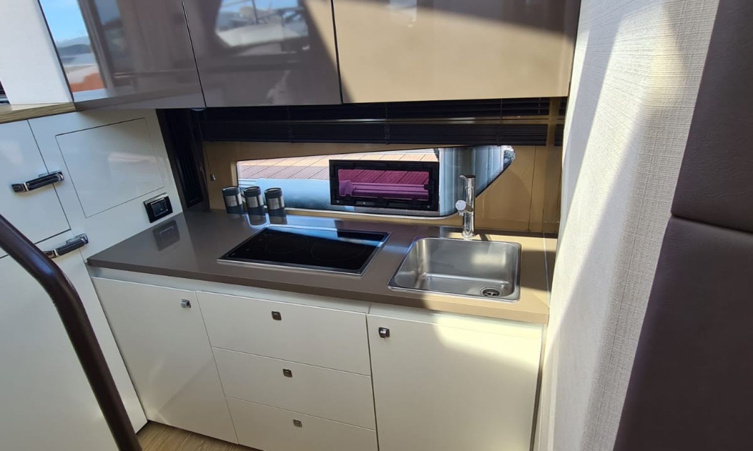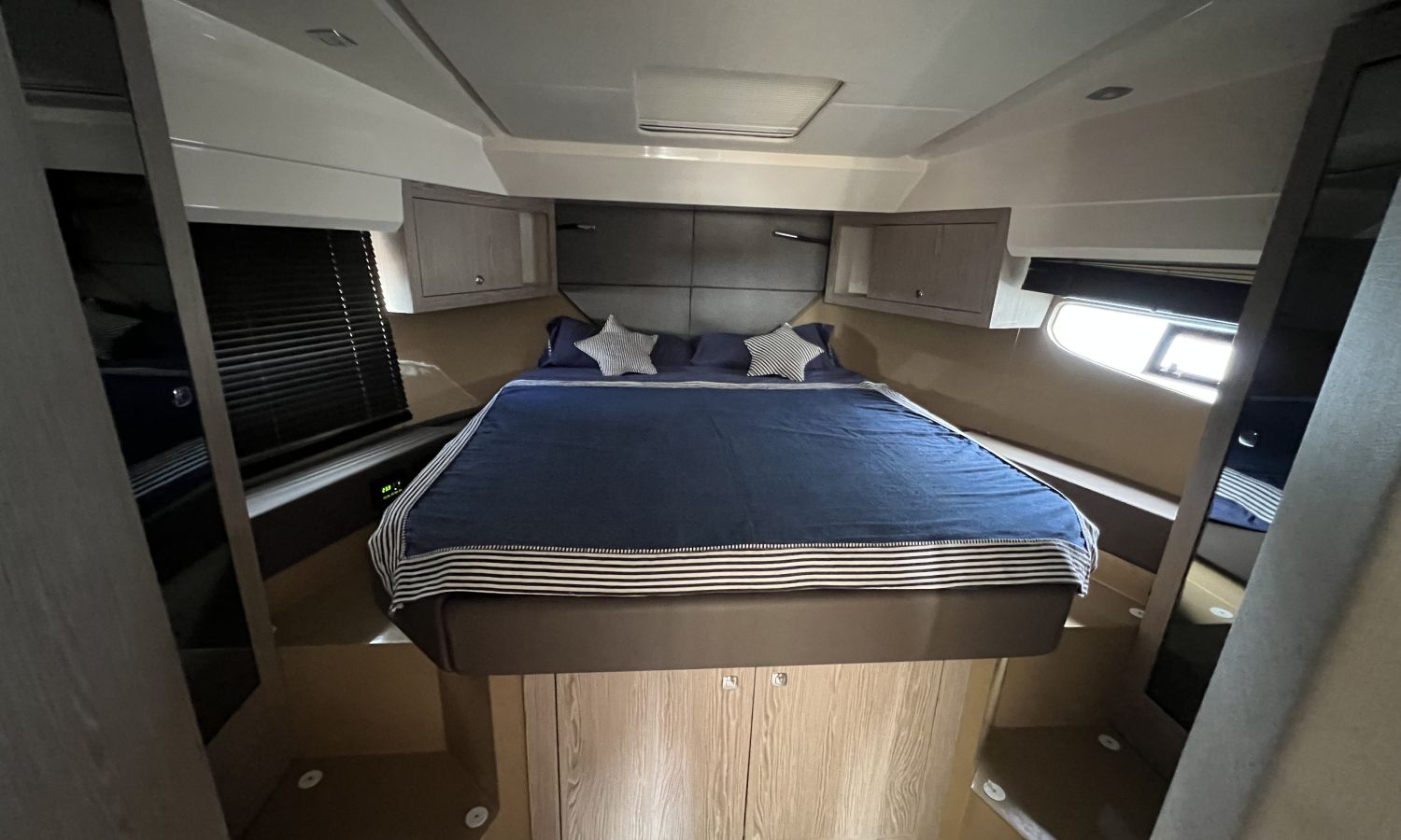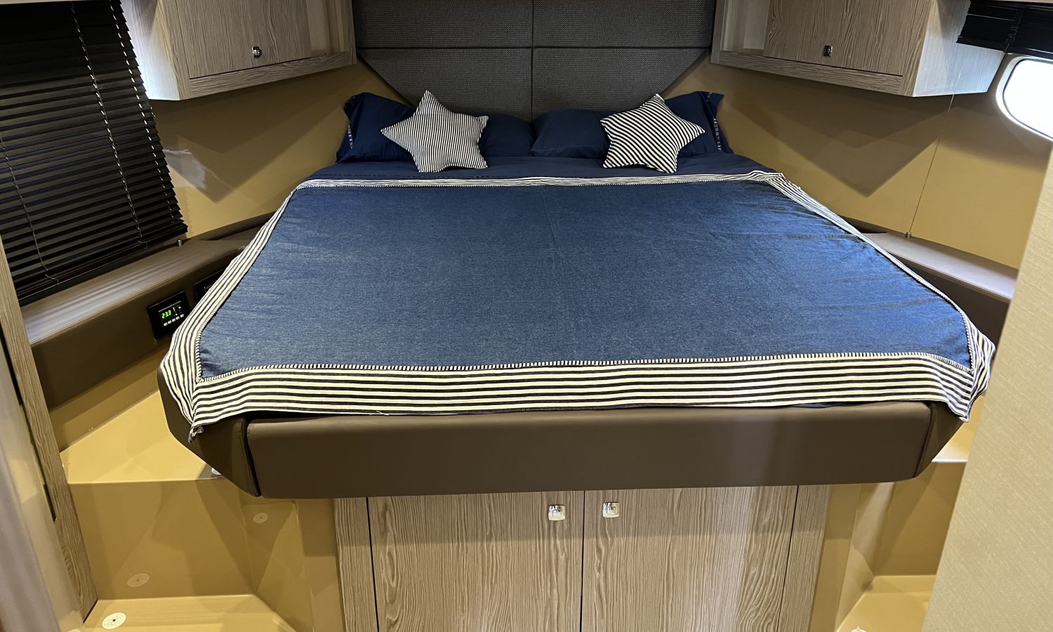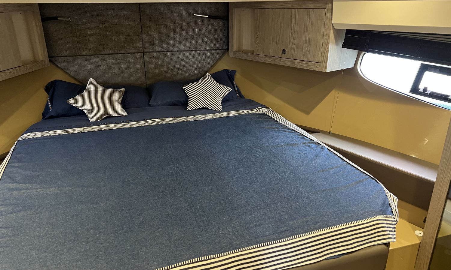 Generator - Air conditioning - Auto pilot - GPS/Plotter/Depth finder Raymarine 12 " - Electric windlass - Chain meter counter - Sound system inside/outside - Joystick IPS - Bow thruster - Trim tabs Benetti - Hydraulic swim platform - Electric bimini - Bow sun cushions and aft sundeck - Grill on swim platform - Electric Hard-top - Fresh water intake - Complete kitchen inside with vitro - Microwave - Refrigerator - Freezer - Extractor hood in kitchen - Electric WCs with waste water tank - Refrigerator in living room - DPS positioning system.Boat description
