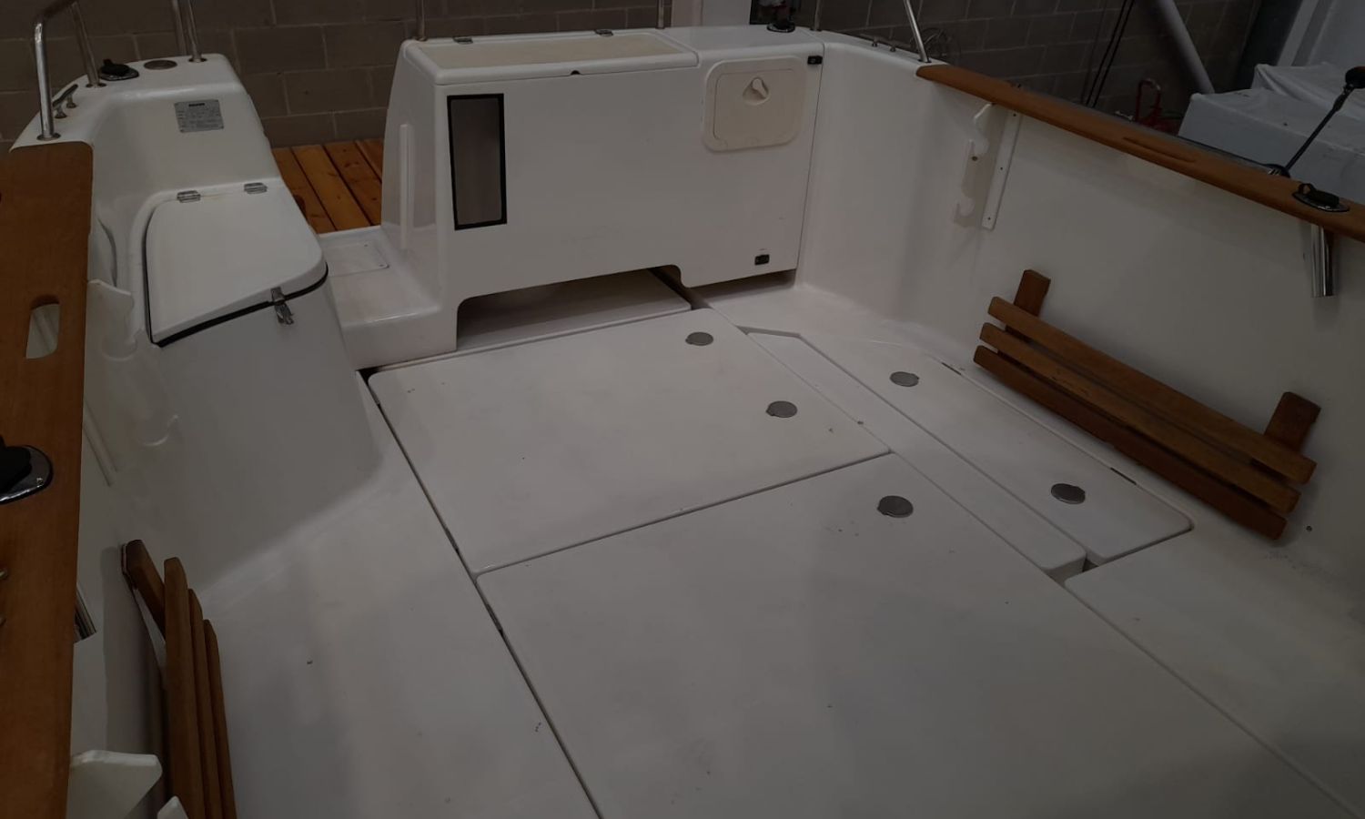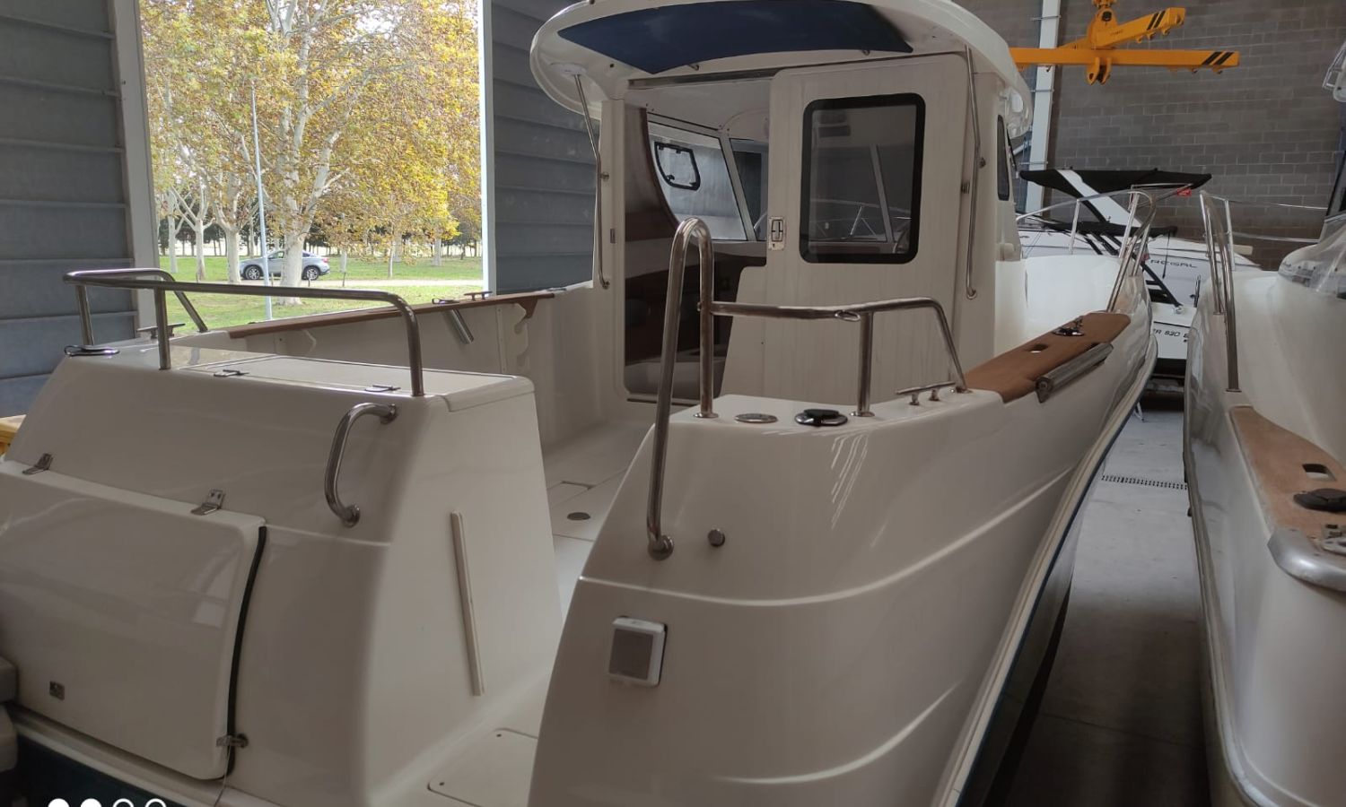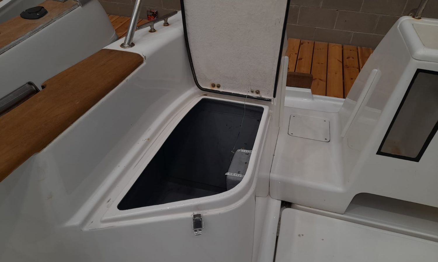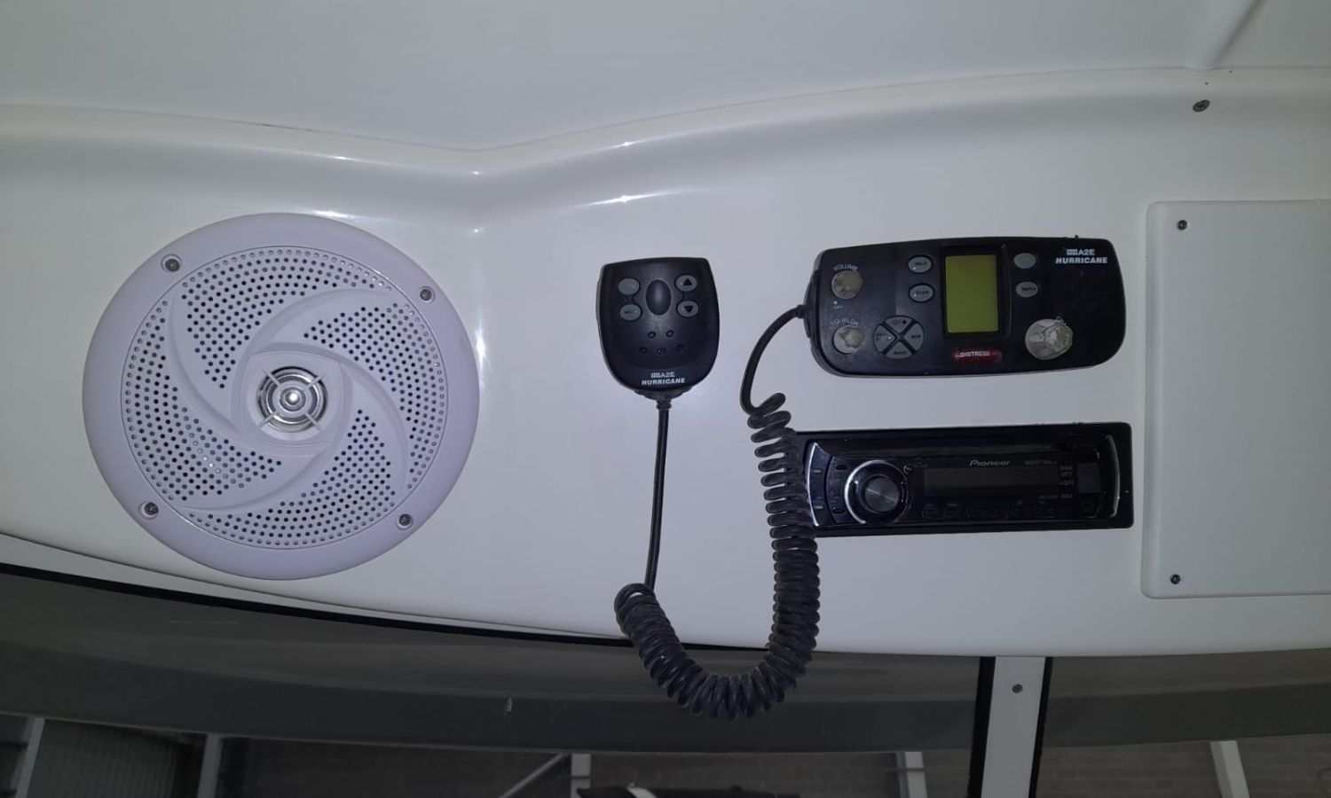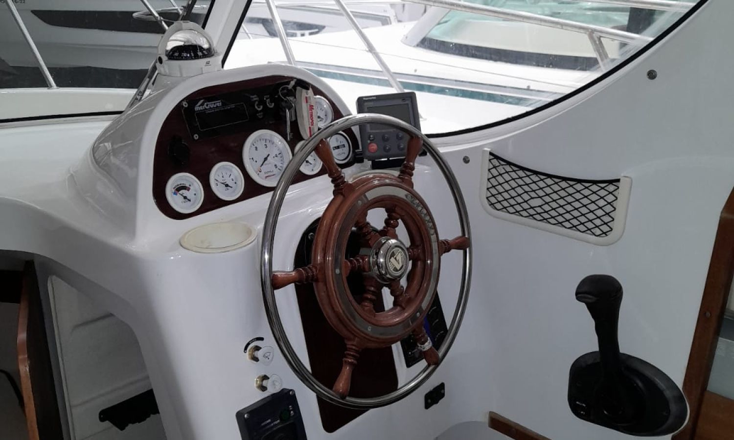Molinete de ancla eléctrico - Ducha en popa - Hélice de proa - Wc marino - Gps/Plotter - Sonda - Vhf - Piloto automático - Equipo de audio - Toma de puerto 220 v. - Cargador baterías - Porta cañas - Plataforma de baño.Descripción embarcación