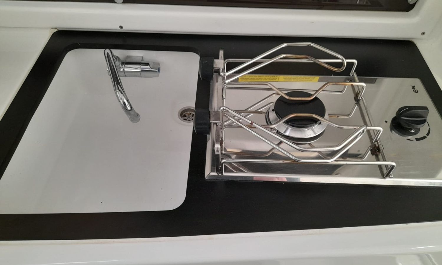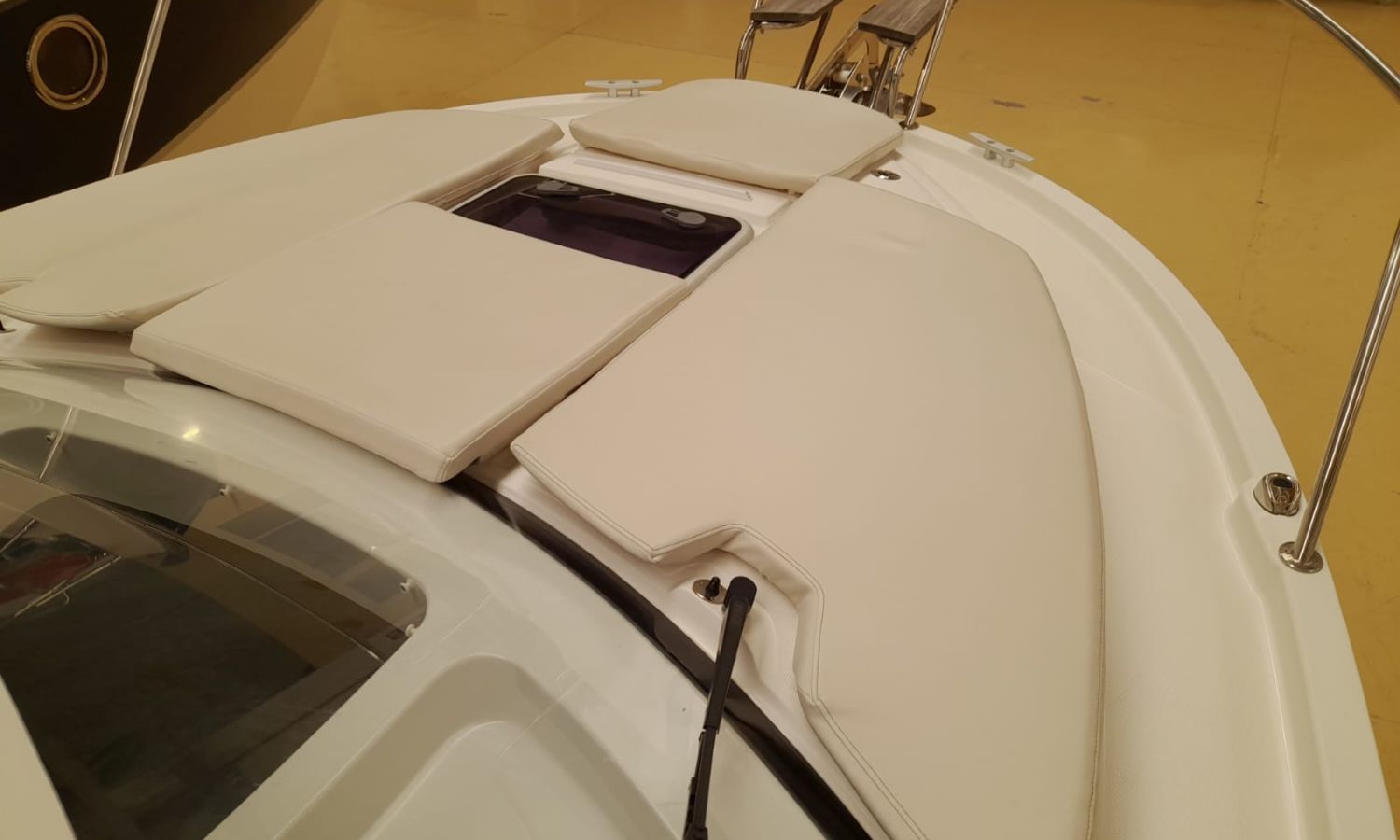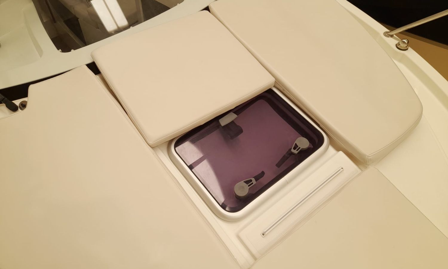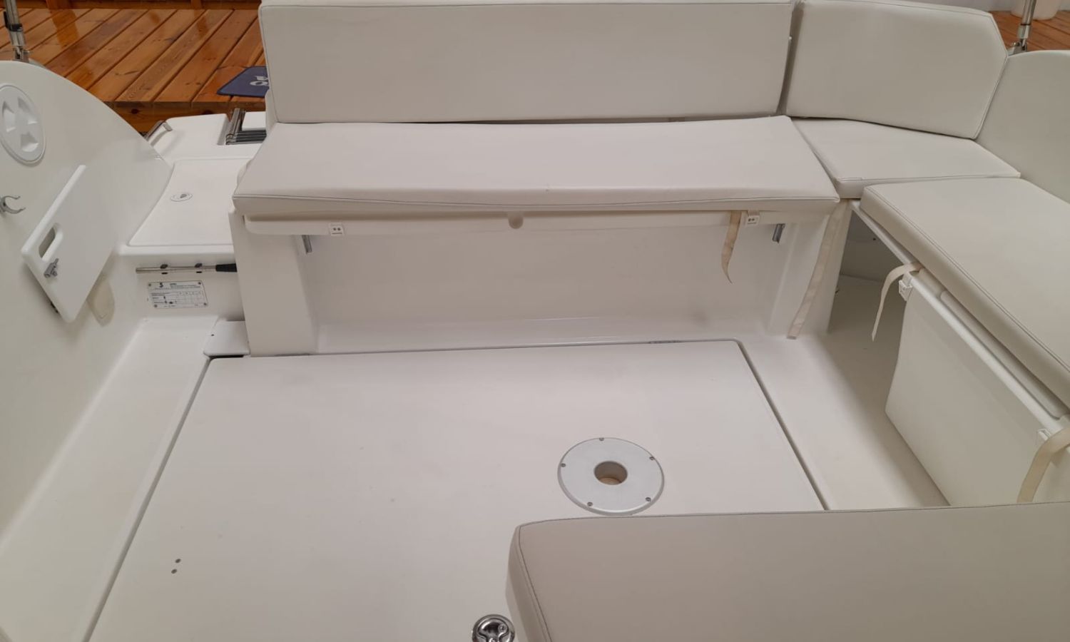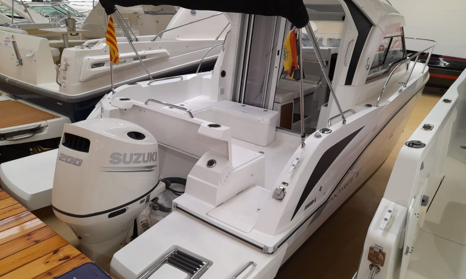 Toldo parasol - Ducha en popa - Escalera de baño - Solárium de proa - Mesa en la bañera - Mueble-bar con fregadero - Nevera 12 V - Molinete eléctrico con ancla y cadena - Hélice de proa - Gps/Plotter/Sonda - VHF - Compás - Equipo de audio - Toma de puerto 220 V - Cargador de baterías - Flaps - WC eléctrico con depósito de aguas negras - Cabina - Antifouling.