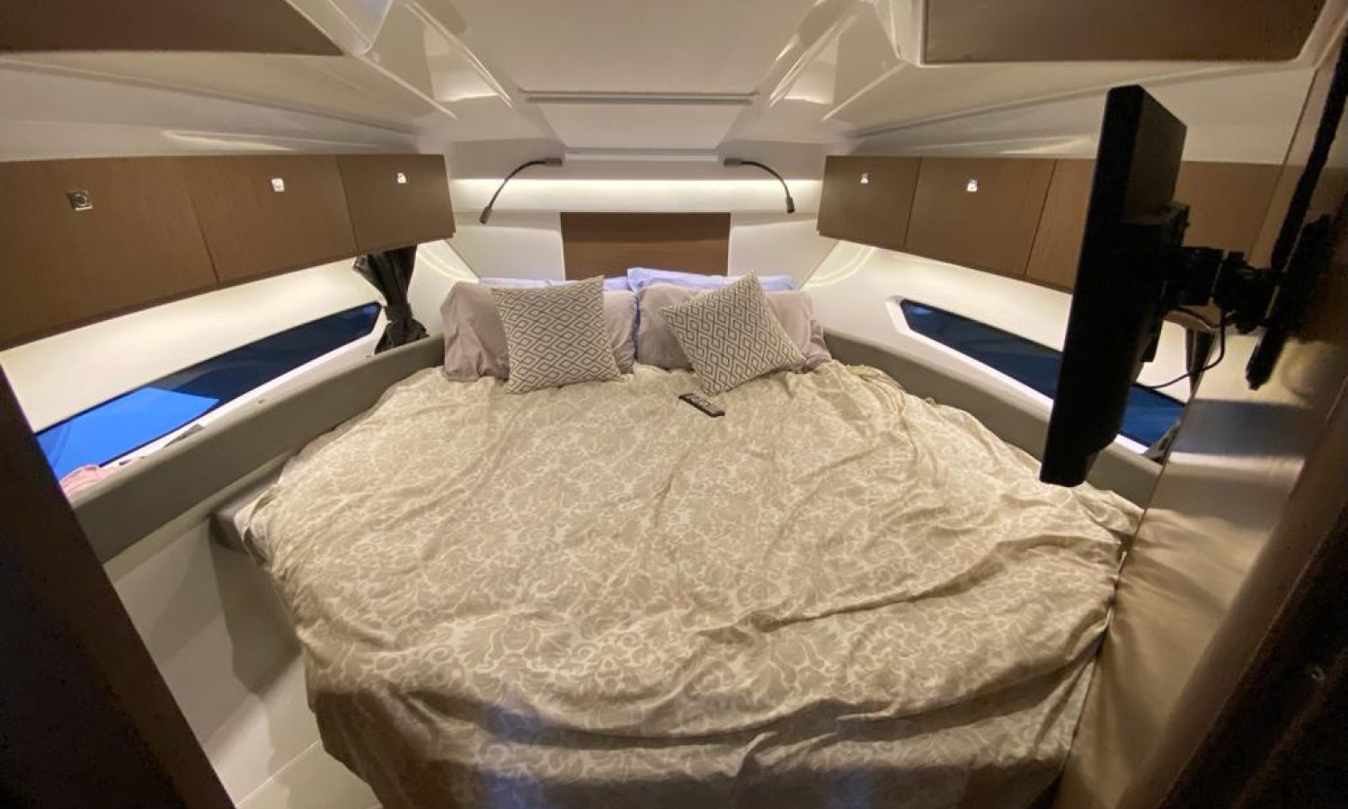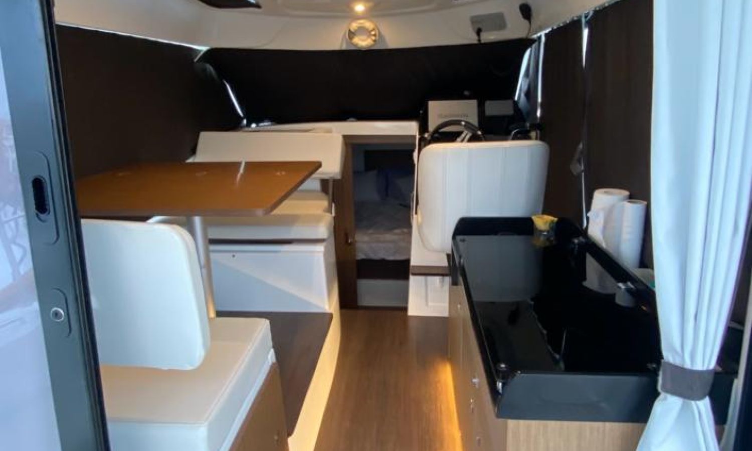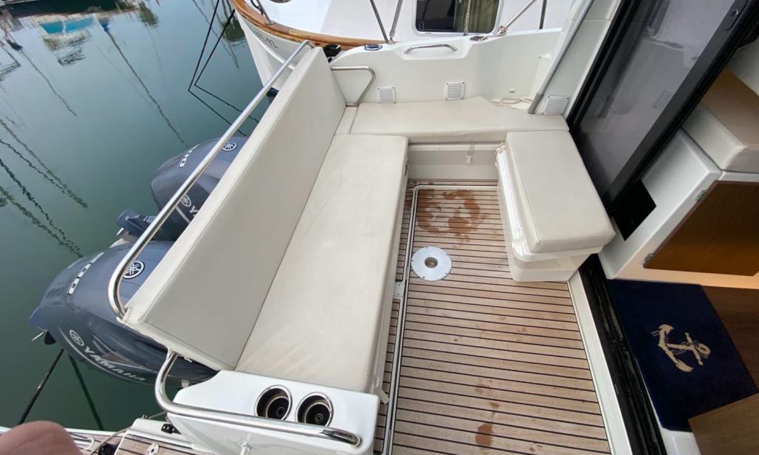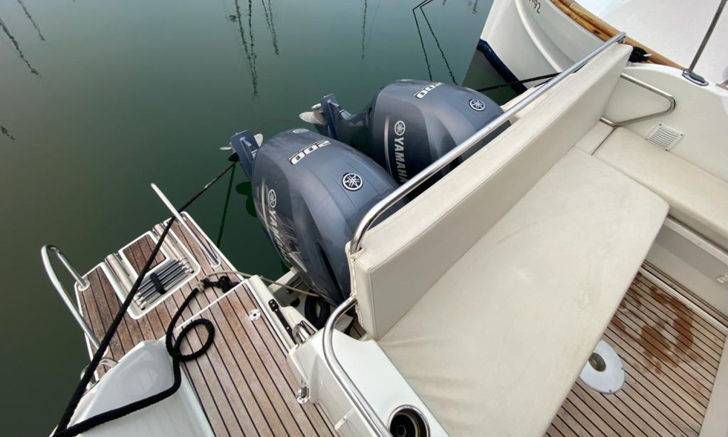 Toldo parasol - Plataforma de baño con escalera - Ducha en popa - Mesa en la bañera - Teka - Toma de puerto 220V. - Cargador de baterias - Solárium de proa - Mandos electrónicos - Gps/Plotter/Sonda - Compas - VHF - Radar - Equipo audio - Tv Salón - 2 cabinas - Nevera - Molinete eléctrico - Wc marino don depósito de aguas negras - AntifoulingDescripción embarcación