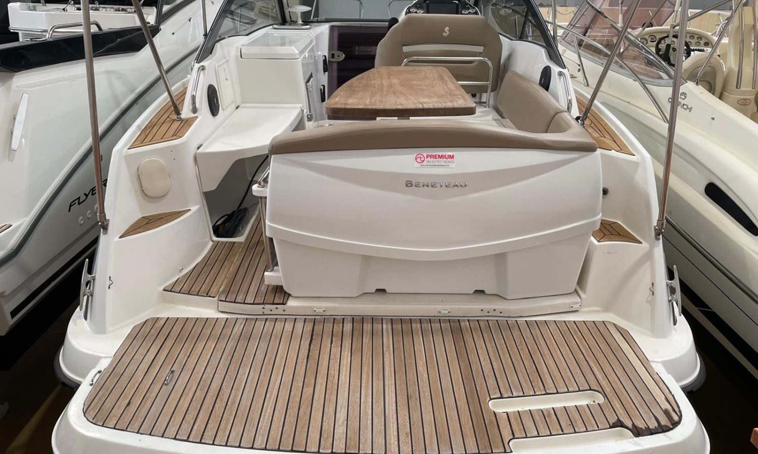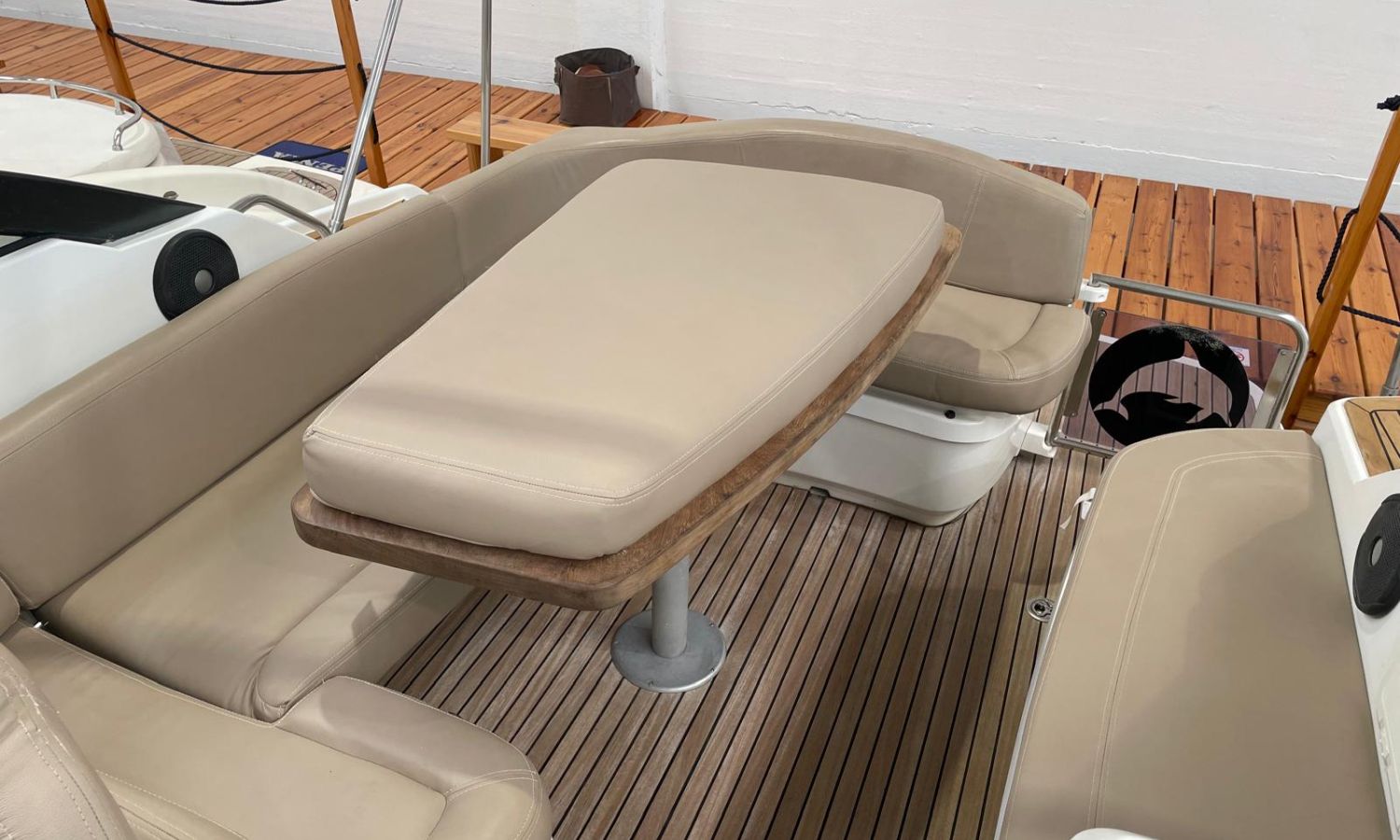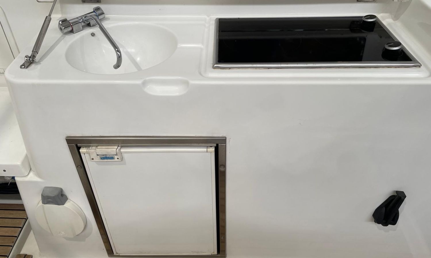 Toldo bimini - Plataforma de baño con escalera - Ducha en popa - Mesa en la bañera - Nevera 12V. - Placa eléctrica - Microondas - Tv satélite - Teka - Equipo de audio - Gps/Plotter/Sonda - Compas - Molinete de ancla eléctrico - Colchonetas solarium proa - Hélice de proa - Wc eléctrico - Antifouling.Descripción embarcación