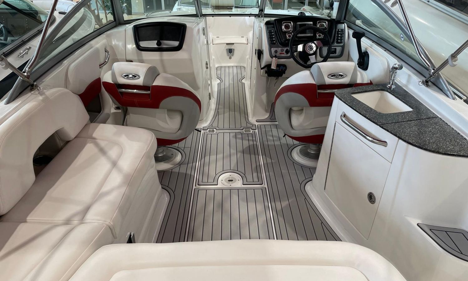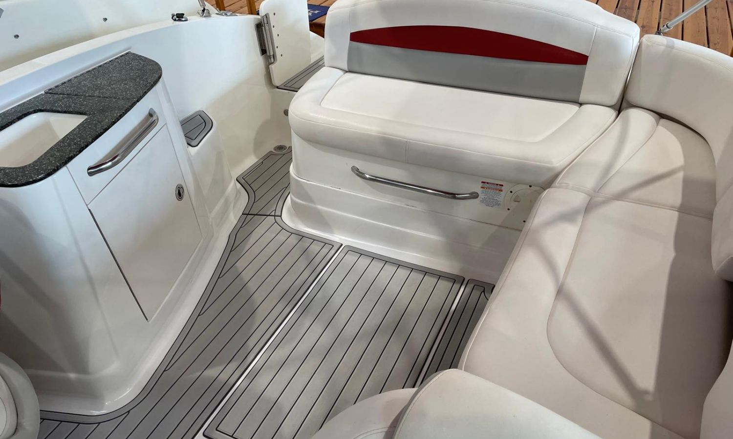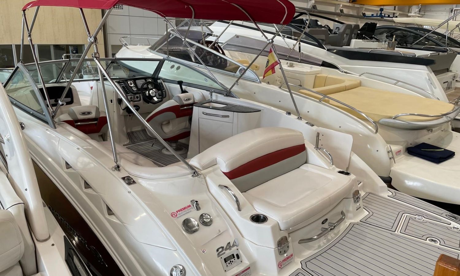 Toldo bimini - Plataforma de baño con escalera - Ducha en popa - Seadeck - Mesa en la bañera - Fregadero - Solarium de proa - Gps/Plotter/Sonda - VHF - Compas - Equipo de audio - Wc químico - Ancla y cadena - Antifouling.