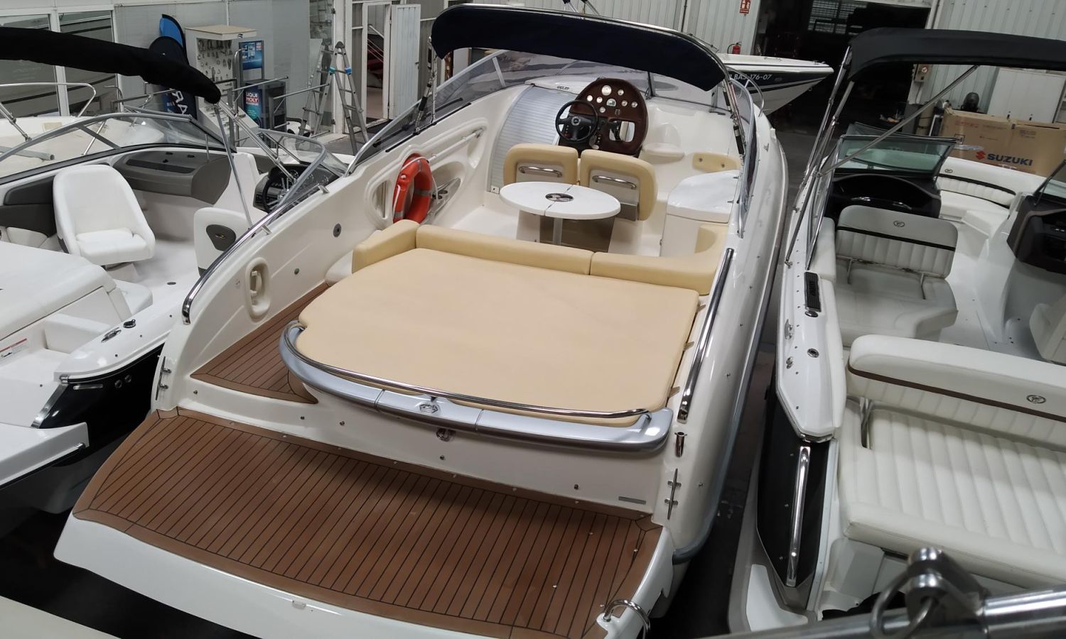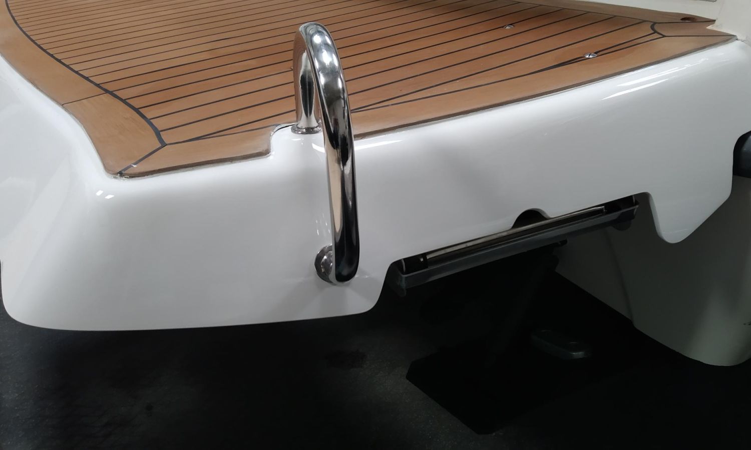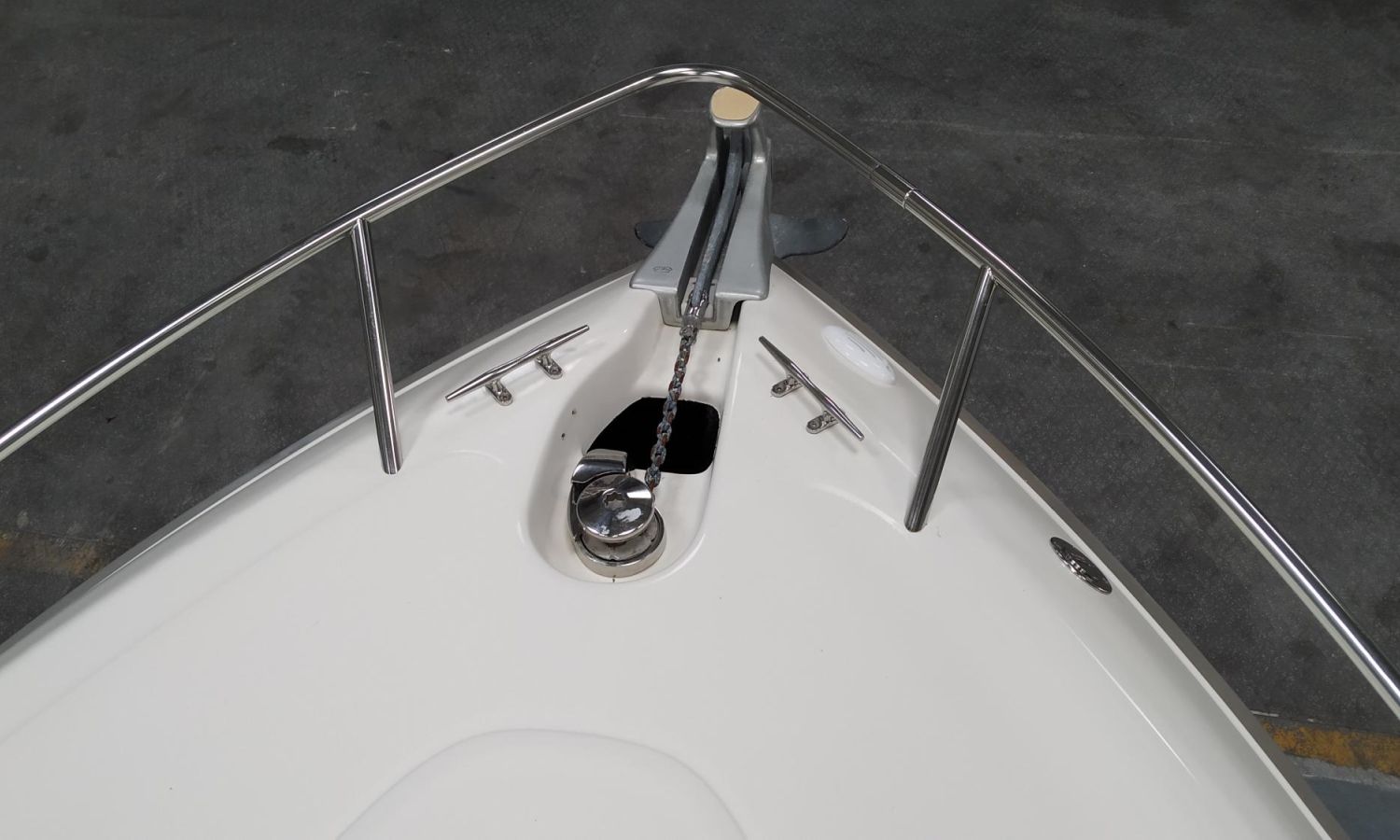Lona de fondeo - Toldo parasol - Molinete eléctrico con ancla y cadena - Mesa bañera - Mueble-bar en bañera con fregadero y nevera - Depósito de agua - Depósito de combustible - Ducha a popa - Plataforma de baño con escalera - WC marino eléctrico - Depósito de aguas negras - Equipo de música con altavoces - Flexiteek en plataforma de baño - Bañera en teka - Solárium de popa con apertura hidráulica para acceso motor - Antifouling.Descripción embarcación