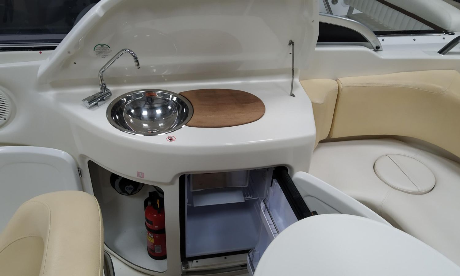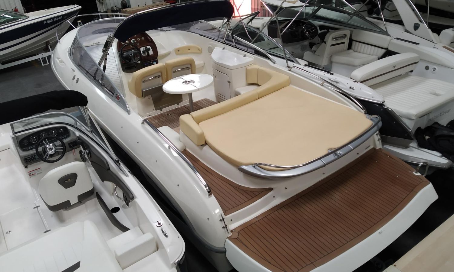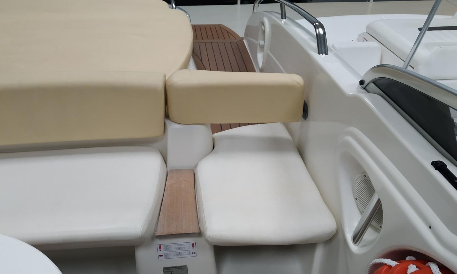Lona de fondeo - Toldo parasol - Molinete eléctrico con ancla y cadena - Mesa bañera - Mueble-bar en bañera con fregadero y nevera - Depósito de agua - Depósito de combustible - Ducha a popa - Plataforma de baño con escalera - WC marino eléctrico - Depósito de aguas negras - Equipo de música con altavoces - Flexiteek en plataforma de baño - Bañera en teka - Solárium de popa con apertura hidráulica para acceso motor - Antifouling.Descripción embarcación