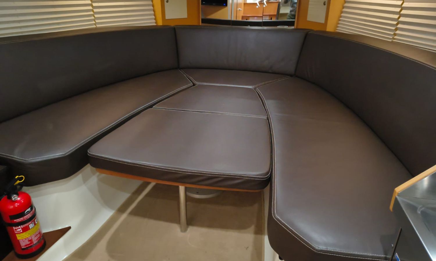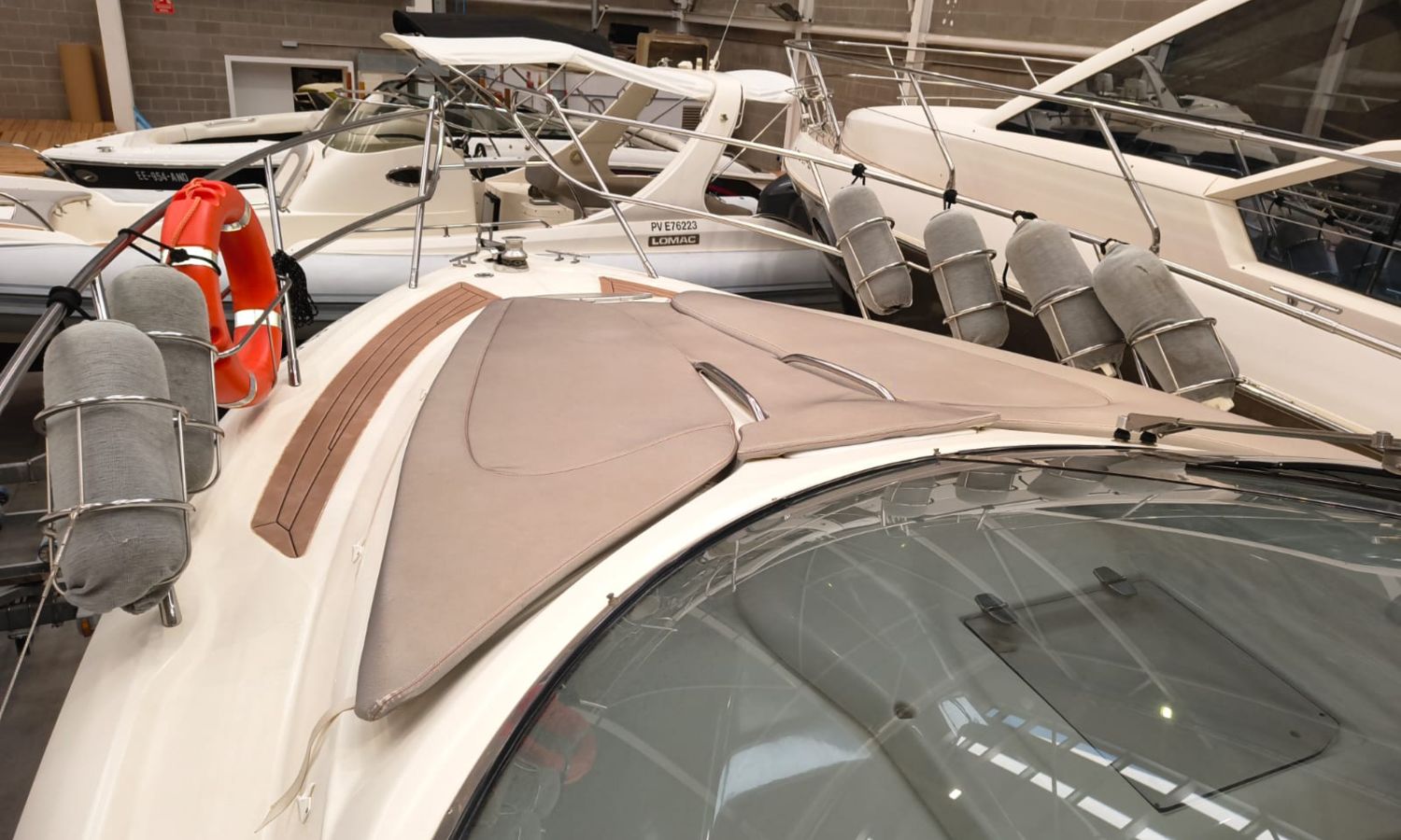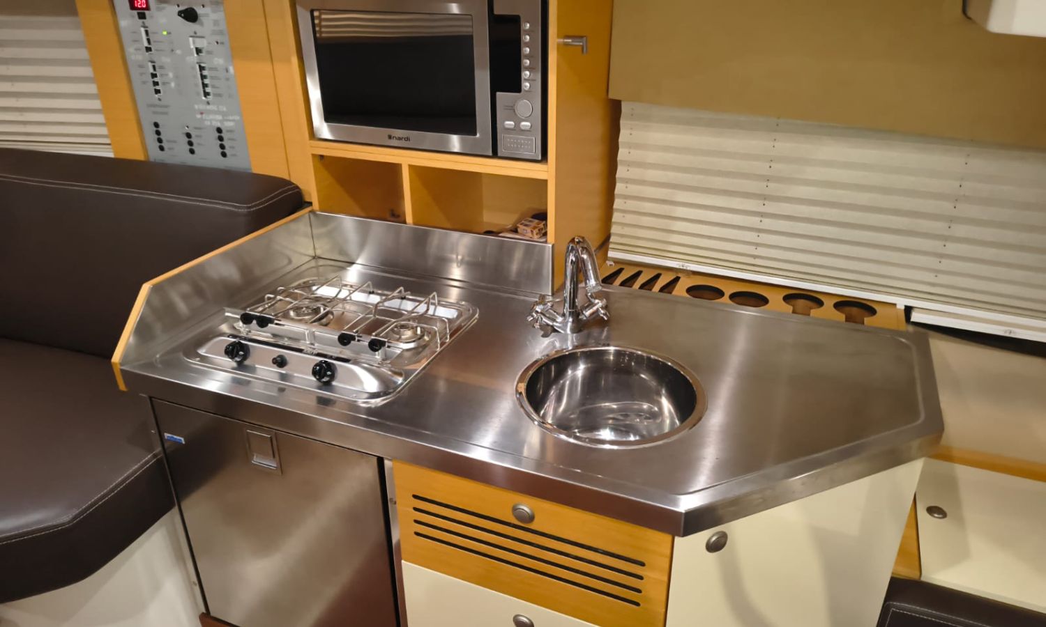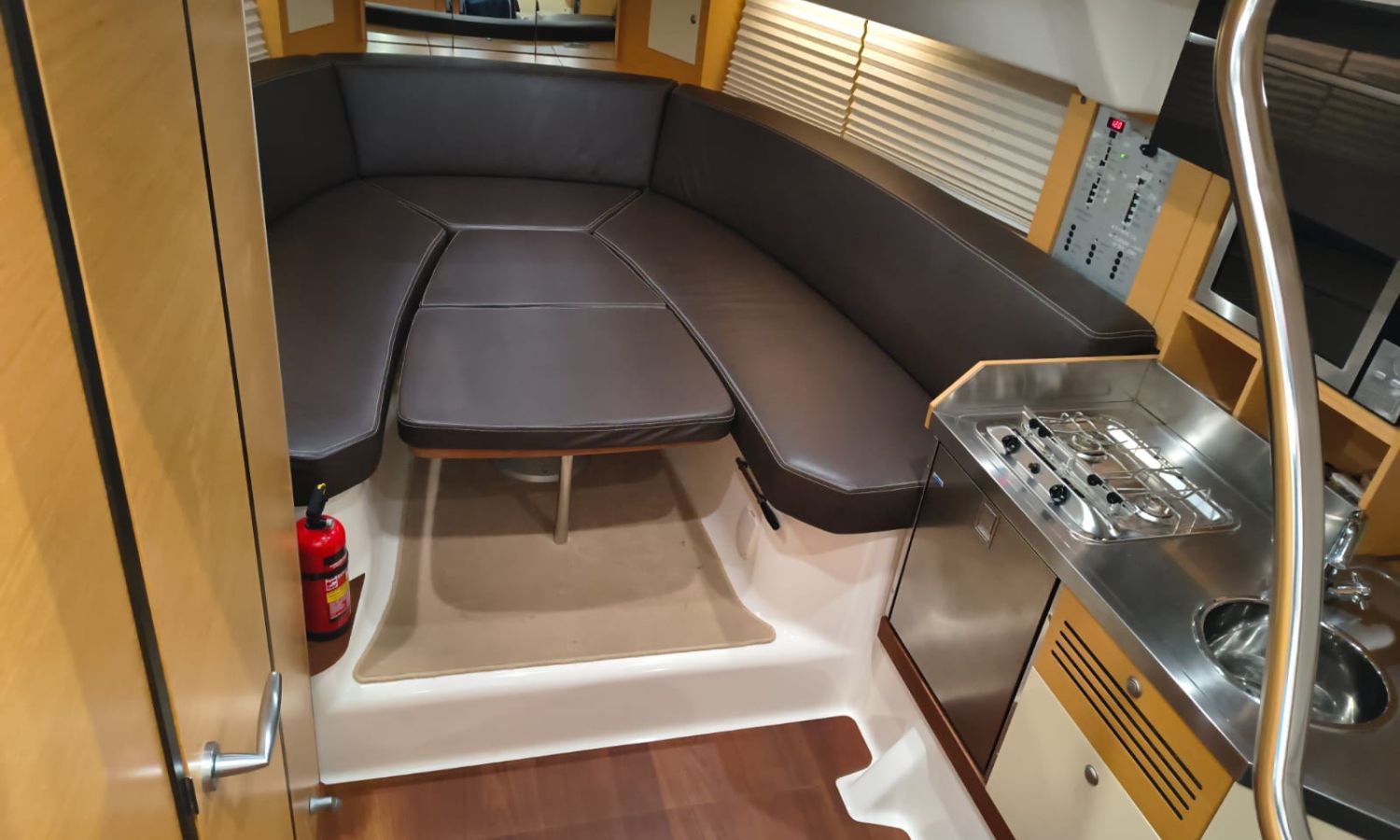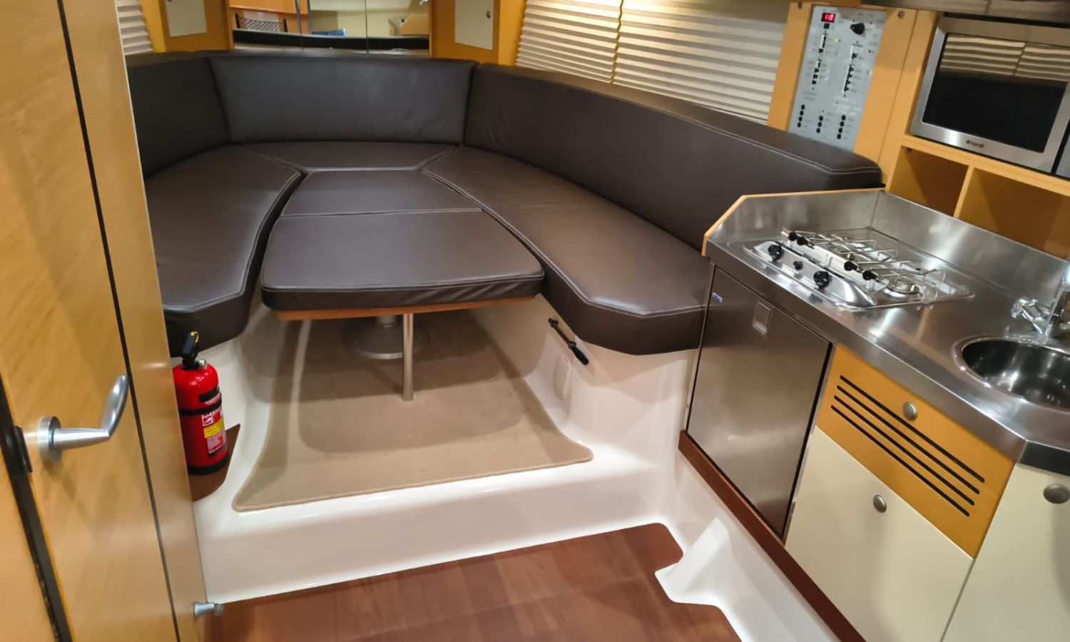 Molinete de ancla eléctrico - Flaps - Bimini - Solárium de proa - Nevera 12 V en bañera - Nevera 12 V en cabina - Ducha en popa - Toma puerto 220 V - Cargador de baterías - Mesa en cabina convertible en cama - WC eléctrico - Ducha separada del baño - Cocina de gas - Microondas - Hélice de proa - Mandos electrónicos - GPS/Plotter/Sonda - VHF - Equipo de audio - Mesa eléctrica en bañera - TV - AntifoulingDescripción embarcación