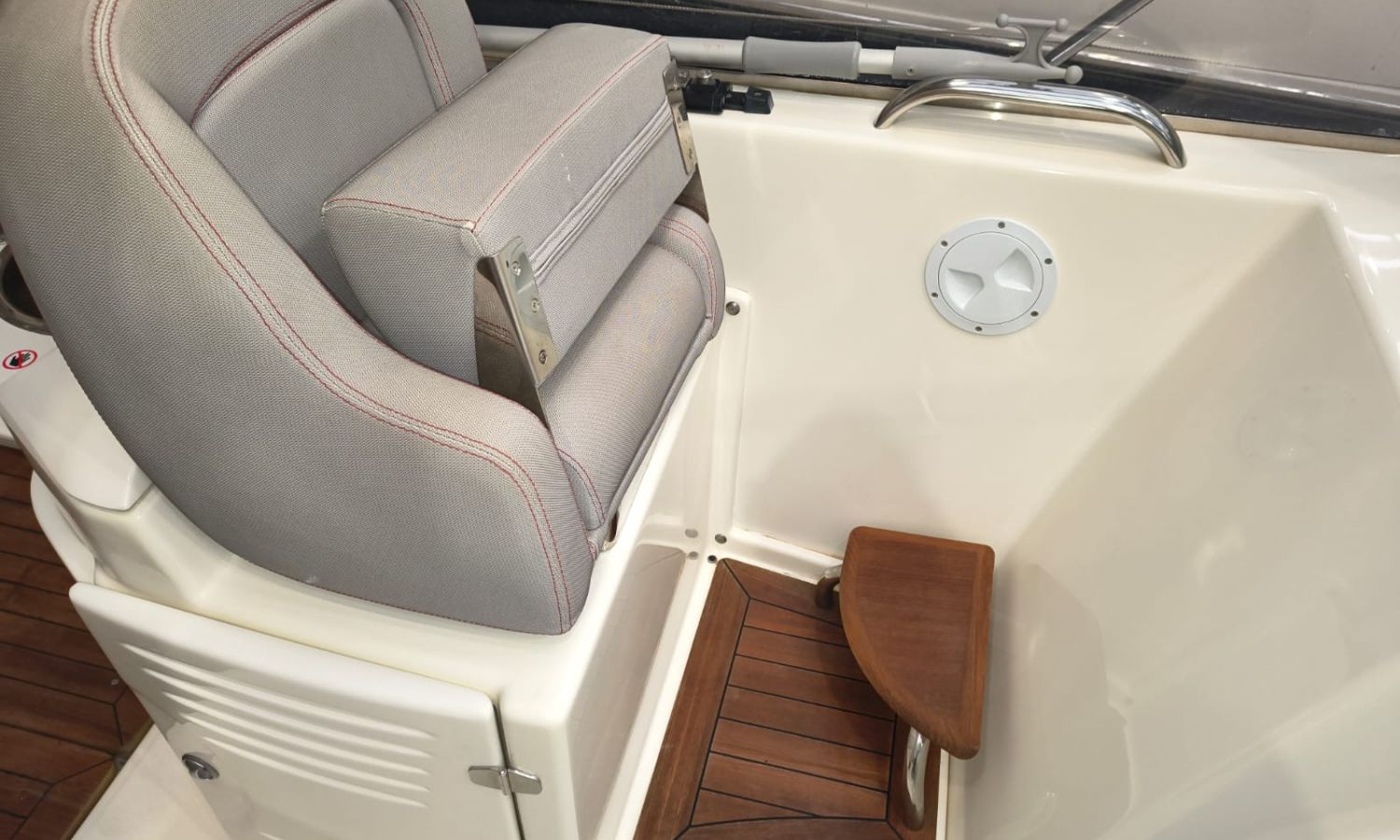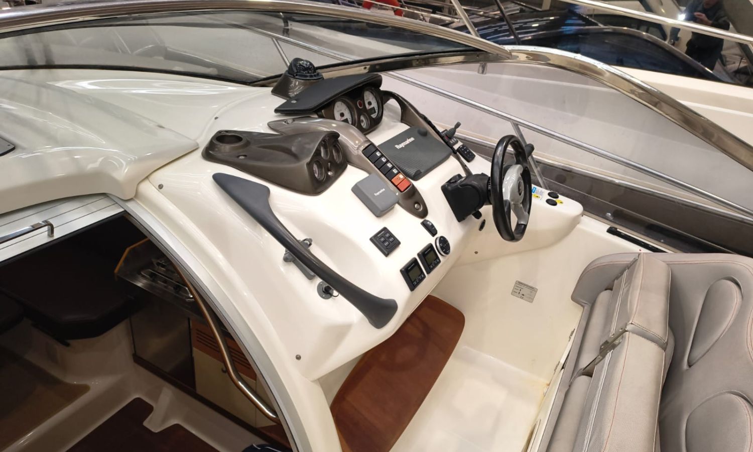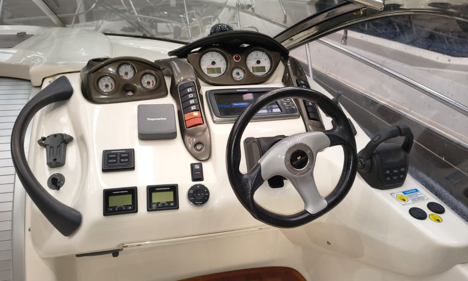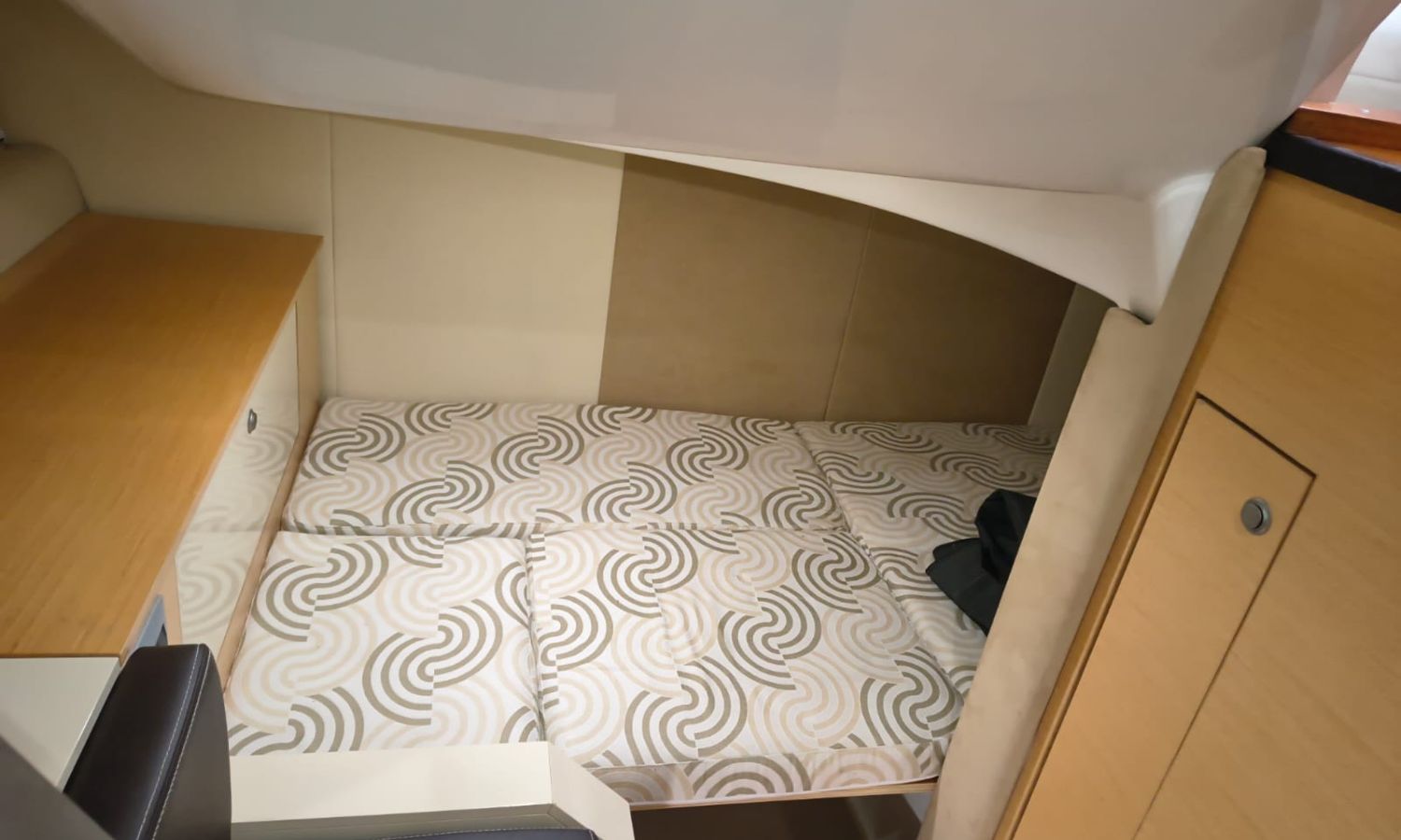 Molinete de ancla eléctrico - Flaps - Bimini - Solárium de proa - Nevera 12 V en bañera - Nevera 12 V en cabina - Ducha en popa - Toma puerto 220 V - Cargador de baterías - Mesa en cabina convertible en cama - WC eléctrico - Ducha separada del baño - Cocina de gas - Microondas - Hélice de proa - Mandos electrónicos - GPS/Plotter/Sonda - VHF - Equipo de audio - Mesa eléctrica en bañera - TV - AntifoulingDescripción embarcación