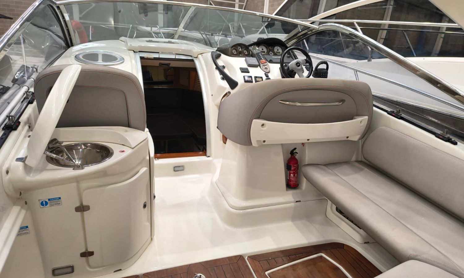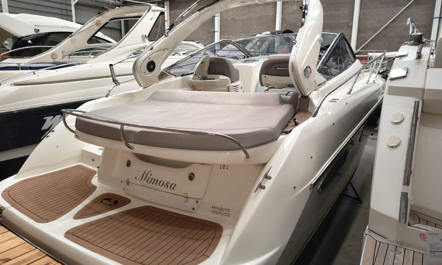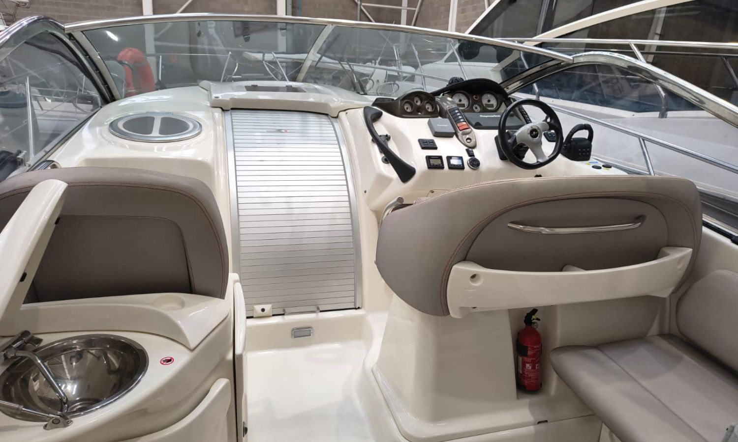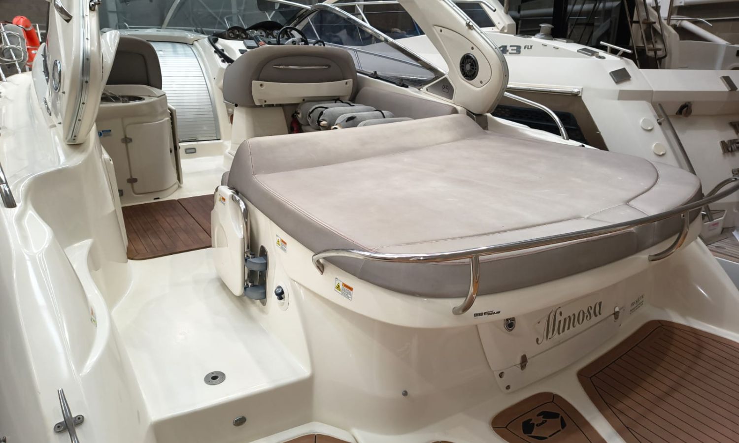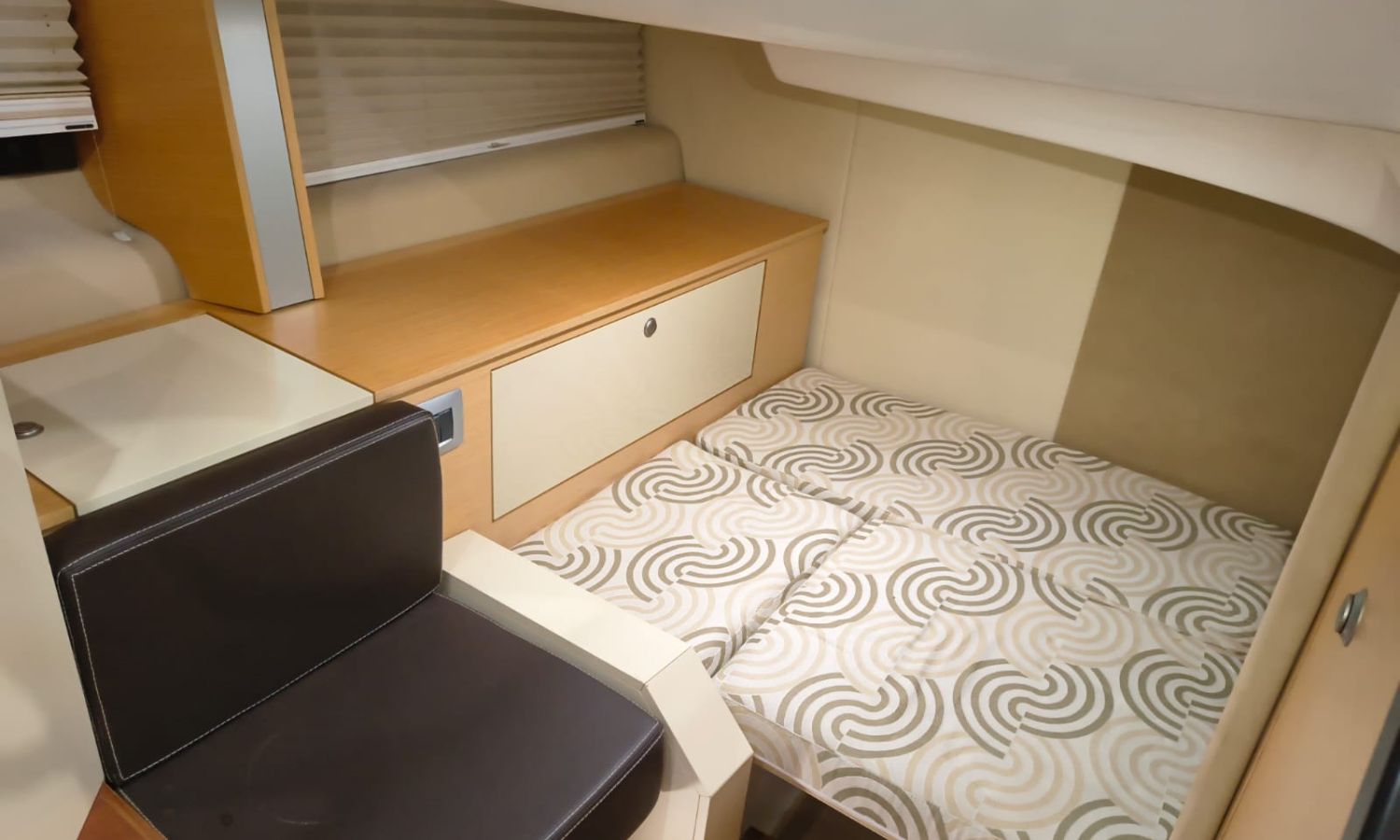 Molinete de ancla eléctrico - Flaps - Bimini - Solárium de proa - Nevera 12 V en bañera - Nevera 12 V en cabina - Ducha en popa - Toma puerto 220 V - Cargador de baterías - Mesa en cabina convertible en cama - WC eléctrico - Ducha separada del baño - Cocina de gas - Microondas - Hélice de proa - Mandos electrónicos - GPS/Plotter/Sonda - VHF - Equipo de audio - Mesa eléctrica en bañera - TV - AntifoulingDescripción embarcación