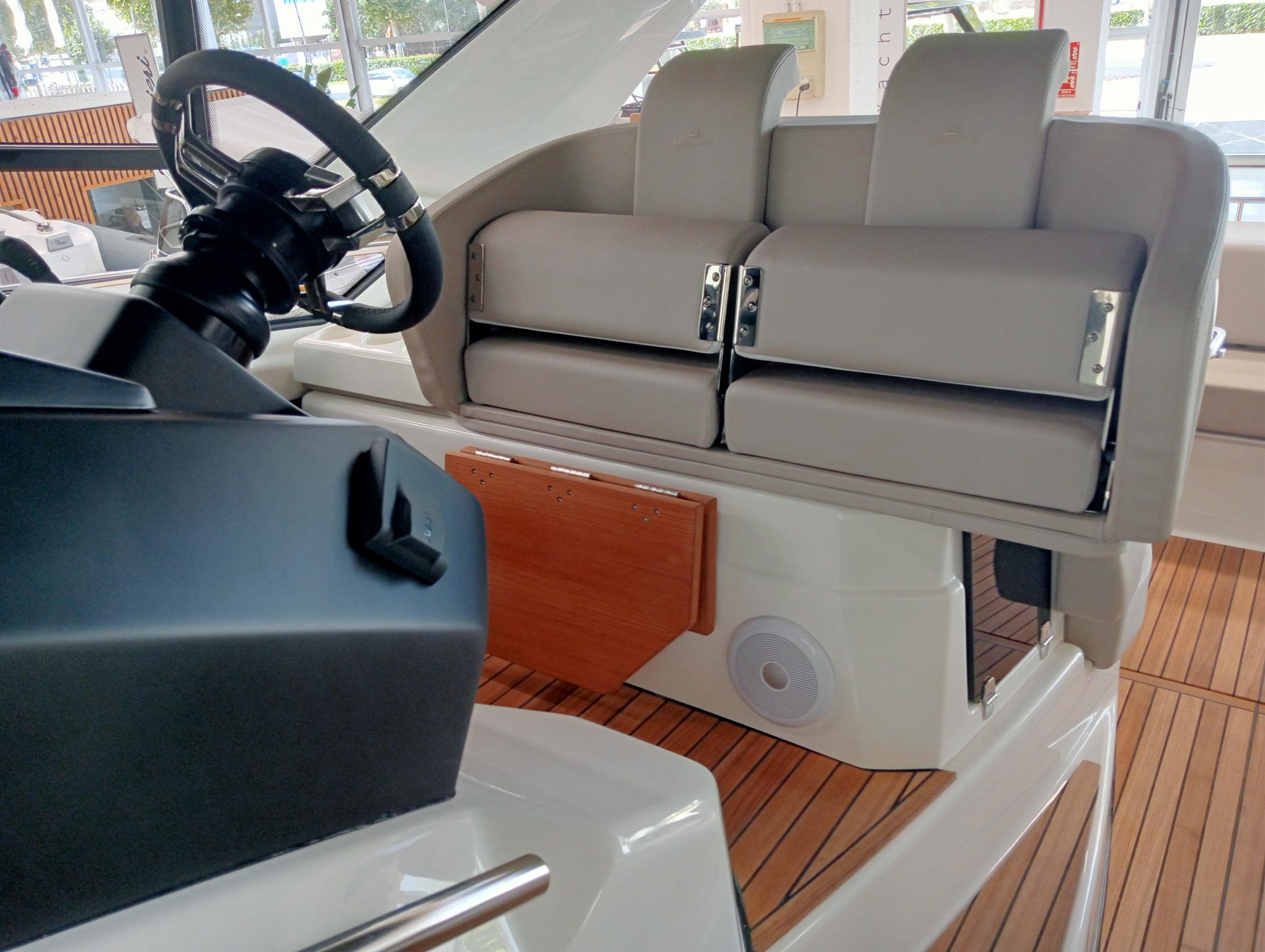Depósito de aguas negras - Aire acondicionado 16.000 BTU en cabinas con bomba de calor - Aire acondicionado 16.000 BTU refrigeración bañera - Capota completa de popa - Hélice de proa con extintor automático - Frigorífico en bañera - GPS + Chartplotter - Generador 8 kW - Pasarela hidráulica - Plataforma elevadora (reposapiés) plegable en teka para posición de conducción - Piloto automático - Bañera en teka - VHF / DSC - Copia certificado CE y declaración de conformidad - Hard top de color lacado - Preparación, botadura, entrega y prueba de mar - Tranporte astillero a Costa Brava.Descripción embarcación
