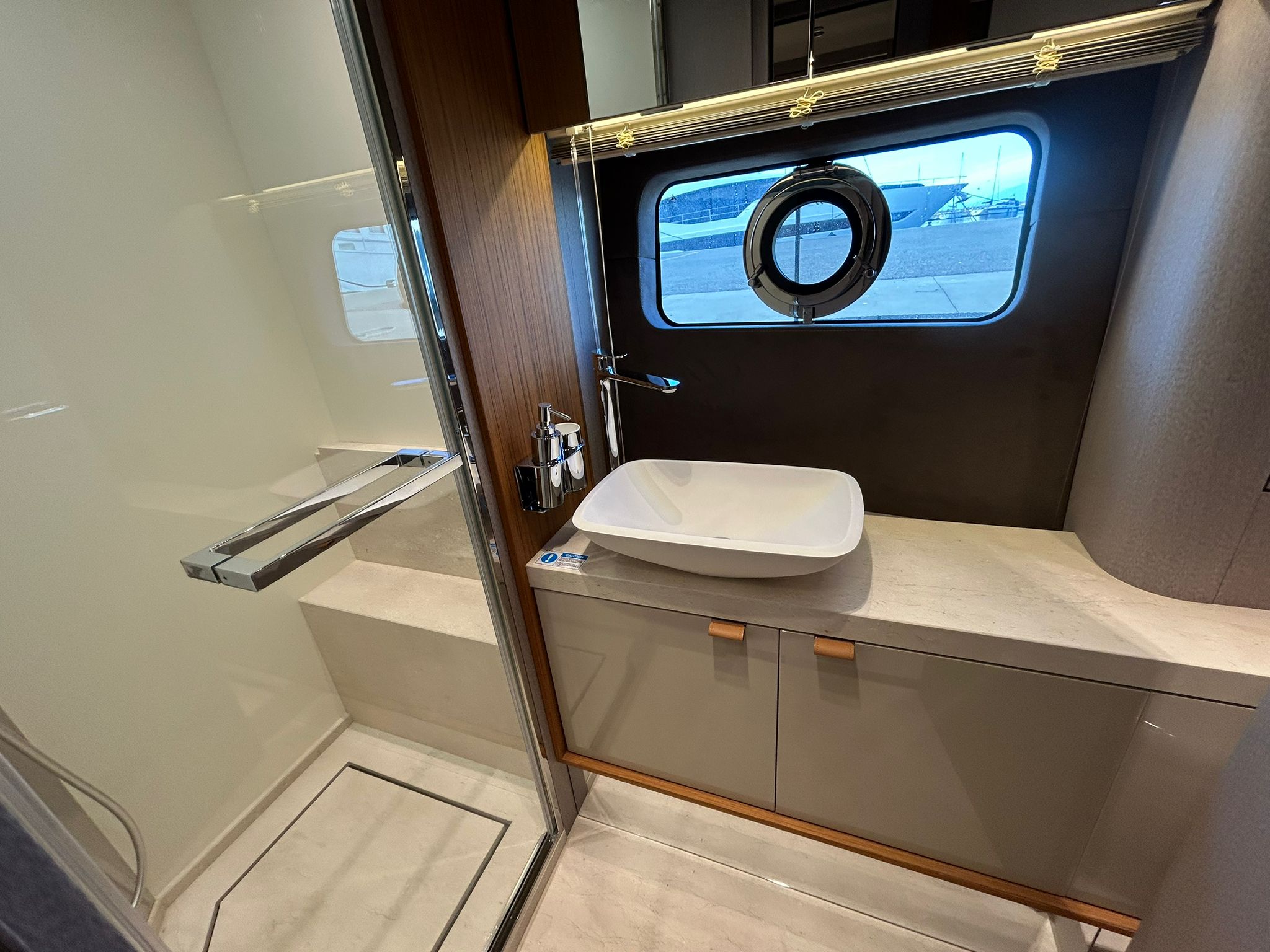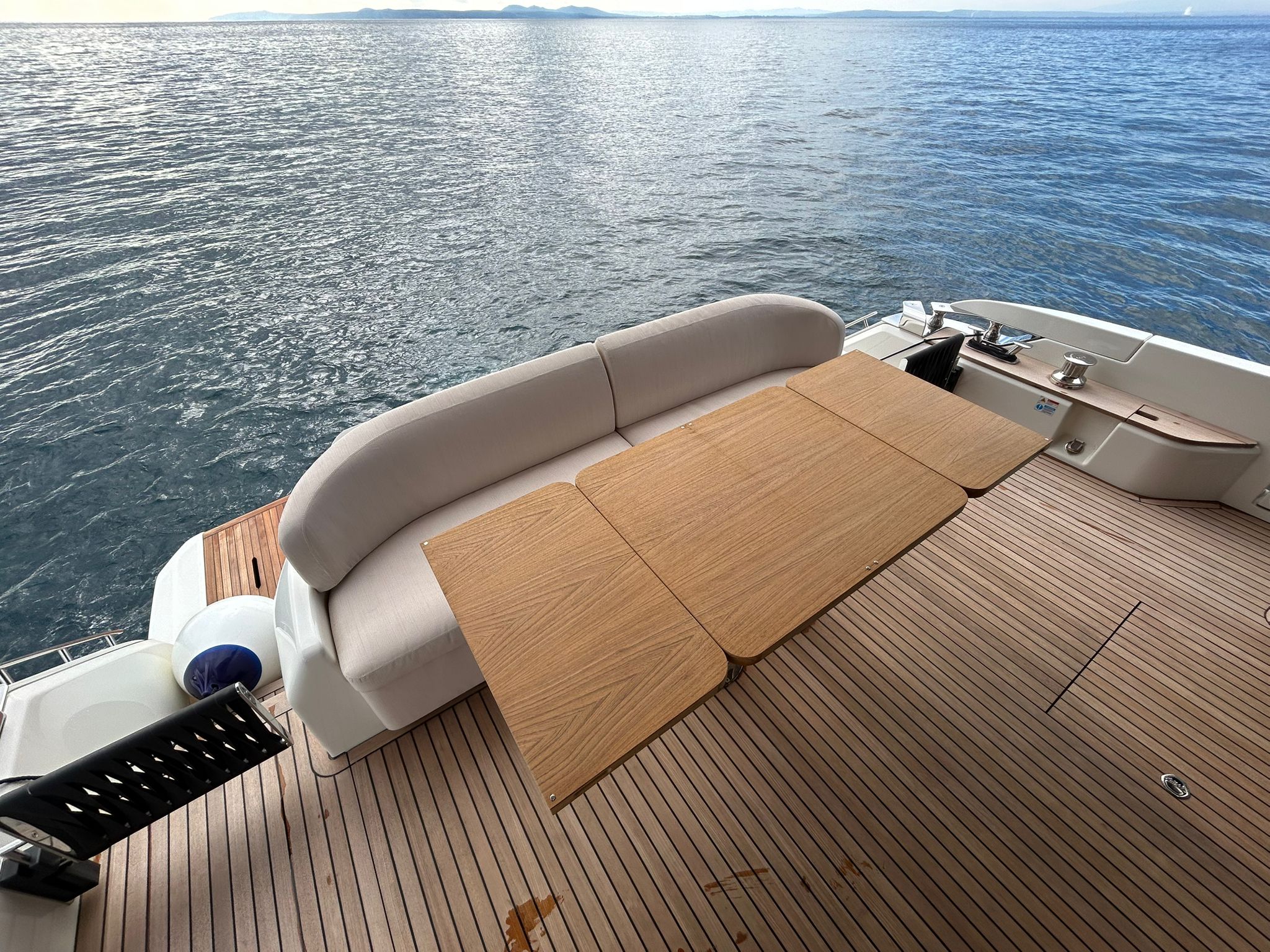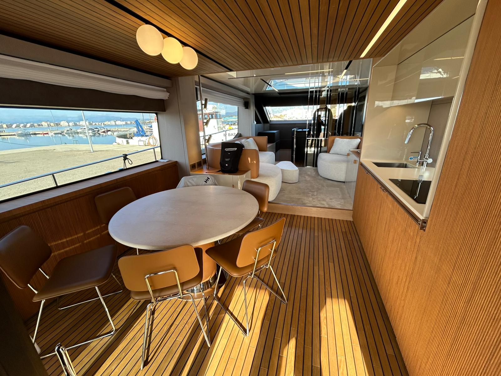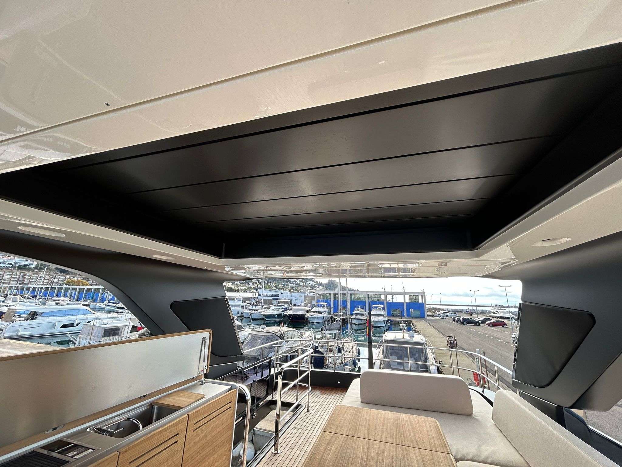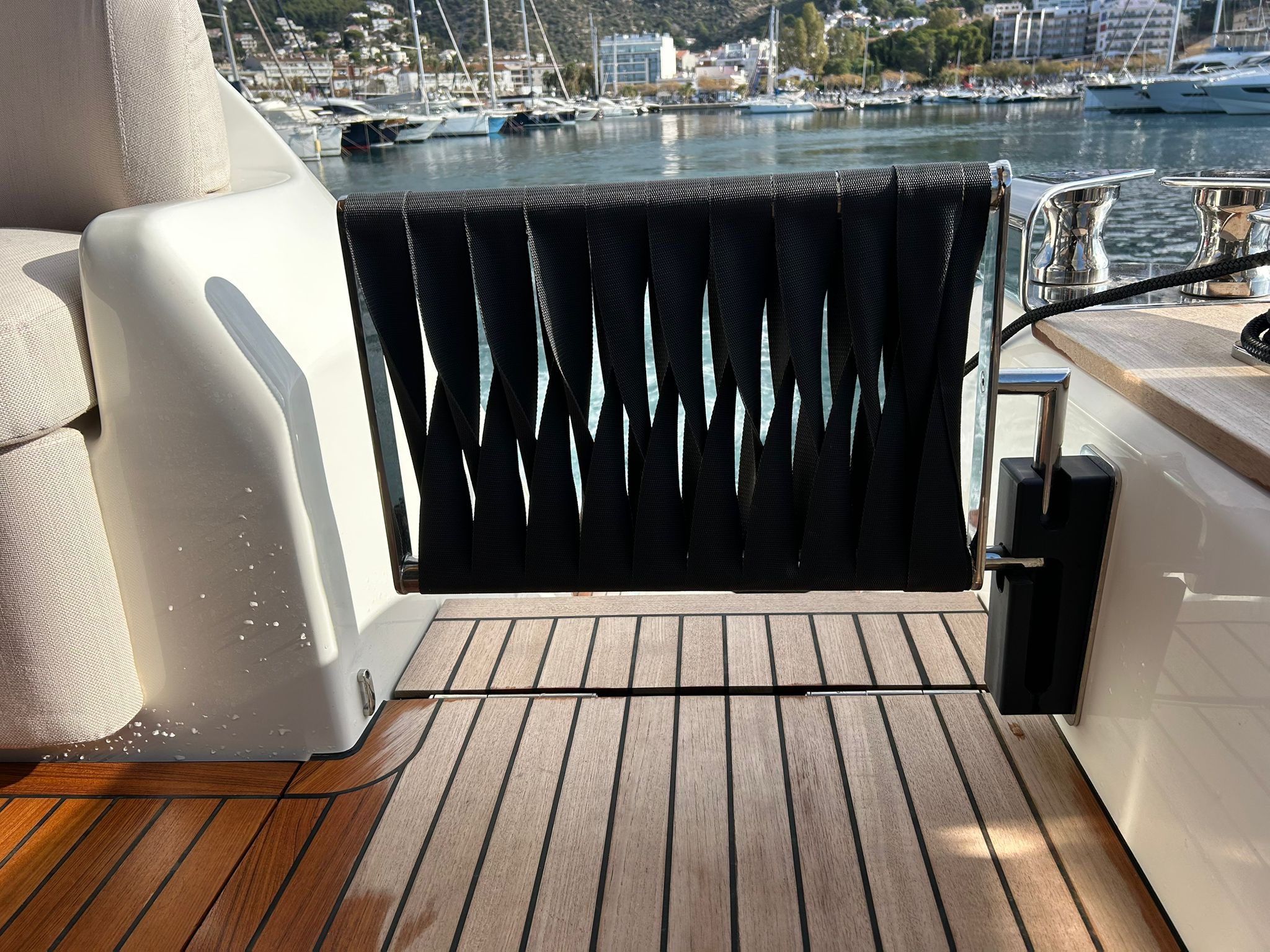 Ancla 60 Kg Ultramarine en acero inoxidable y cadena de acero inoxidable de 100 m - Enrolladores eléctricos cable línea de muelle de 20 m con mando a distancia - Zona de playa a popa: ducha con radio, luces y cargador inalámbrico para smartphone - Lino para 3 camarotes y cabina marinero: set de sábanas, fundas de almohadas, funda de colchón, colcha, toallas, etc. - Bidé en el baño de la cabina del armador - Bimini top de proa con palos de carbono - Cajafuerte electrónica en cabina armador - 6 cabos de amarre - Cobertura para dinette en bañera de popa - Coberturas flybridge - Desalinizadora 160 l/h con mando en cabina y sistema lavado con agua dulce - Hélice de proa proporcional - Faro pirata - Nevera en el sofá de la colchoneta de proa - Suplemento generador de 20,5 kW - Tercer puesto de mando en la bañera - Máquina de hielo con tanque de agua separado - Lavadora y secadora Miele - 7 Luces subacuáticas (3 a popa y 2 a cada lado) - Oscurantes para cristales de proa y laterales - Bimini top de popa vertical - Escotilla eléctrica en la timonería - Pasarela hidráulica telescópica retráctil - Fin Stabilizations System Humphree - Asiento interior copiloto - Puerta de acceso lateral a popa estribor - Puerta de acceso lateral a popa babor - Segunda pantalla plotter 22" en flybridge - Segunda pantalla plotter 22" en cubierta principal - Set de vajilla, vasos y cubiertos para 6 personas - Estabilizador giroscópico Seakeeper 9 - Surround view camera system Garmin - Superficie de teka en los trancaniles laterales proa/popa - Teka en el flybridge - Toldo de popa eléctrico en el flybridge - T-Top flybridge con láminas de apertura eléctrica - TV LED en salón con dispositivo eléctrico retráctil y sistema Home Theatre - TV 55" LED en cabina del armador y radio Bluetooth/USB - TV 43" LED en la cabina VIP y radio Bluetooth/USB - Certificado CE y declaración de conformidad - Transporte, montaje con varada y control general en el Cranchi Marine Test Centre en Venecia - Suplemento transporte T-Top - Decoración interior "Amalfi": combinación de colores de los muebles, suelos de madera, tejidos y mármoles - Pintura de la línea de belleza en el casco de color negro - T-Top lacado negro - 2 Cúpulas vacías para antena satélite TV6/60 cm.Descripción embarcación