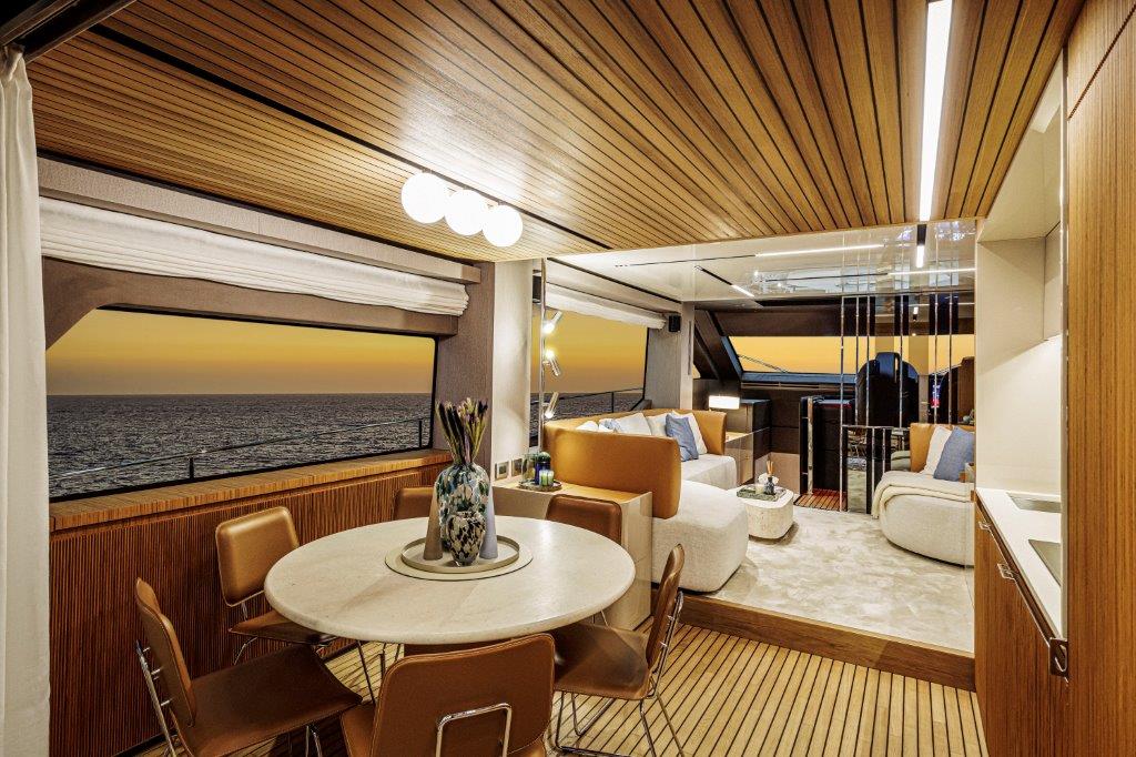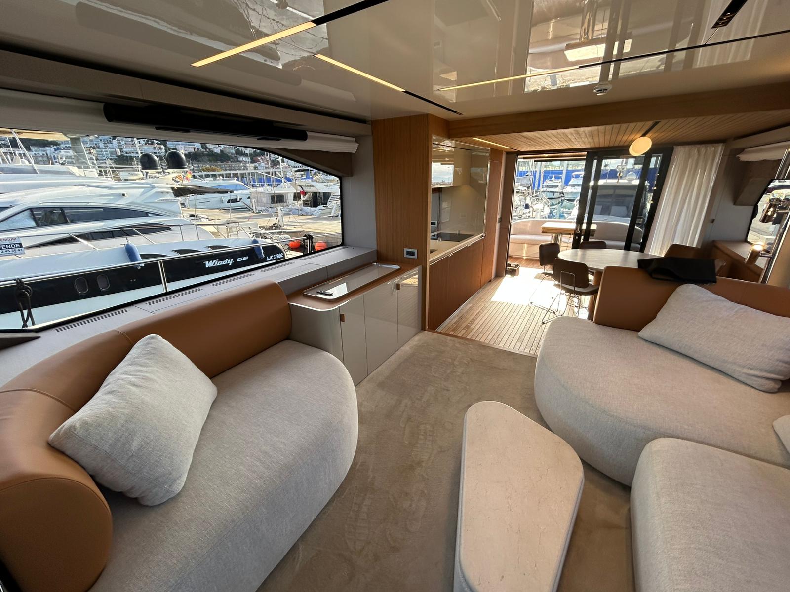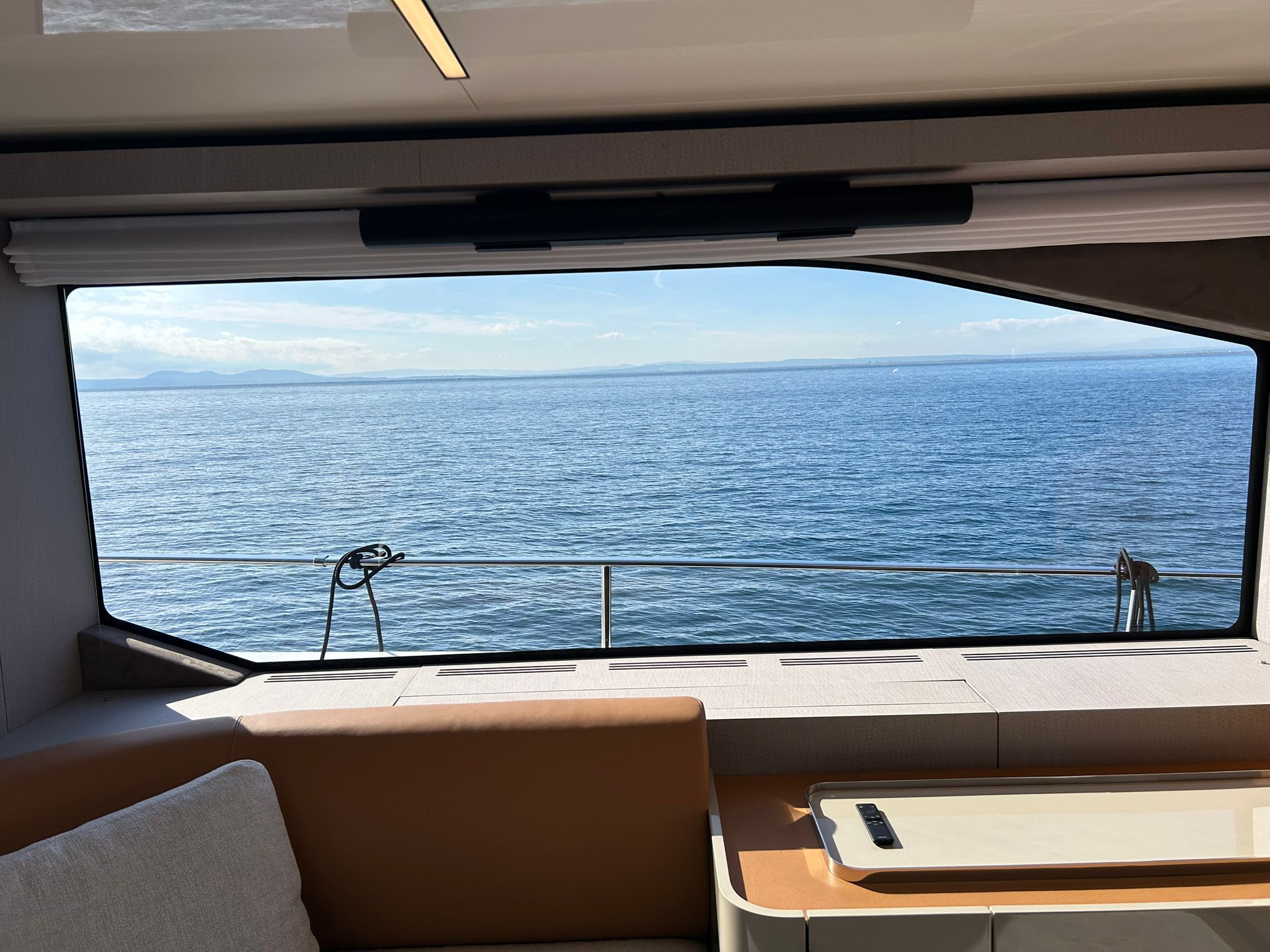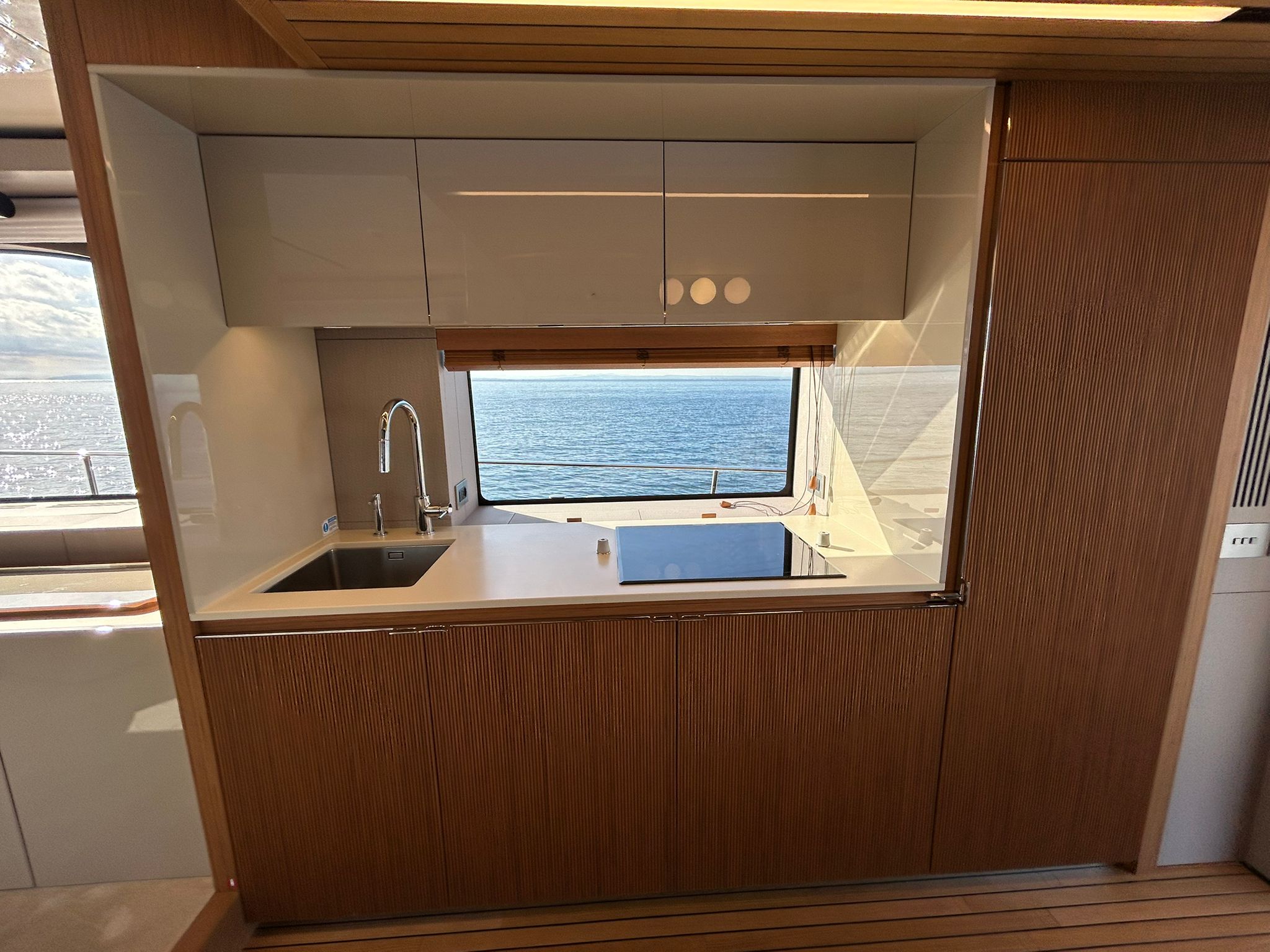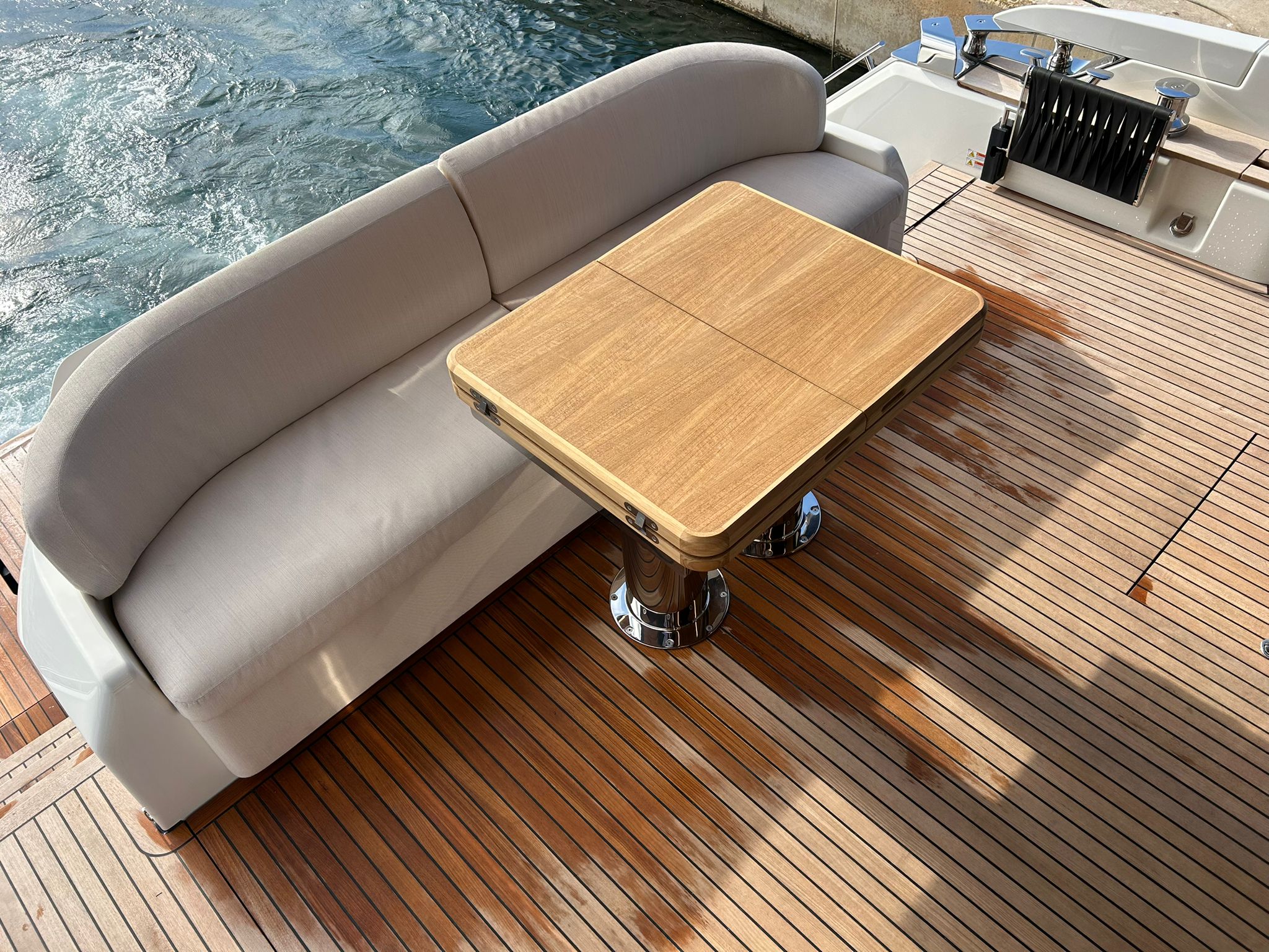 Ancla 60 Kg Ultramarine en acero inoxidable y cadena de acero inoxidable de 100 m - Enrolladores eléctricos cable línea de muelle de 20 m con mando a distancia - Zona de playa a popa: ducha con radio, luces y cargador inalámbrico para smartphone - Lino para 3 camarotes y cabina marinero: set de sábanas, fundas de almohadas, funda de colchón, colcha, toallas, etc. - Bidé en el baño de la cabina del armador - Bimini top de proa con palos de carbono - Cajafuerte electrónica en cabina armador - 6 cabos de amarre - Cobertura para dinette en bañera de popa - Coberturas flybridge - Desalinizadora 160 l/h con mando en cabina y sistema lavado con agua dulce - Hélice de proa proporcional - Faro pirata - Nevera en el sofá de la colchoneta de proa - Suplemento generador de 20,5 kW - Tercer puesto de mando en la bañera - Máquina de hielo con tanque de agua separado - Lavadora y secadora Miele - 7 Luces subacuáticas (3 a popa y 2 a cada lado) - Oscurantes para cristales de proa y laterales - Bimini top de popa vertical - Escotilla eléctrica en la timonería - Pasarela hidráulica telescópica retráctil - Fin Stabilizations System Humphree - Asiento interior copiloto - Puerta de acceso lateral a popa estribor - Puerta de acceso lateral a popa babor - Segunda pantalla plotter 22" en flybridge - Segunda pantalla plotter 22" en cubierta principal - Set de vajilla, vasos y cubiertos para 6 personas - Estabilizador giroscópico Seakeeper 9 - Surround view camera system Garmin - Superficie de teka en los trancaniles laterales proa/popa - Teka en el flybridge - Toldo de popa eléctrico en el flybridge - T-Top flybridge con láminas de apertura eléctrica - TV LED en salón con dispositivo eléctrico retráctil y sistema Home Theatre - TV 55" LED en cabina del armador y radio Bluetooth/USB - TV 43" LED en la cabina VIP y radio Bluetooth/USB - Certificado CE y declaración de conformidad - Transporte, montaje con varada y control general en el Cranchi Marine Test Centre en Venecia - Suplemento transporte T-Top - Decoración interior "Amalfi": combinación de colores de los muebles, suelos de madera, tejidos y mármoles - Pintura de la línea de belleza en el casco de color negro - T-Top lacado negro - 2 Cúpulas vacías para antena satélite TV6/60 cm.Descripción embarcación