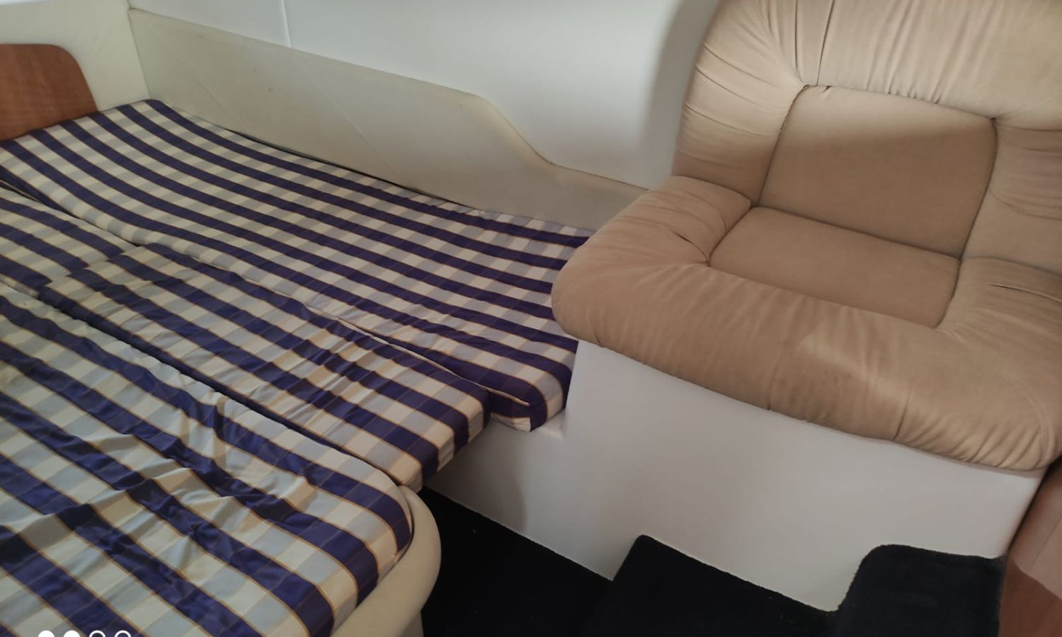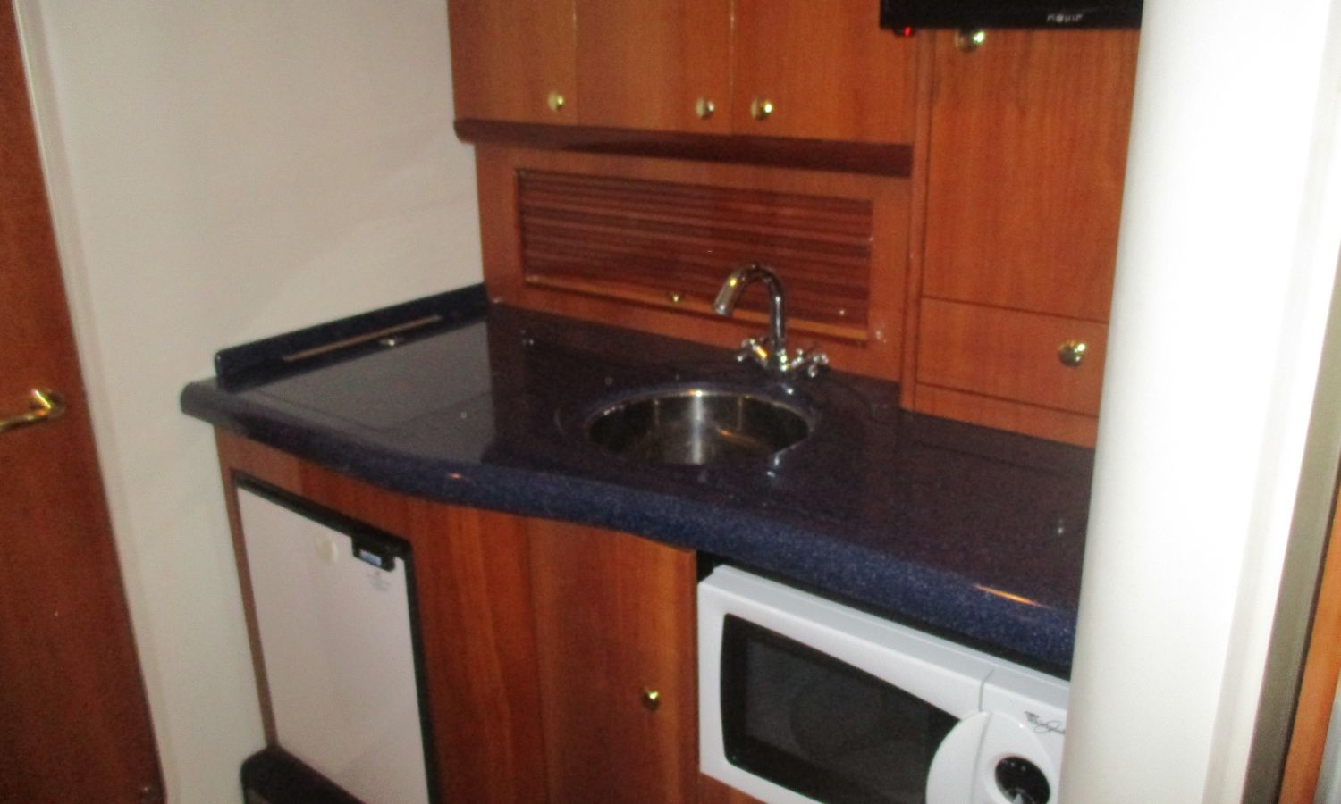 Lona de fondeo - Capota de sol - WC electrico con depósito aguas negras - Radio VHF - GPS+Plotter - Radar - Generador - Aire acondicionado - Pasarela hidraulica - Cargador de baterías - Hélice de proa - Frigo interior y exterior - Horno microondas - Plataforma de baño en teka - Solárium proa - Toma corriente puerto - Molinete eléctrico con ancla y cadena .Descripción embarcación
