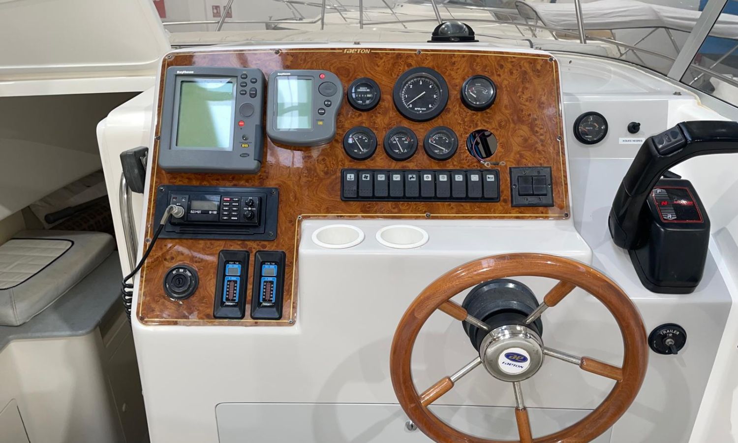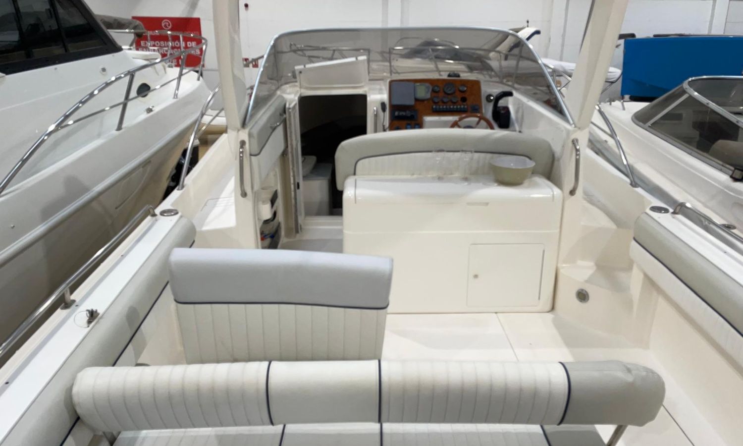 Toldo parasol - Lona de fondeo - Plataforma de baño con escalera - Ducha en popa - Mesa en la bañera - Flaps - Cojines solarium proa - Fregadero - Equipo audio - Sonda - VHF - Compas - Gancho de ski - Molinete eléctrico con ancla y cadena - Wc con depósito aguas negras - AntifoulingDescripción embarcación