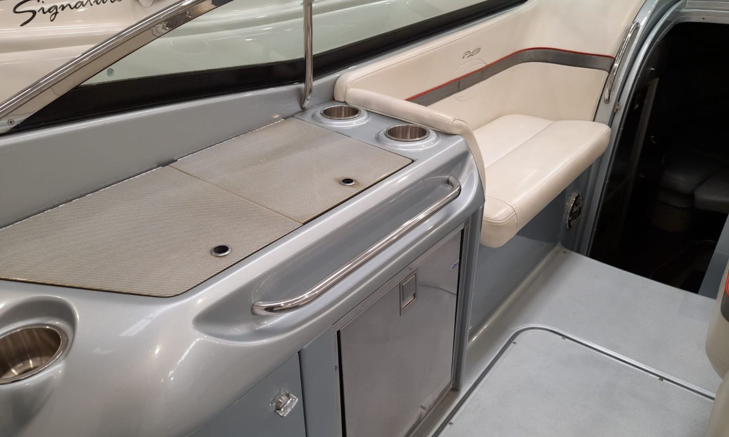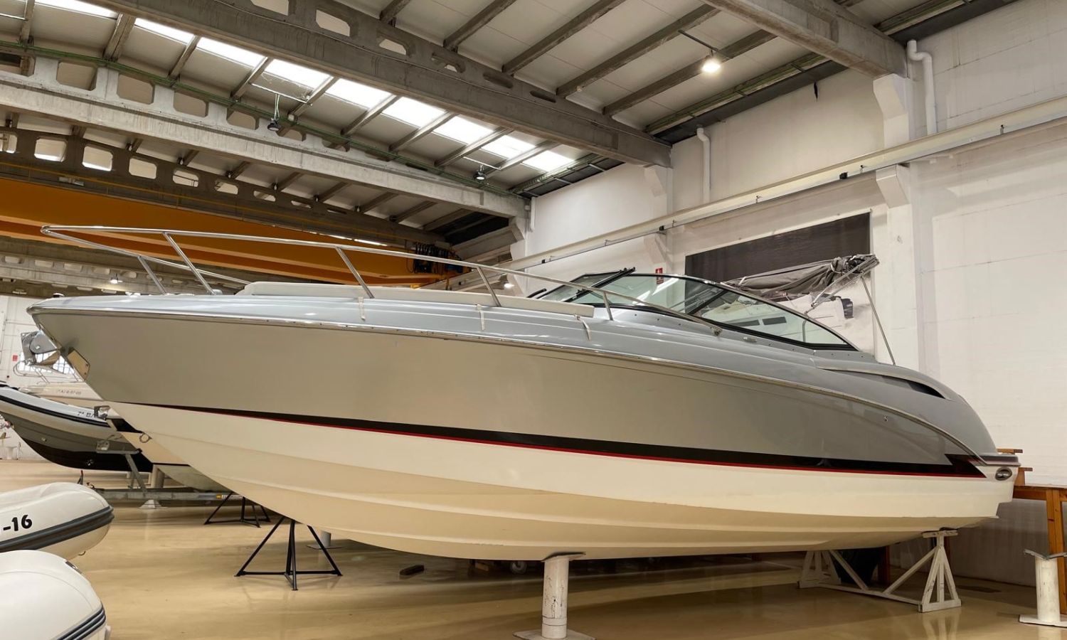 Molinete de ancla eléctrico - Cargador de baterías - Toma de puerto 220 V - GPS/Plotter/Sonda - VHF - Joystick - Equipo de música - Ducha exterior - Solárium de popa - Solárium de proa - Lona de fondeo - Nevera 12 V en bañera - Nevera en cabina - Bimini - Seadeck en plataforma de baño - WC eléctrico con depósito de aguas negras - Microondas - Flaps con indicador - TV - Mesa en bañera - Mandos electrónicos.Descripción embarcación