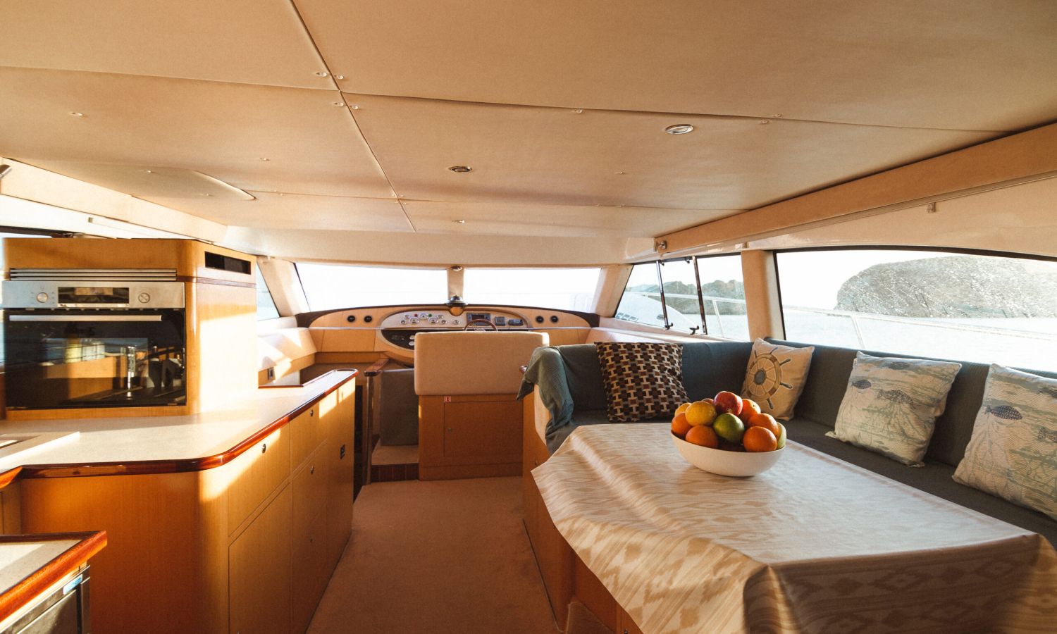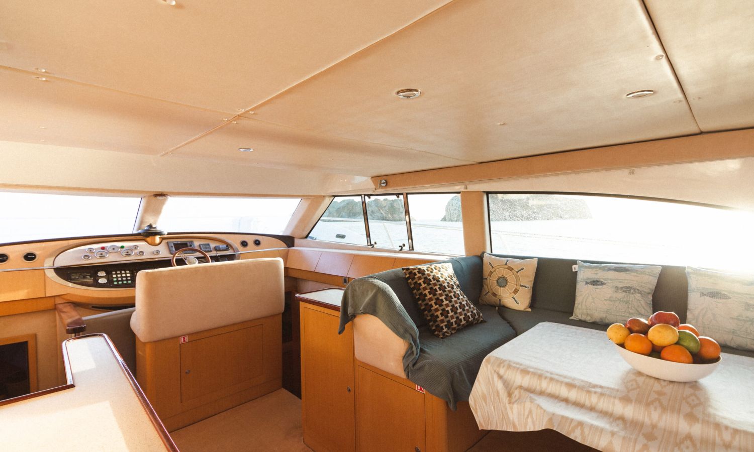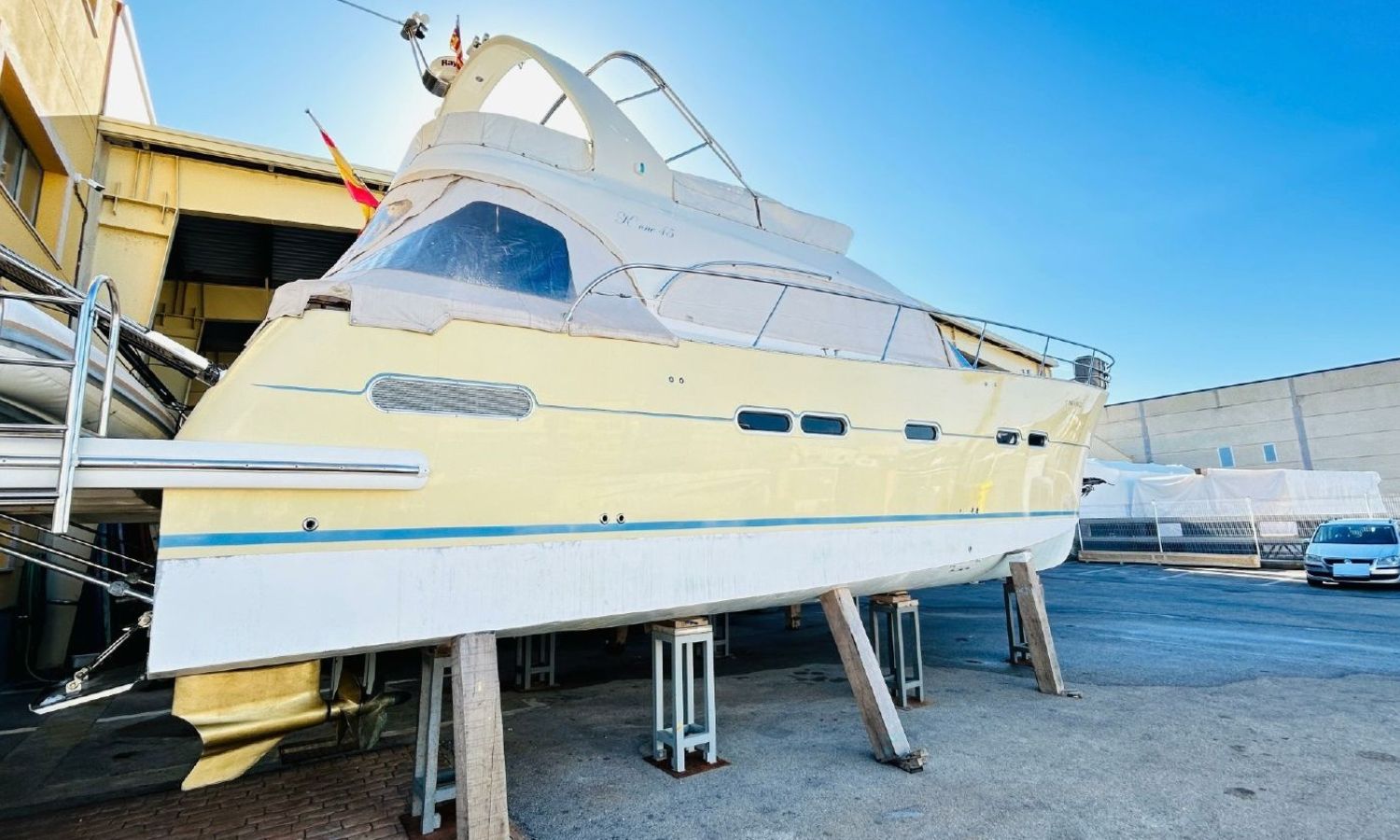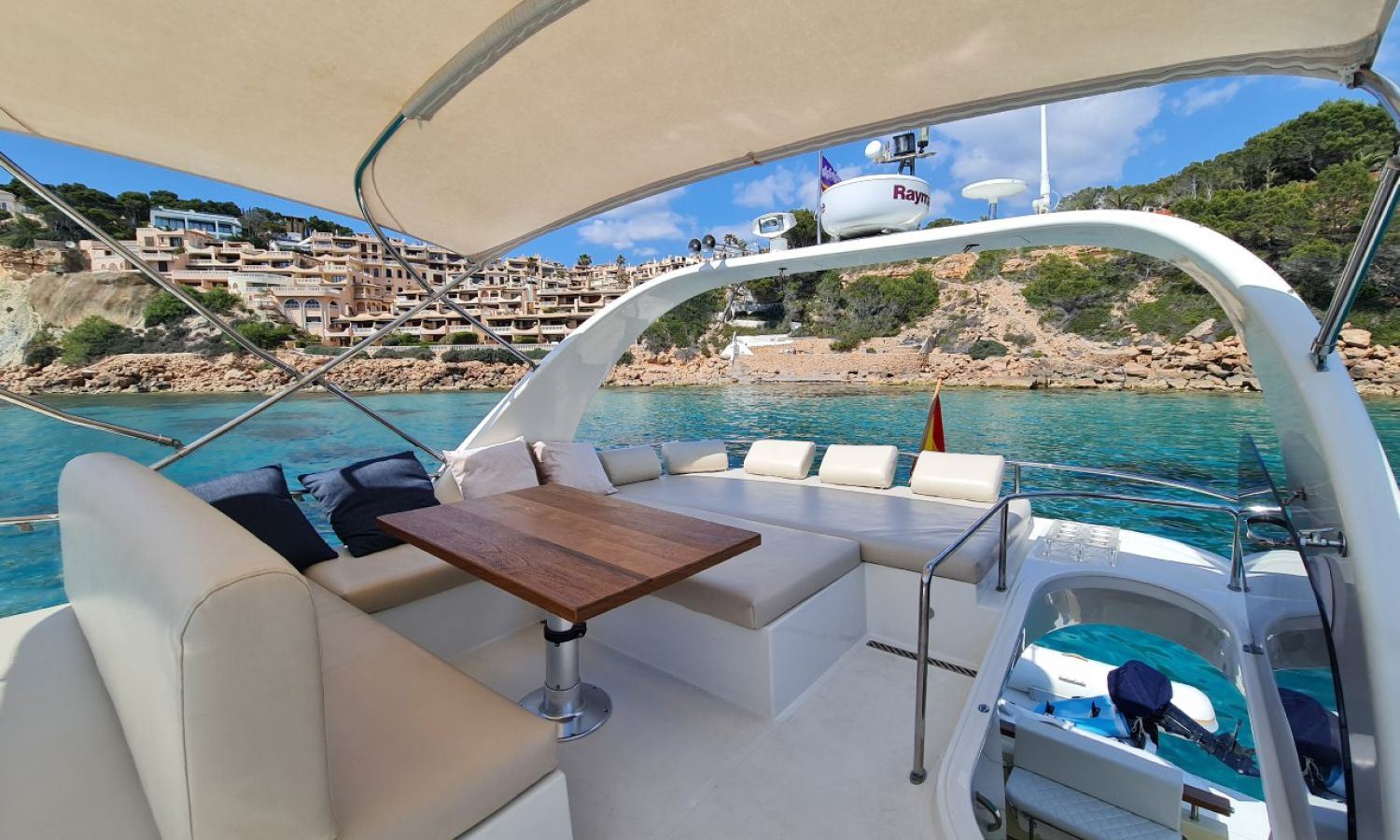 Toldo bimini - Molinete de ancla eléctrico - Mesa en la bañera - Pasarela de acero inoxidable y teca - Lona de fondeo - 2 escaleras de baño - Flybridge - Solàrium de popa - Equipo audio - Cargador de baterías - Toma de puerto - Generador - Aire acondicionado - Calentador de agua - Cocina a gas - Nevera - Horno-microondas - Fregadero - Gps/Plotter/Sonda - Vhf - 4 camarotes dobles.Descripción embarcación
