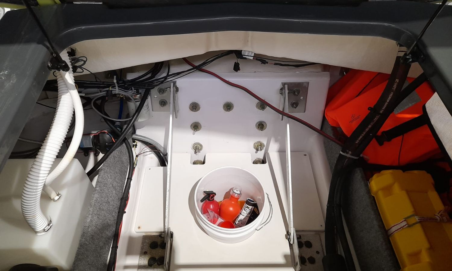 Toldo parasol - Ducha en popa - Plataforma de baño con escalera - Solárium de popa - Solárium de proa - Mesa en la bañera - Fregadero - Mando electrónico - GPS/Plotter/Sonda - Nevera portátil - Ancla y cadena - Equipo audio - WC químico - Lona de fondeo - Antifouling.