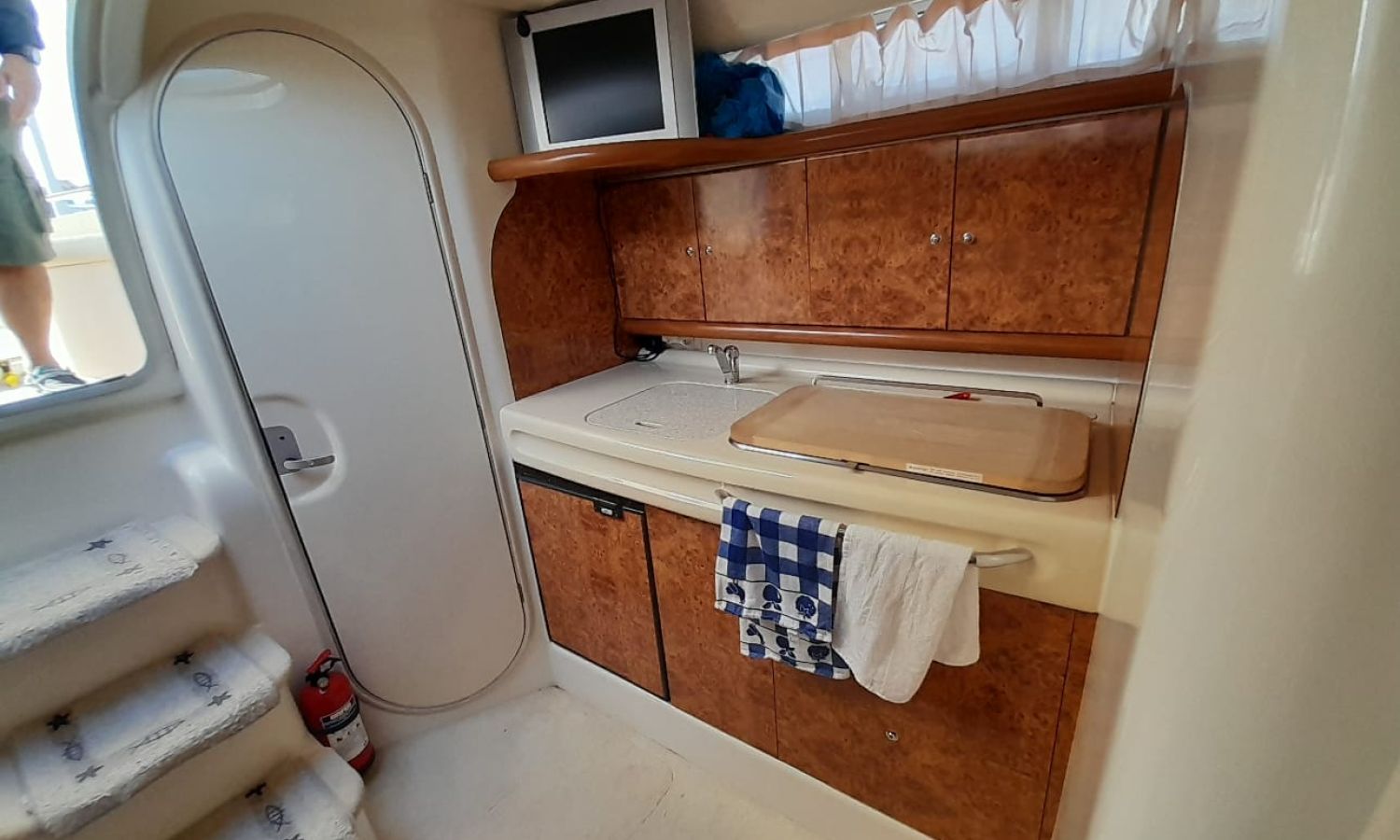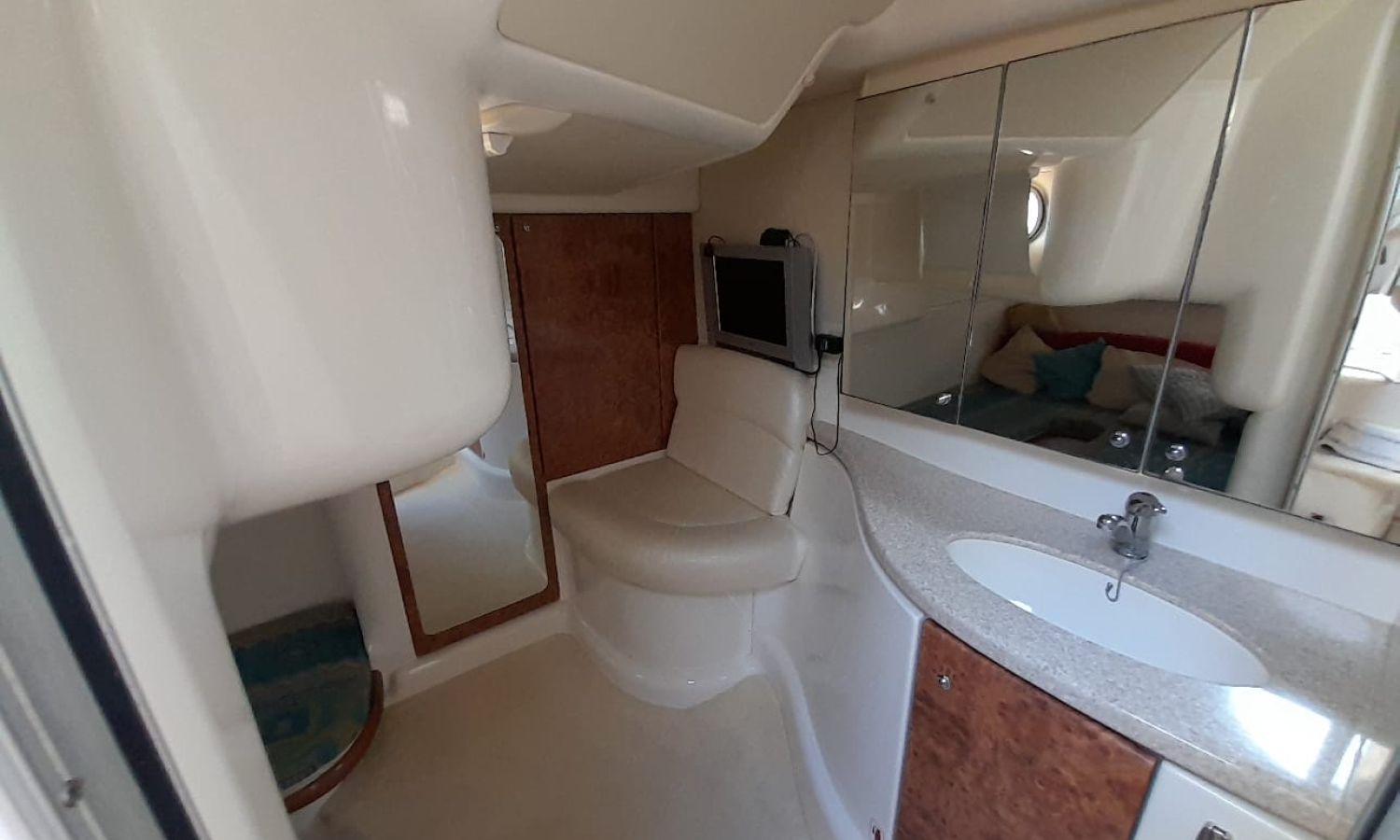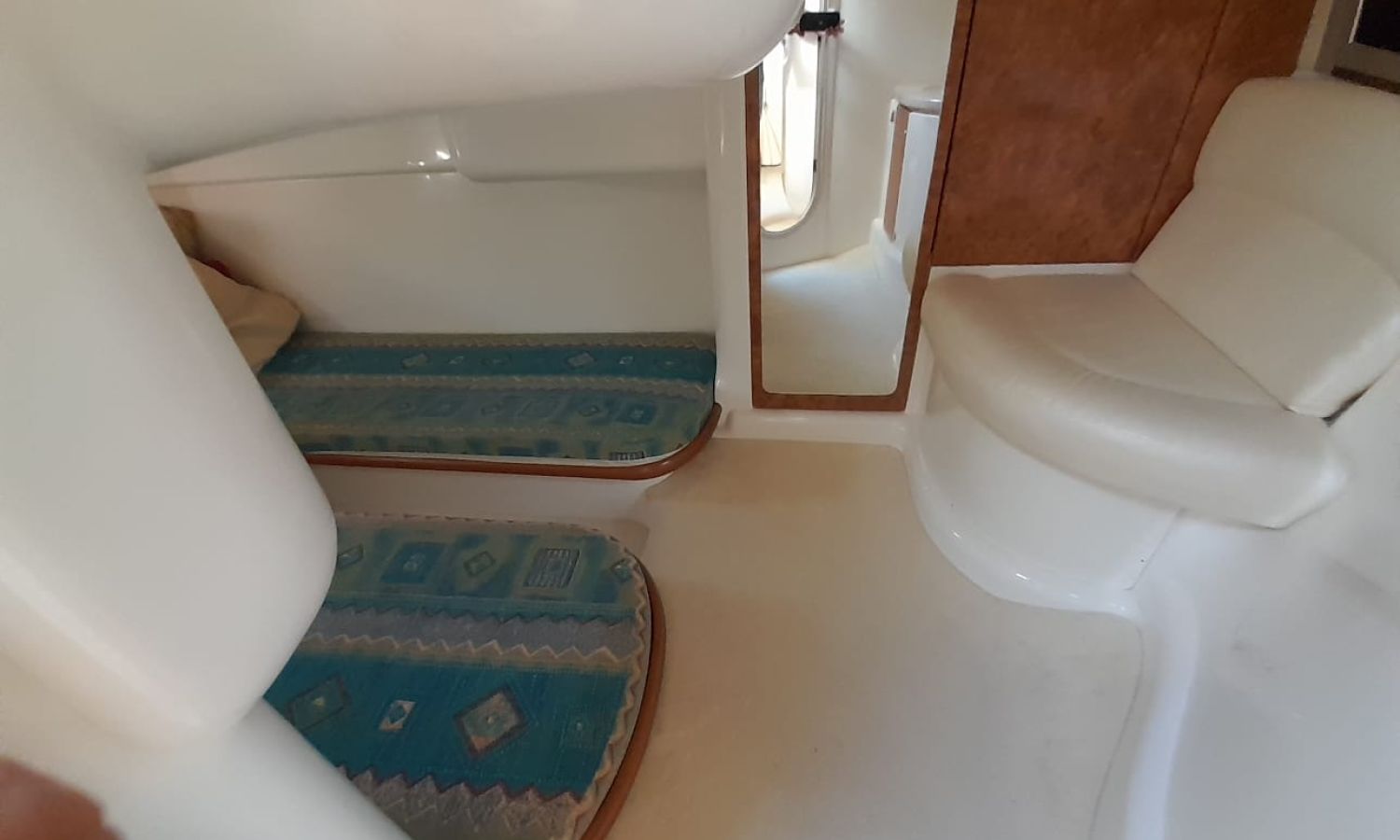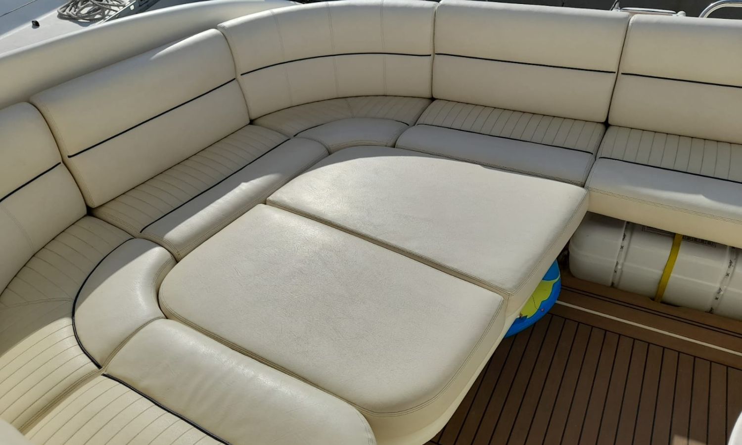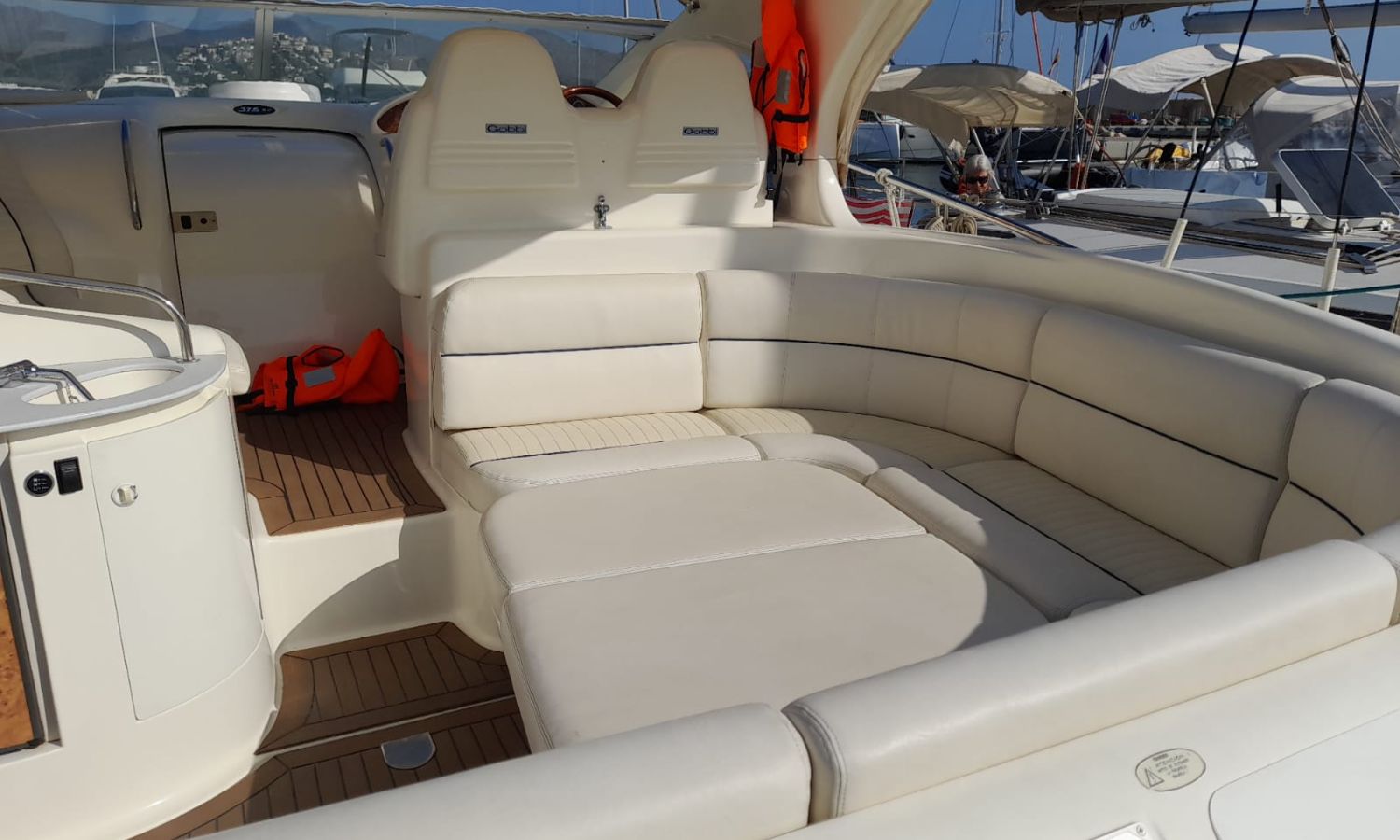 Plataforma de baño con escalera - Teca - Pasarela hidráulica - Cargador de baterias - Toma de puerto 220 V. - Nevera 12 V. - Fregadero - Solárium de proa - Solárium de popa - Gps/Sonda - VHF - Compás - Hélice de proa - Mesa en la bañera - 2 Camarotes - Wc marino con depósito aguas negras - Molinete de ancla eléctrico - AntifoulingDescripción embarcación