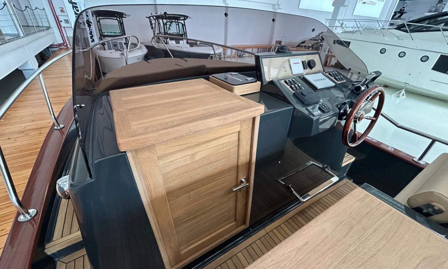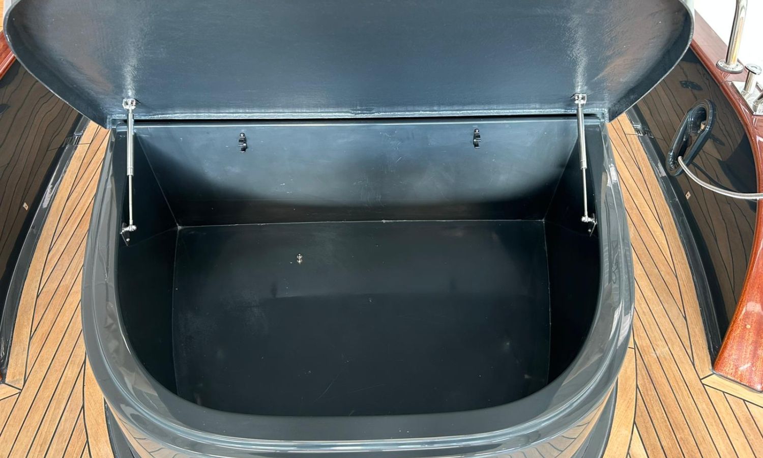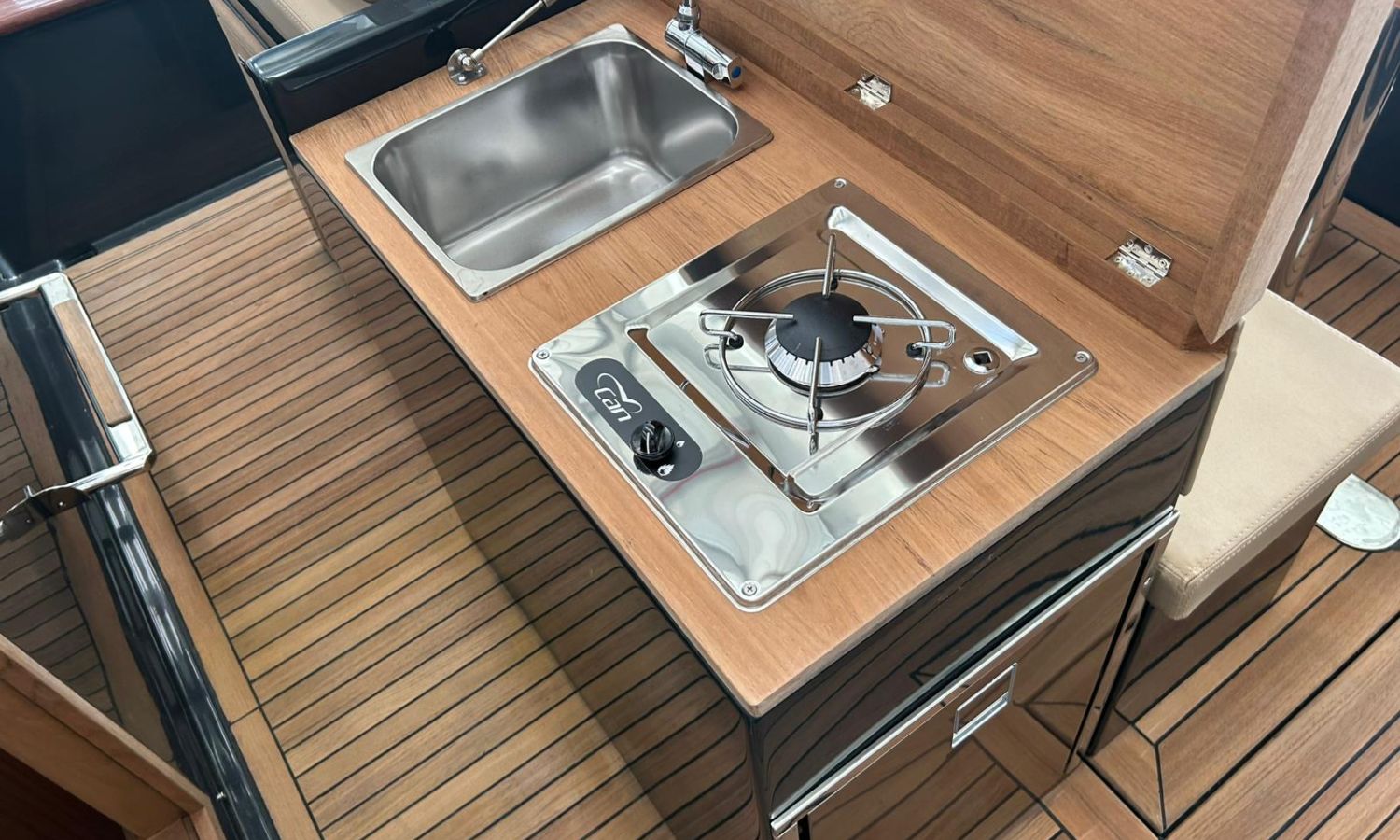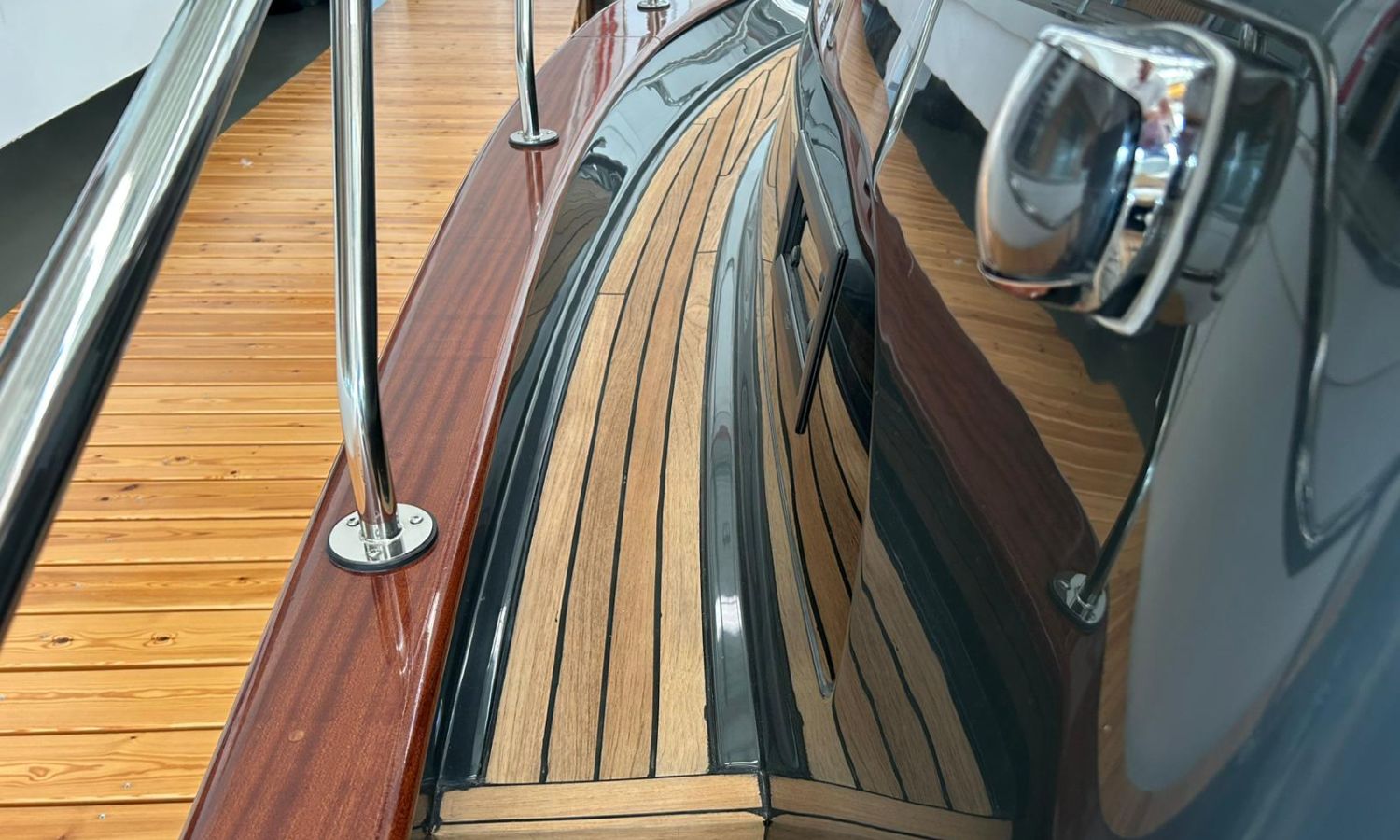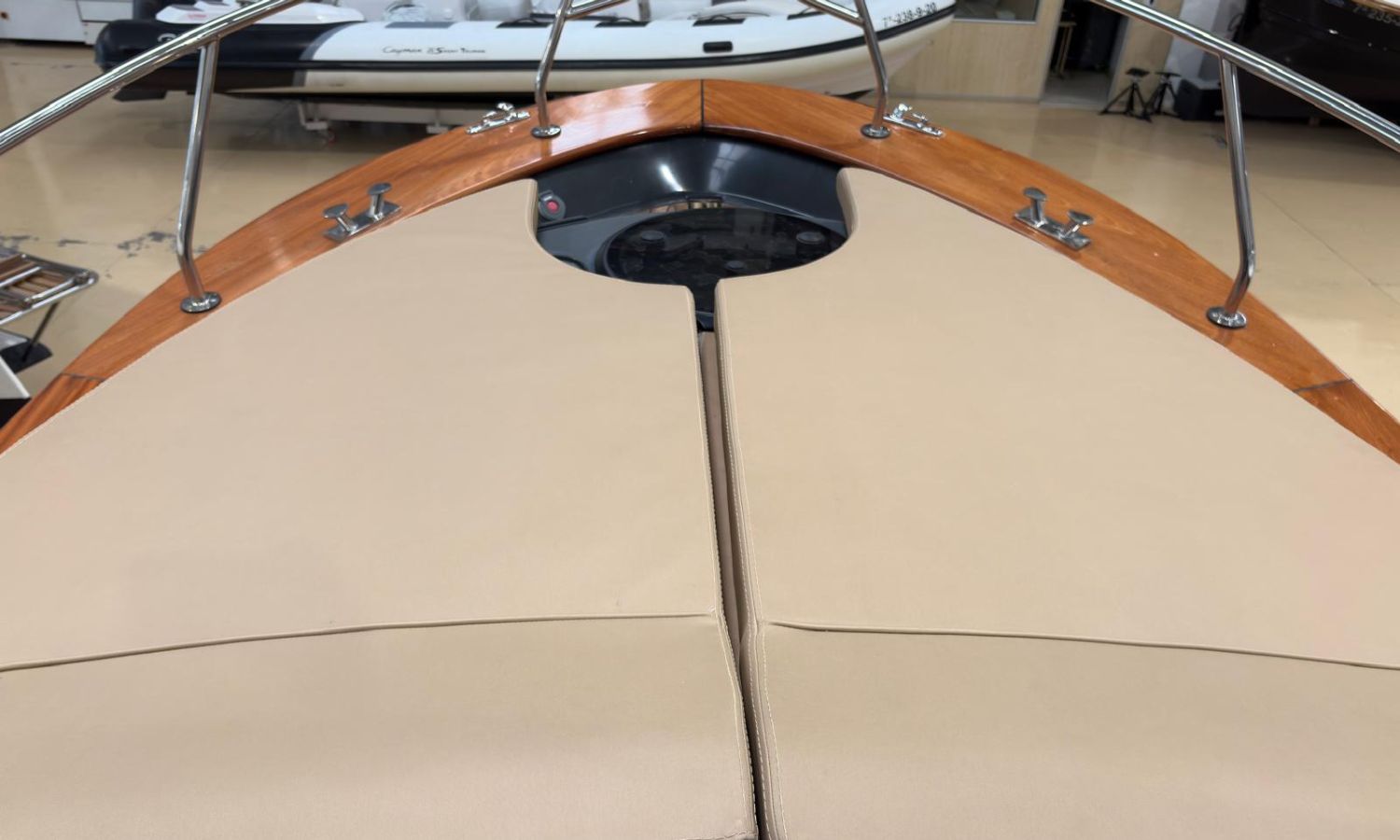 Toldo parasol - Plataforma de baño con escalera - Ducha en popa - Solarium de popa - Toma de puerto 220 v. - Cargador de baterias - Mesa en la bañera - Nevera 12 v. - Teca - Gps/Plotter/Sonda - Mando electrónico - Hélice de proa - Vhf - Equipo audio - Wc marino - Compas - Antifouling.Descripción embarcación