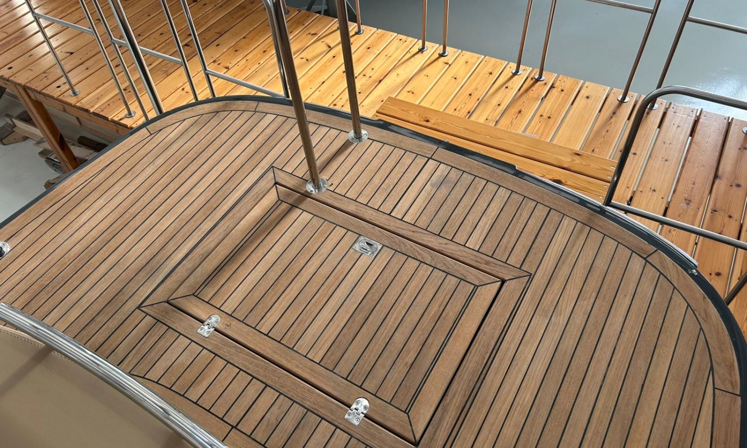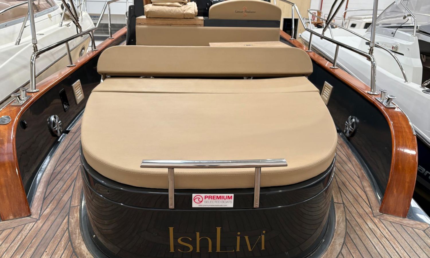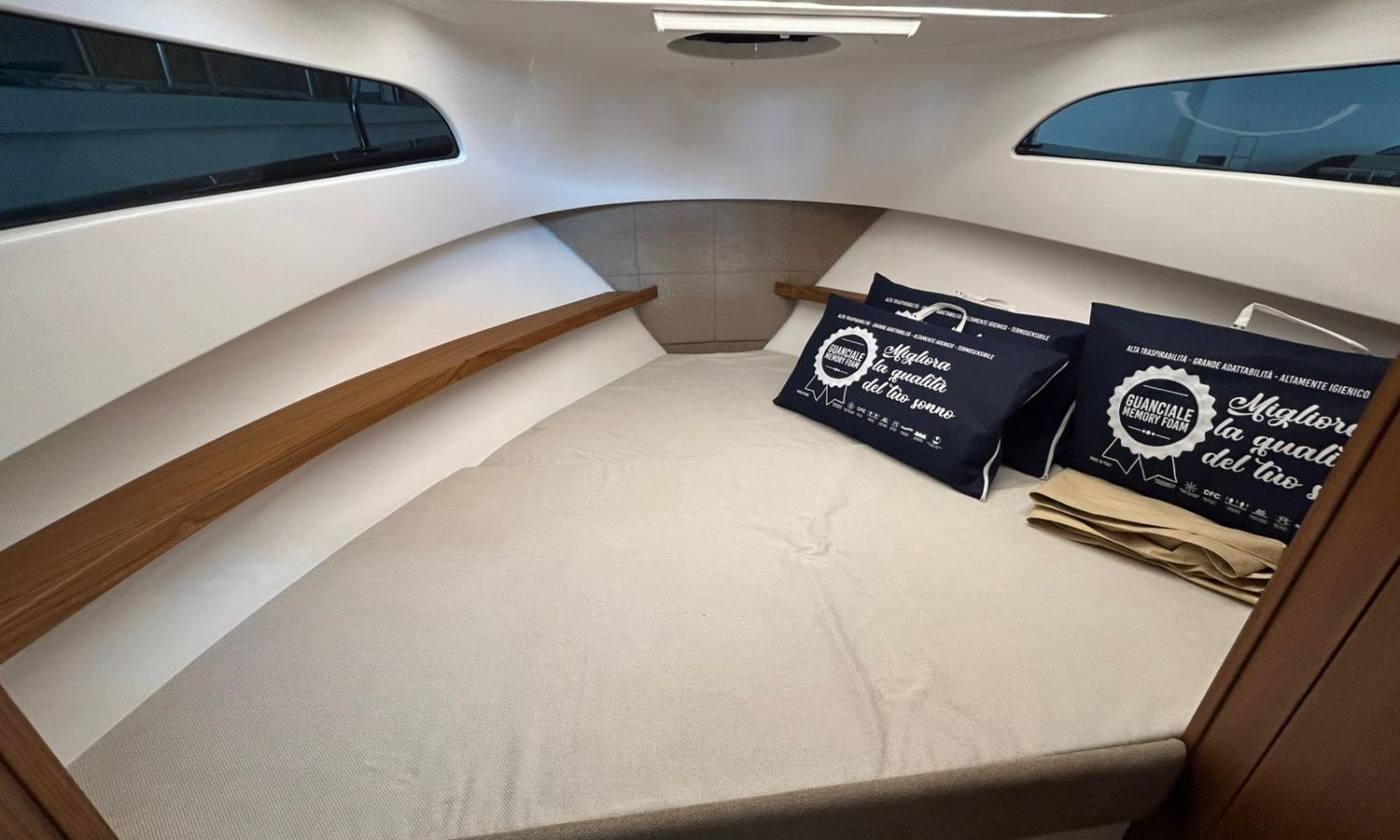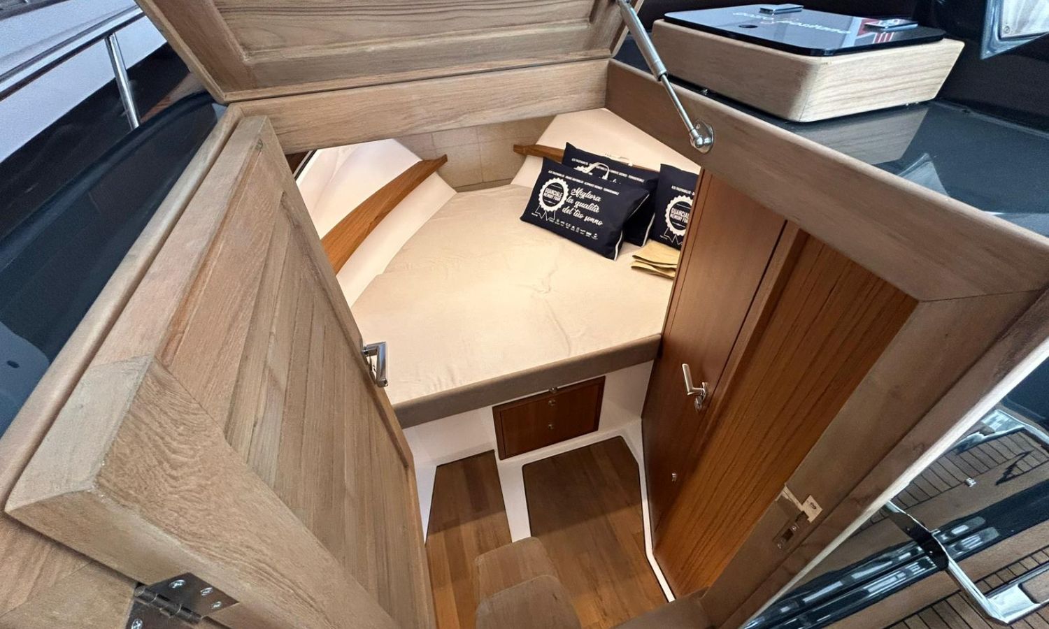 Toldo parasol - Plataforma de baño con escalera - Ducha en popa - Solarium de popa - Toma de puerto 220 v. - Cargador de baterias - Mesa en la bañera - Nevera 12 v. - Teca - Gps/Plotter/Sonda - Mando electrónico - Hélice de proa - Vhf - Equipo audio - Wc marino - Compas - Antifouling.Descripción embarcación