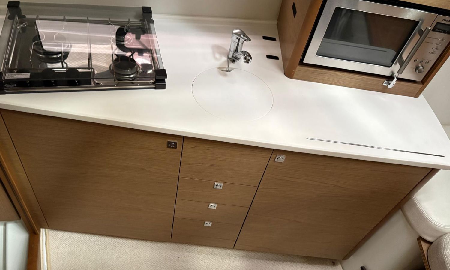 Hélice de proa - Flaps - Hard top eléctrico - Toma de puerto 220v - Cargador de baterías - Calentador de agua - Teka en bañera y plataforma de baño - Nevera eléctrica en bañera - Molinete ancla eléctrico - Colchonetas solarium en proa - Ducha en popa - Mesa en bañera - Mandos electrónicos - GPS/plotter/sonda - Piloto Automático - Compás - Radio VHF - Joystick - Equipo audio - Tv satélite - 2 Camarotes - 1 WC marino Eléctrico con depósito de aguas negras - Cocina de gas - Fregadero - Microondas - Nevera en cabina.