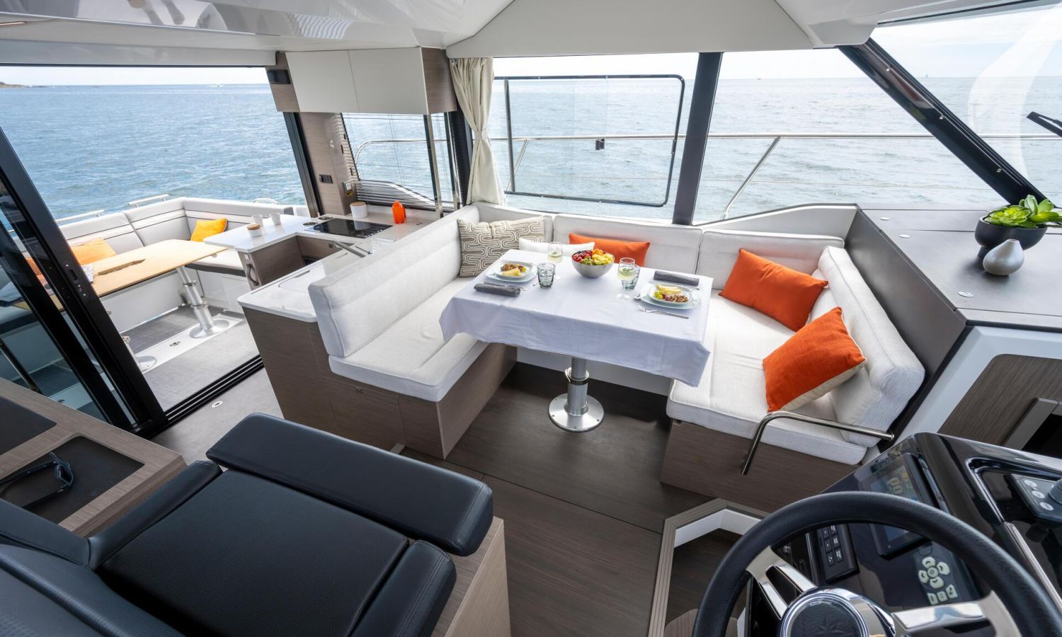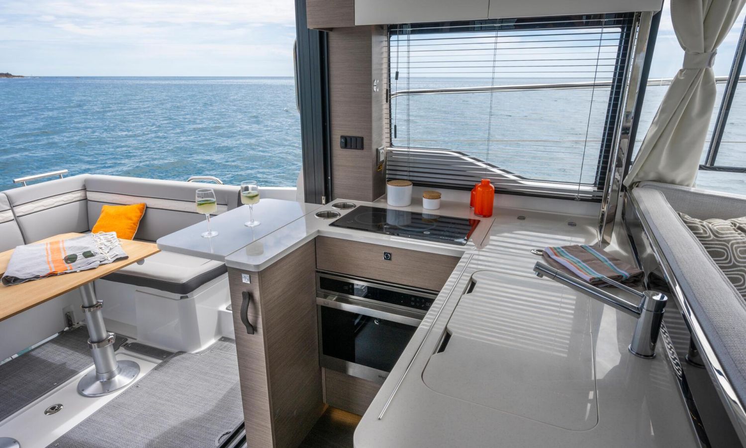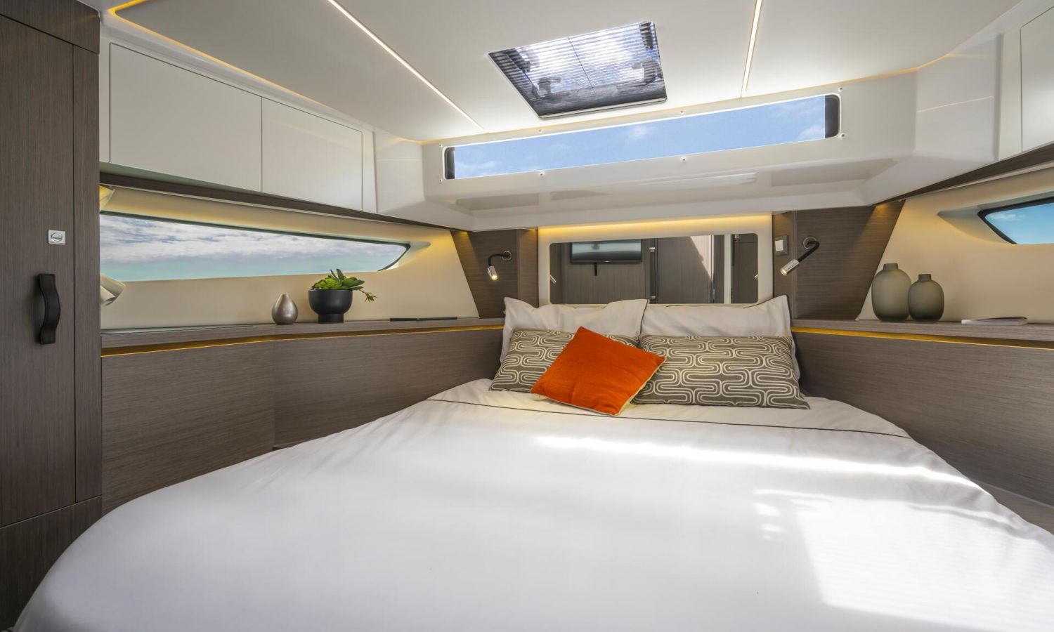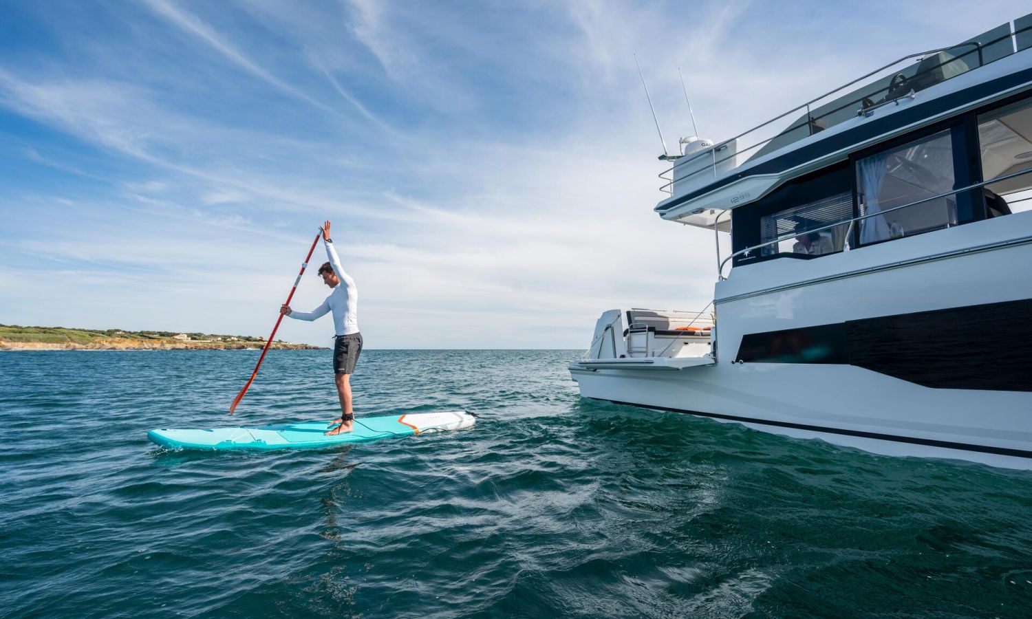 Déjate seducir por sus líneas contemporáneas y elegantes, adornadas con nuevos acristalamientos de casco. Esta firma Jeanneau ofrece un estilo exclusivo al buque insignia de esta histórica gama equipada con 3 x 300 CV.