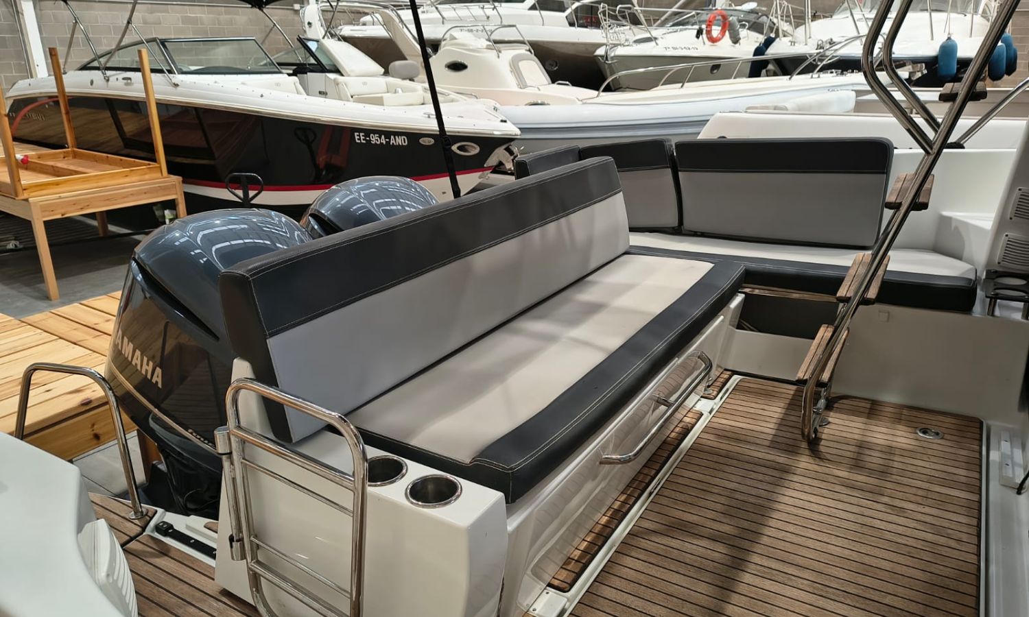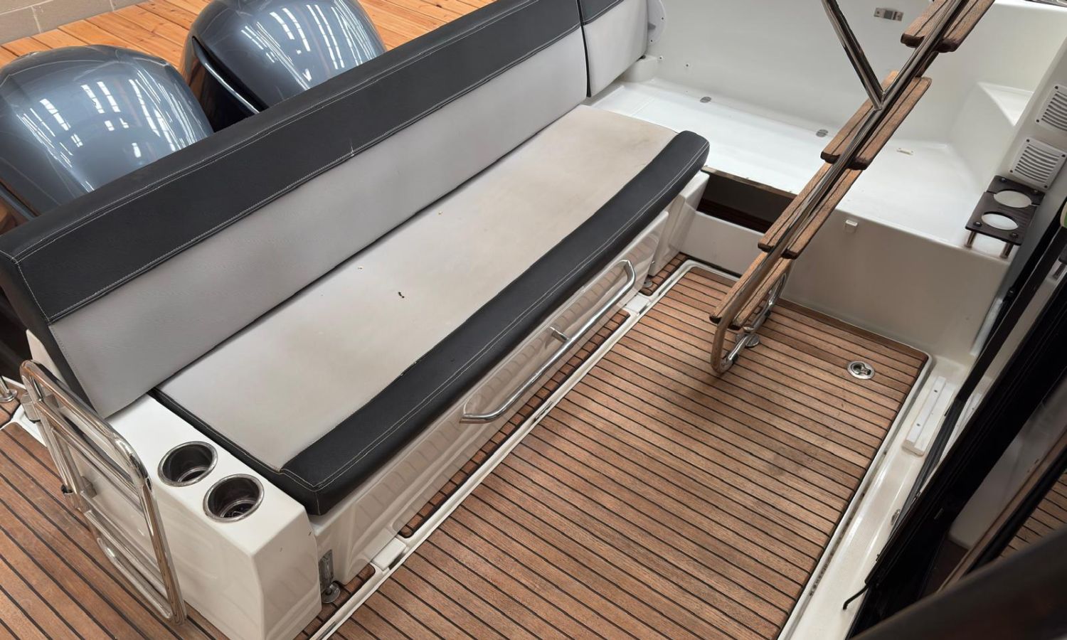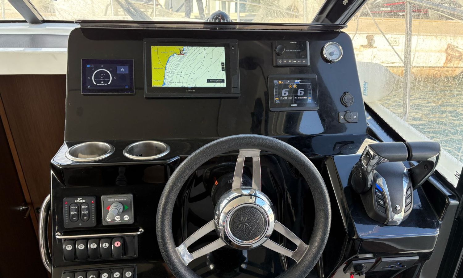 Seakeeper 2 - Nivel de equipamiento Premiere - Pack audio Fusión - Toldo para baño de sol en bañera - Bimini en el Flyng Bridge - Pack electrónico Garmin – Radio VHF - Radar – Piloto automático - Pack Confort versión Fly - Kit de amarre - Kit de fondeo - Proyector de cubierta - Propulsor de proa con doble control (Fly y Timonera) - Escalera de proa con plataforma de madera - Mesa en el Fly + cojín para Chaise Lounge - Baño de sol en Fly - Baño de sol en proa con respaldos ajustables - Flaps eléctricos - Mesas en bañera - Colchón para 3 cabina - Complemento cama doble en el salón - Armario de estiba alto en la cocina - Armario de estiba alto en el salón - Armarios de estiba alto en la cabina de proa - Plataformas y bañera en Teca - Cubierta de proa en teca - Pintura Antifoulig.Descripción embarcación
