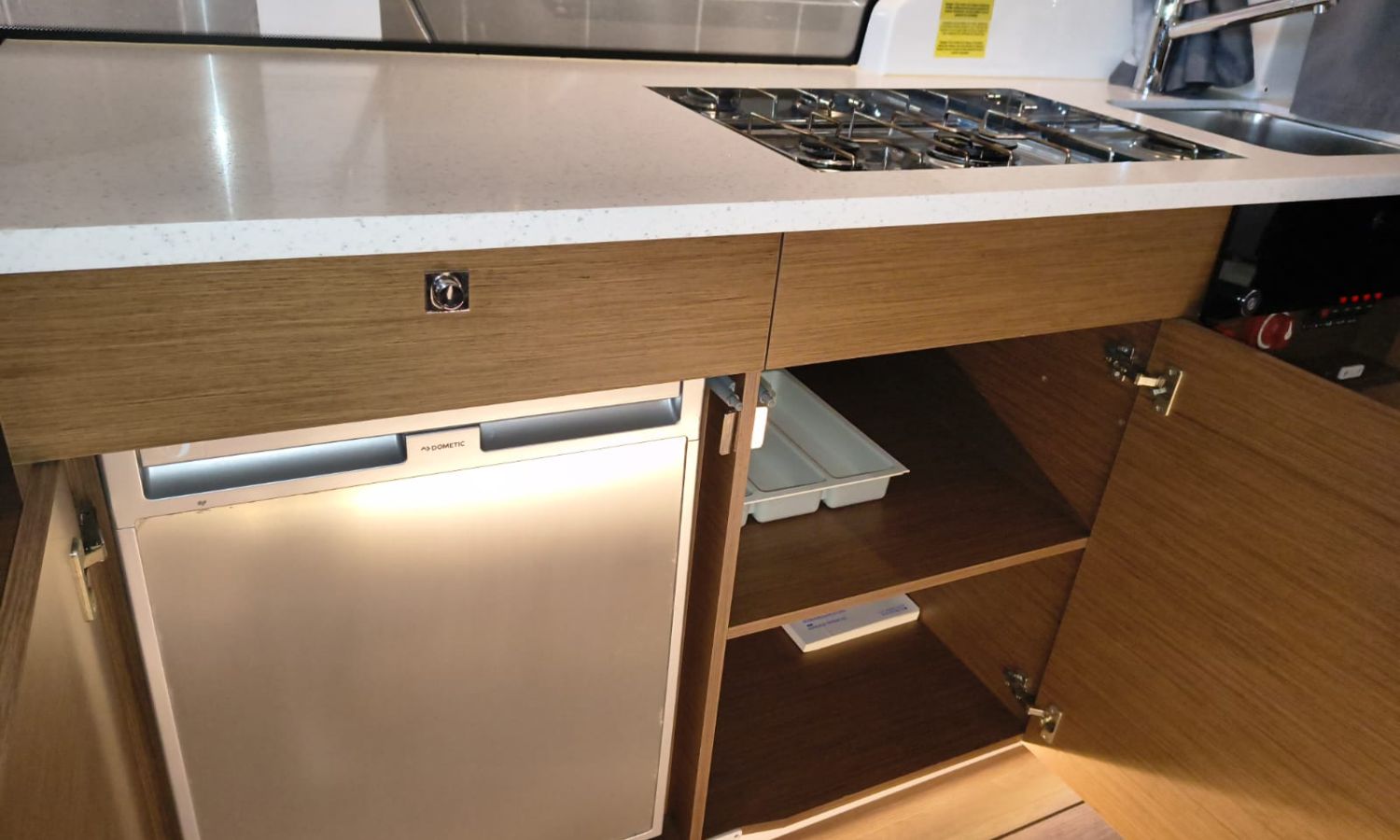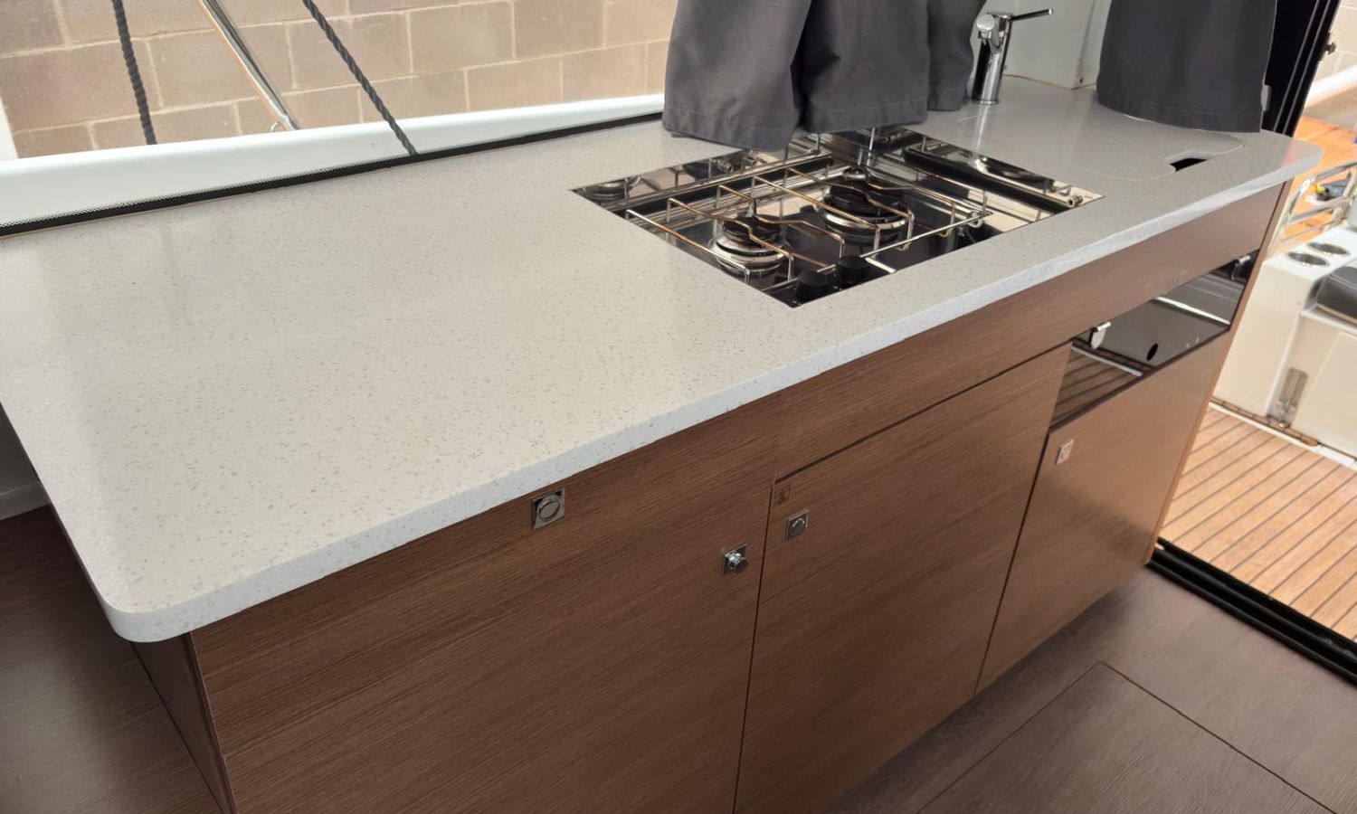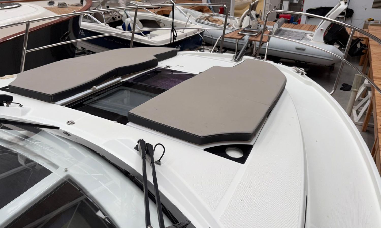 Seakeeper 2 - Nivel de equipamiento Premiere - Pack audio Fusión - Toldo para baño de sol en bañera - Bimini en el Flyng Bridge - Pack electrónico Garmin – Radio VHF - Radar – Piloto automático - Pack Confort versión Fly - Kit de amarre - Kit de fondeo - Proyector de cubierta - Propulsor de proa con doble control (Fly y Timonera) - Escalera de proa con plataforma de madera - Mesa en el Fly + cojín para Chaise Lounge - Baño de sol en Fly - Baño de sol en proa con respaldos ajustables - Flaps eléctricos - Mesas en bañera - Colchón para 3 cabina - Complemento cama doble en el salón - Armario de estiba alto en la cocina - Armario de estiba alto en el salón - Armarios de estiba alto en la cabina de proa - Plataformas y bañera en Teca - Cubierta de proa en teca - Pintura Antifoulig.Descripción embarcación