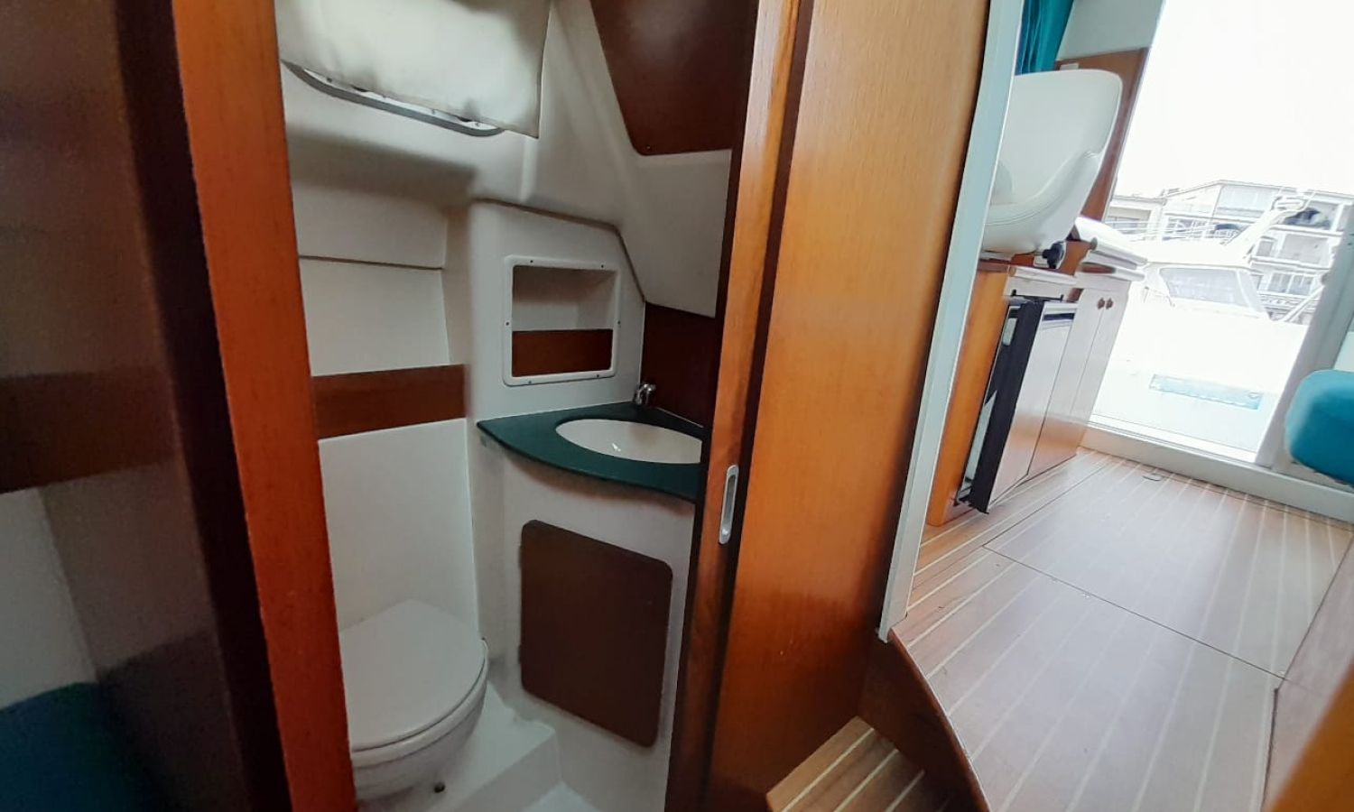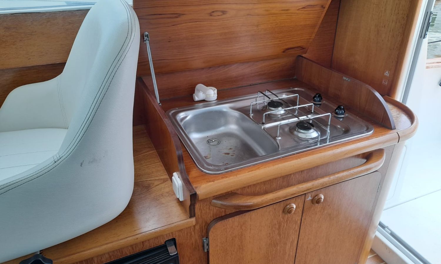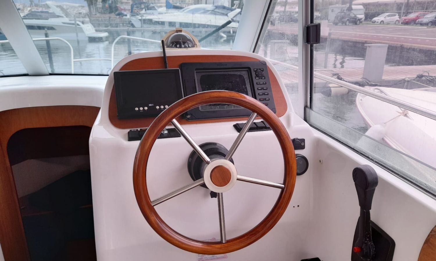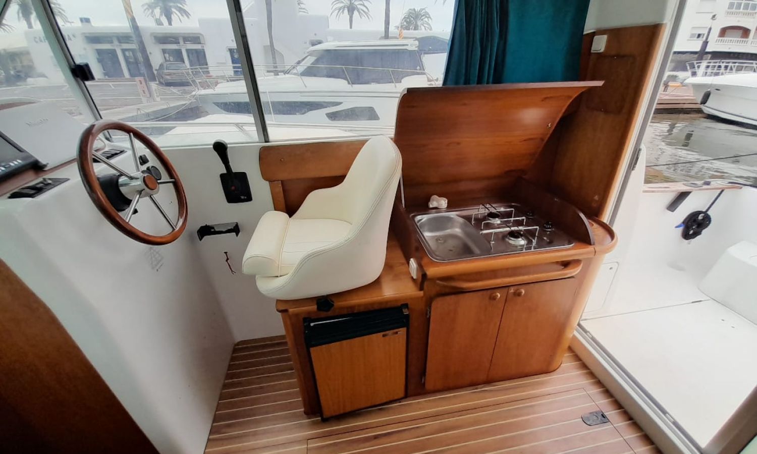Molinete de ancla eléctrico - Toma de puerto 220 V - Cargador de baterías - Cocina de gas - Nevera 12 V - GPS/Sonda - WC marino - Plataforma de baño.Descripción embarcación