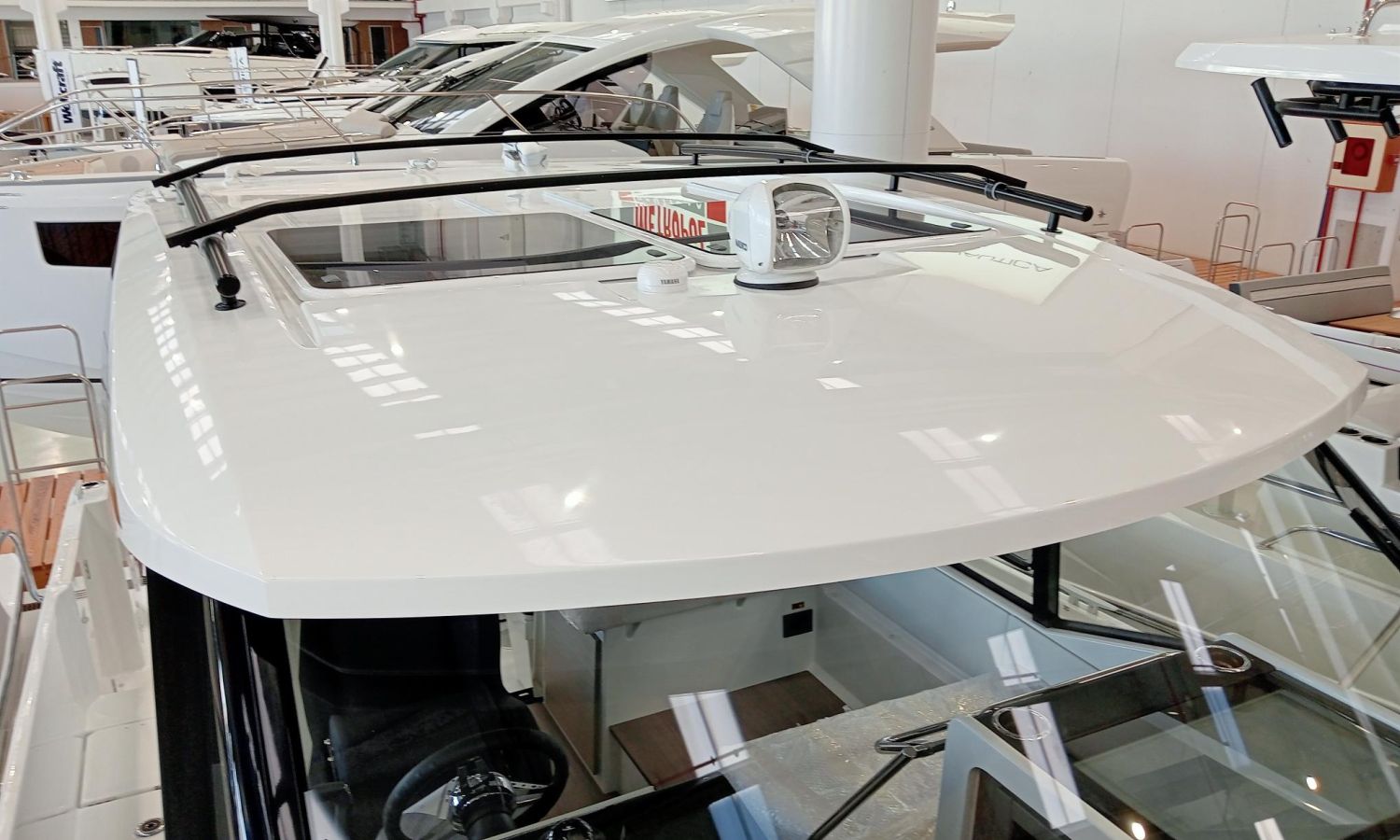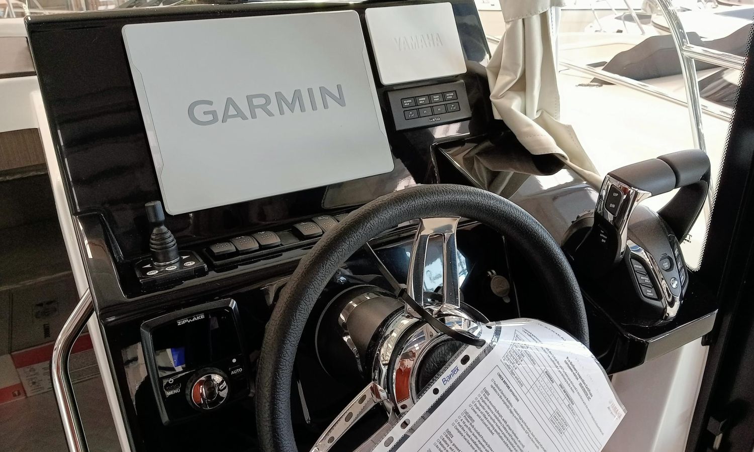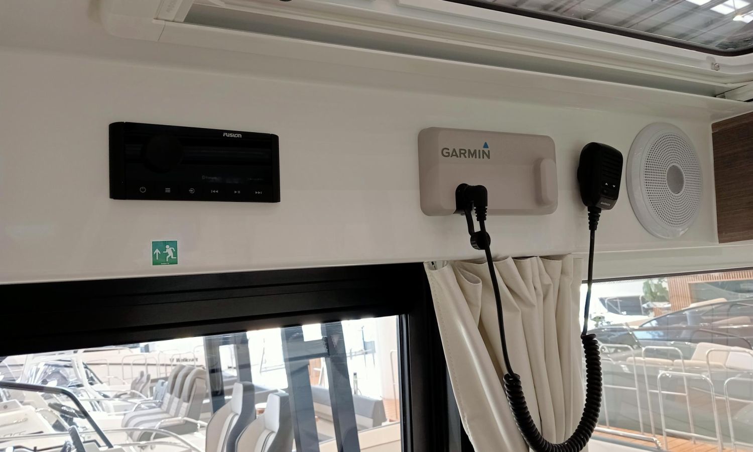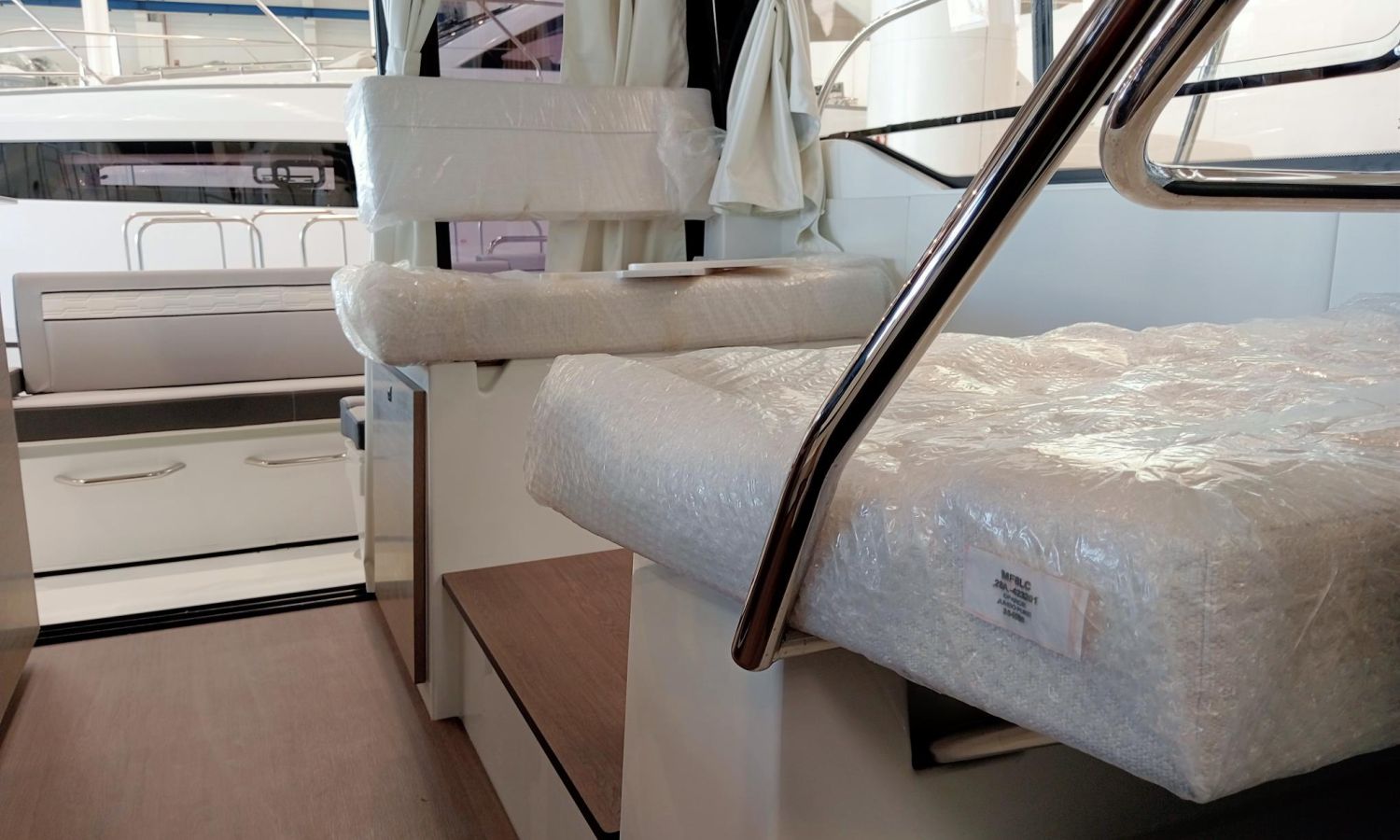 Nivel de equipamiento Premiere - Pack Confort - Kit de amarre - Kit de fondeo - Pack audio Fusión RA210 - Cortinas interiores - Tapicería Salón Jumbo Pure - Pack electrónico Garmin Mejorado - Radio VHF Garmin 215 - Salón de bañera en U con mesa transformable en solárium - Complemento cama doble en el salón - Escalera para cofre en suelo de bañera - Cojines de baño de sol proa con Lounge Chairs - Extra baño de sol proa XXL - Flaps automáticos Zipwake - Portaequipajes en techo timonera - Armarios de estiba altos en la cabina de proa - Armarios de estiba altos en la cocina - Claxón - Escalera de proa con plataforma de madera - Asiento piloto giratório - Proyector de cubierta - Pre-Rigging motores Yamaha 2x 250 SBW eléctricos - Transporte desde el Astillero- Costa-Brava - Preparación, montaje, botadura y entrega con pruebas en el mar incluido - Pintura Antifouling.Descripción embarcación