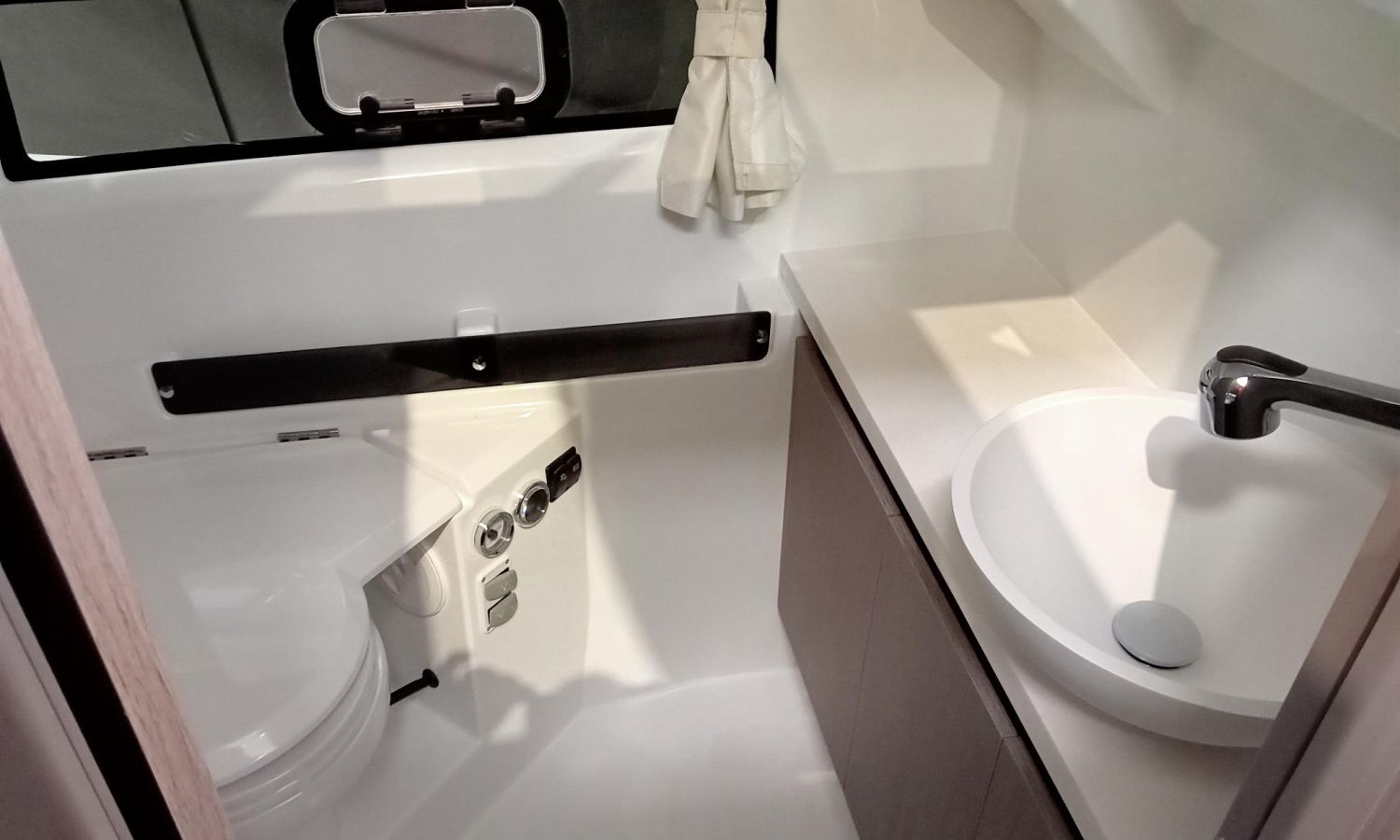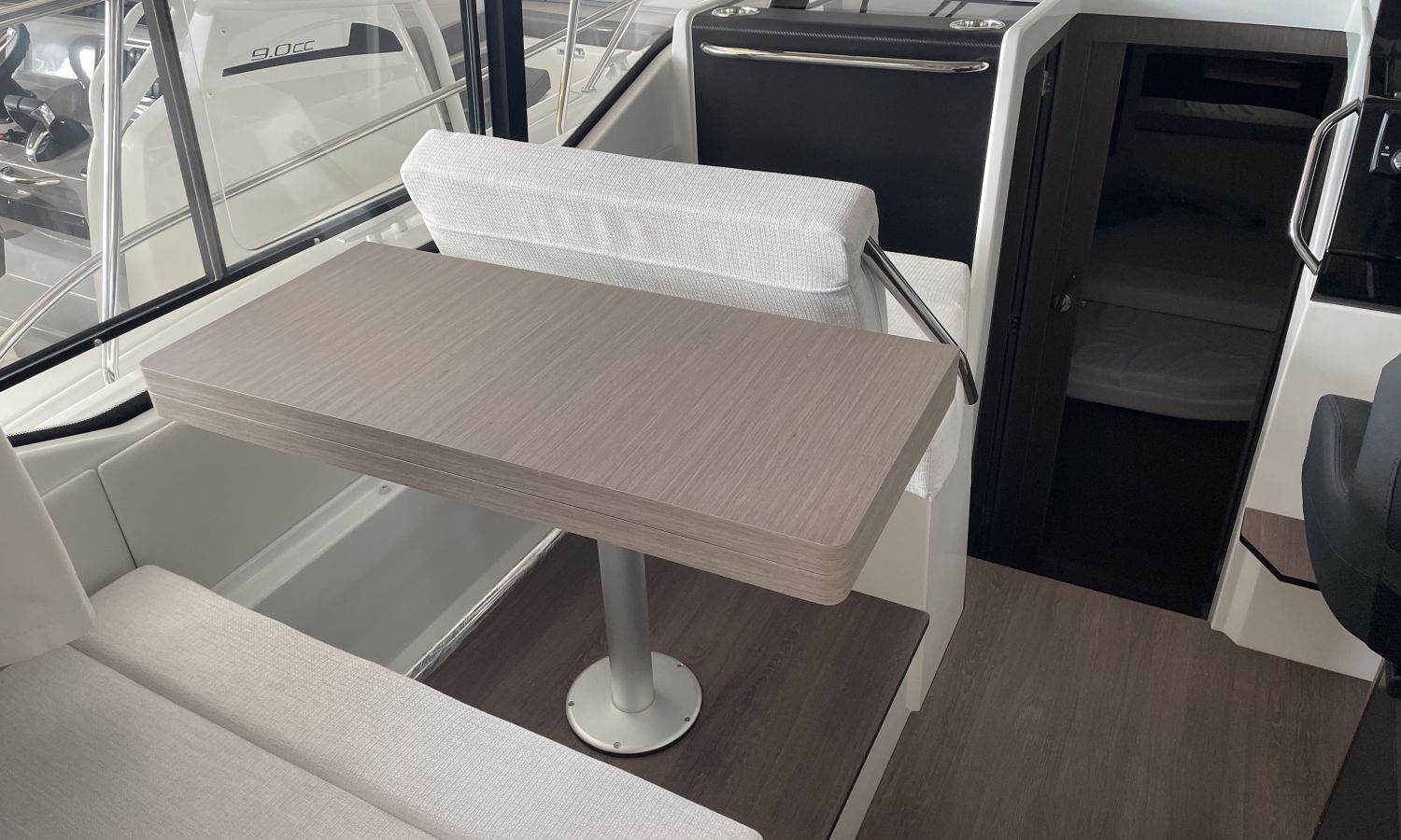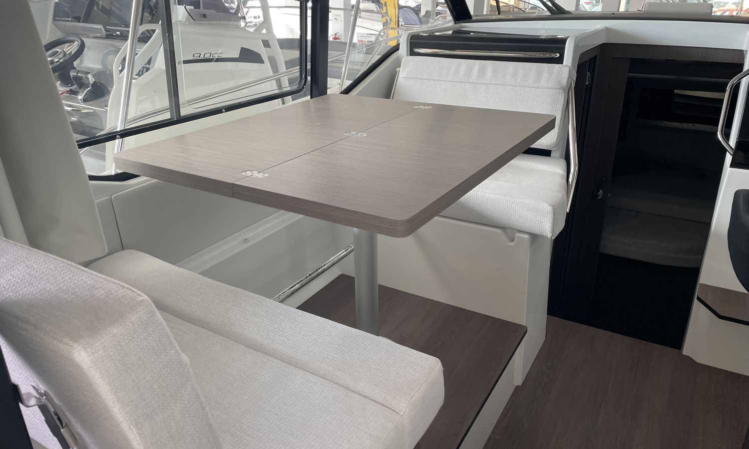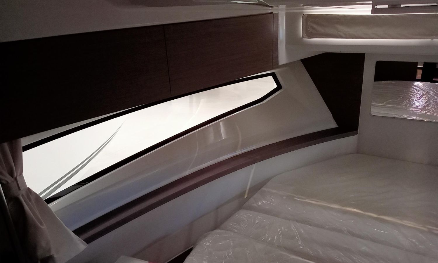 Nivel de equipamiento Premiere - Pack Confort - Kit de amarre - Kit de fondeo - Pack audio Fusión RA210 - Cortinas interiores - Tapicería Salón Jumbo Pure - Pack electrónico Garmin Mejorado - Radio VHF Garmin 215 - Salón de bañera en U con mesa transformable en solárium - Complemento cama doble en el salón - Escalera para cofre en suelo de bañera - Cojines de baño de sol proa con Lounge Chairs - Extra baño de sol proa XXL - Flaps automáticos Zipwake - Portaequipajes en techo timonera - Armarios de estiba altos en la cabina de proa - Armarios de estiba altos en la cocina - Claxón - Escalera de proa con plataforma de madera - Asiento piloto giratório - Proyector de cubierta - Pre-Rigging motores Yamaha 2x 250 SBW eléctricos - Transporte desde el Astillero- Costa-Brava - Preparación, montaje, botadura y entrega con pruebas en el mar incluido - Pintura Antifouling.Descripción embarcación