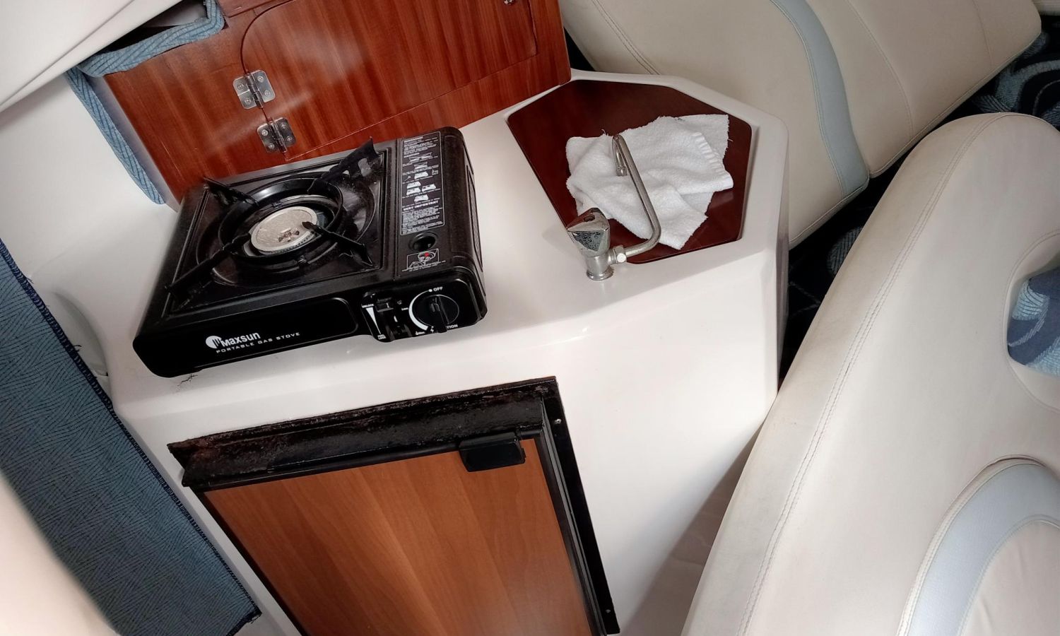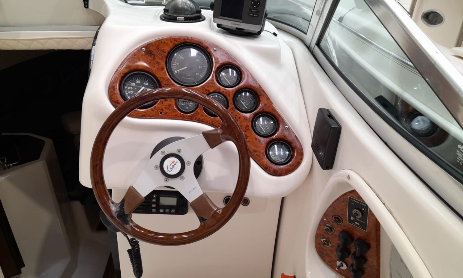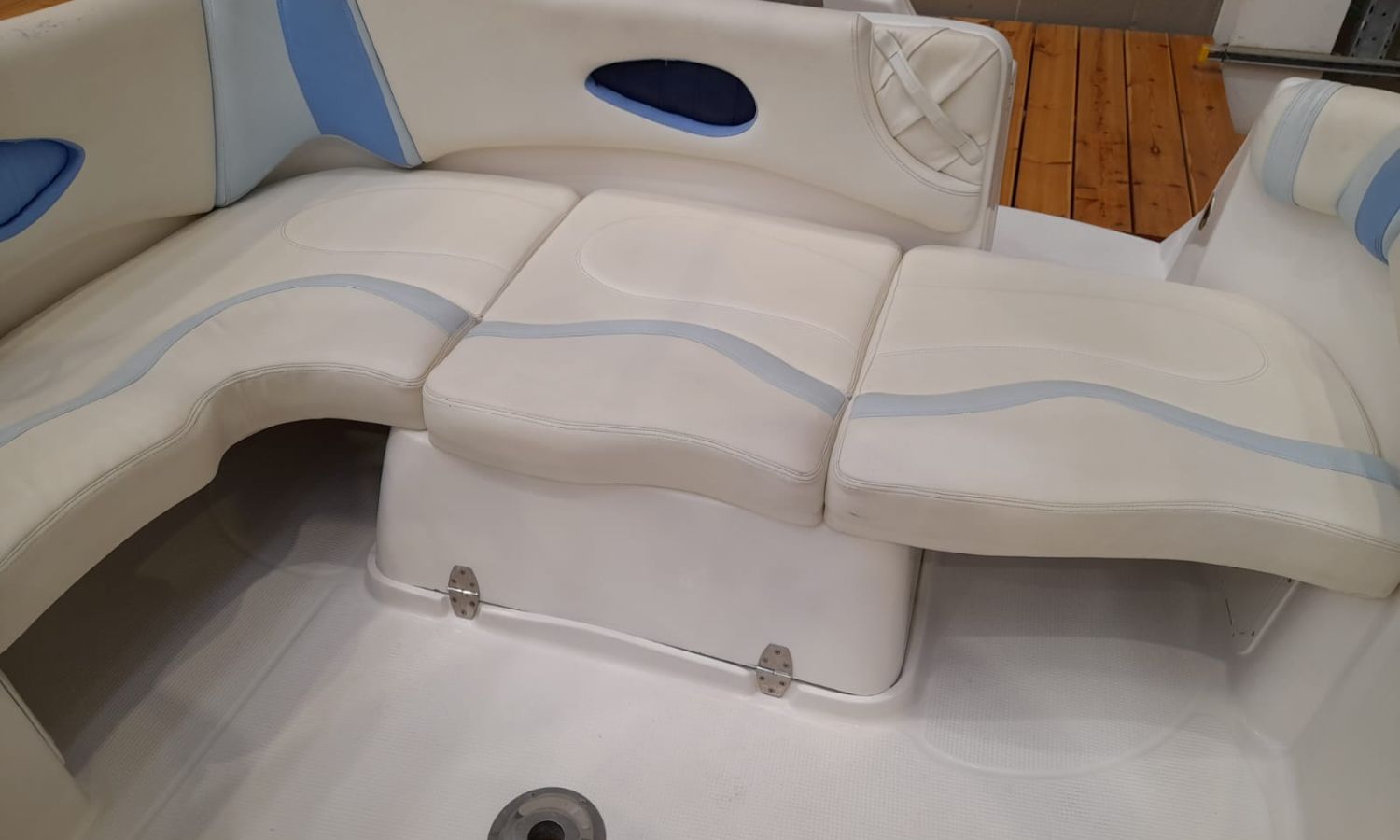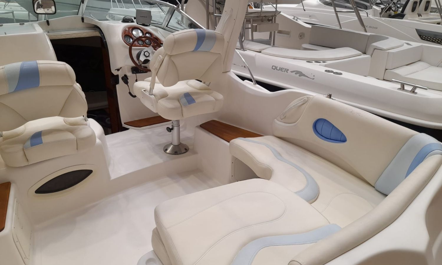Toldo parasol - Ducha en popa - Plataforma de baño con escalera - Solárium de proa - Mesa en la bañera - Solárium de popa - Mueble-bar con fregadero - Cocina a gas - Nevera 12 V. - Gps/Sonda - Ancla y cadena - VHF - Compás - WC marino - Cabina - Antifouling.