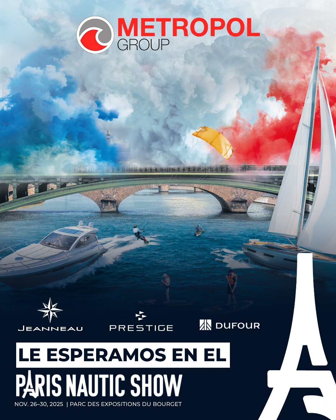 Metropol Group le invita al Salón Náutico de París, del 26 al 30 de noviembre en el Parc des Expositions du Bourget.