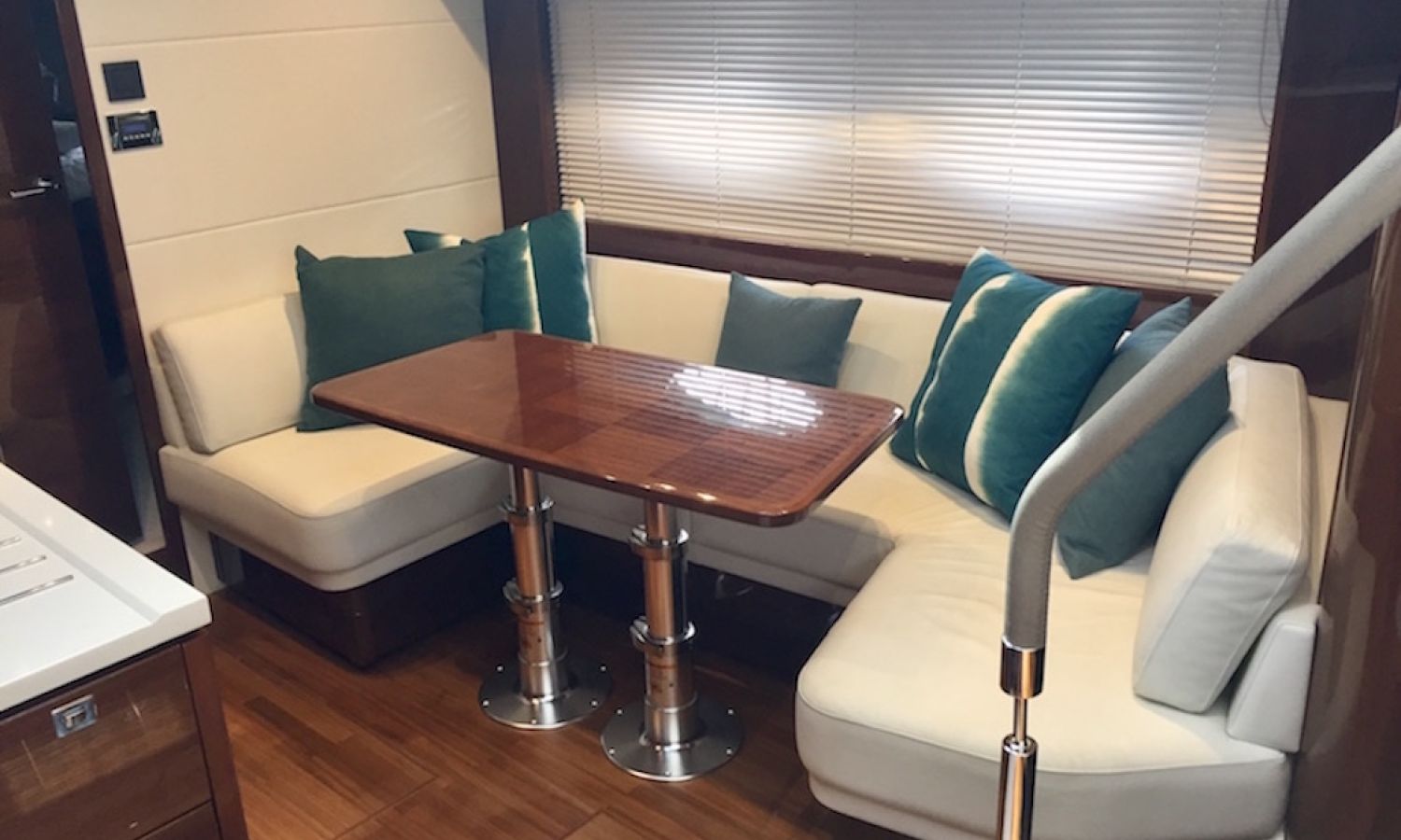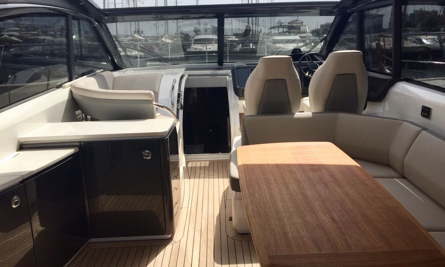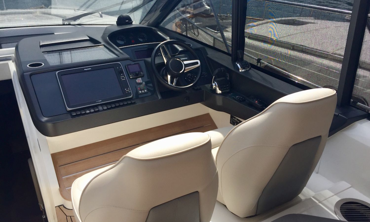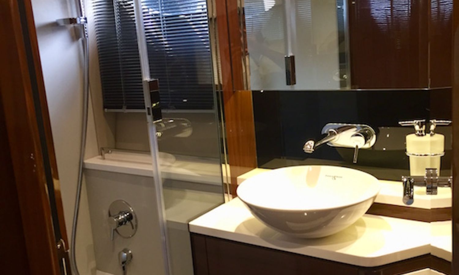 Generador - Aire acondicionado - Hélice de proa - Joystick - Flaps - Pasarela Hidráulica - Toma de puerto 220V. - Cargador de baterías - Calentador de agua - Flexiteek en bañera y plataforma de baño - Parrilla y nevera eléctrica en la bañera - Molinete de ancla eléctrico - Colchonetas solarium en proa - Ducha en popa - Mesa en la bañera - Mandos electrónicos - GPS/Plotter/Sonda/Radar - Piloto Automático - Indicador angulo de timón - Compás - Radio VHF - Equipo de audio - Antena TV + TV en Cabinas y comedor - 2 Camarotes - 2 WC marinos eléctricos con depósito de aguas negras y ducha - Cocina eléctrica - Fregadero - Microondas - Nevera.