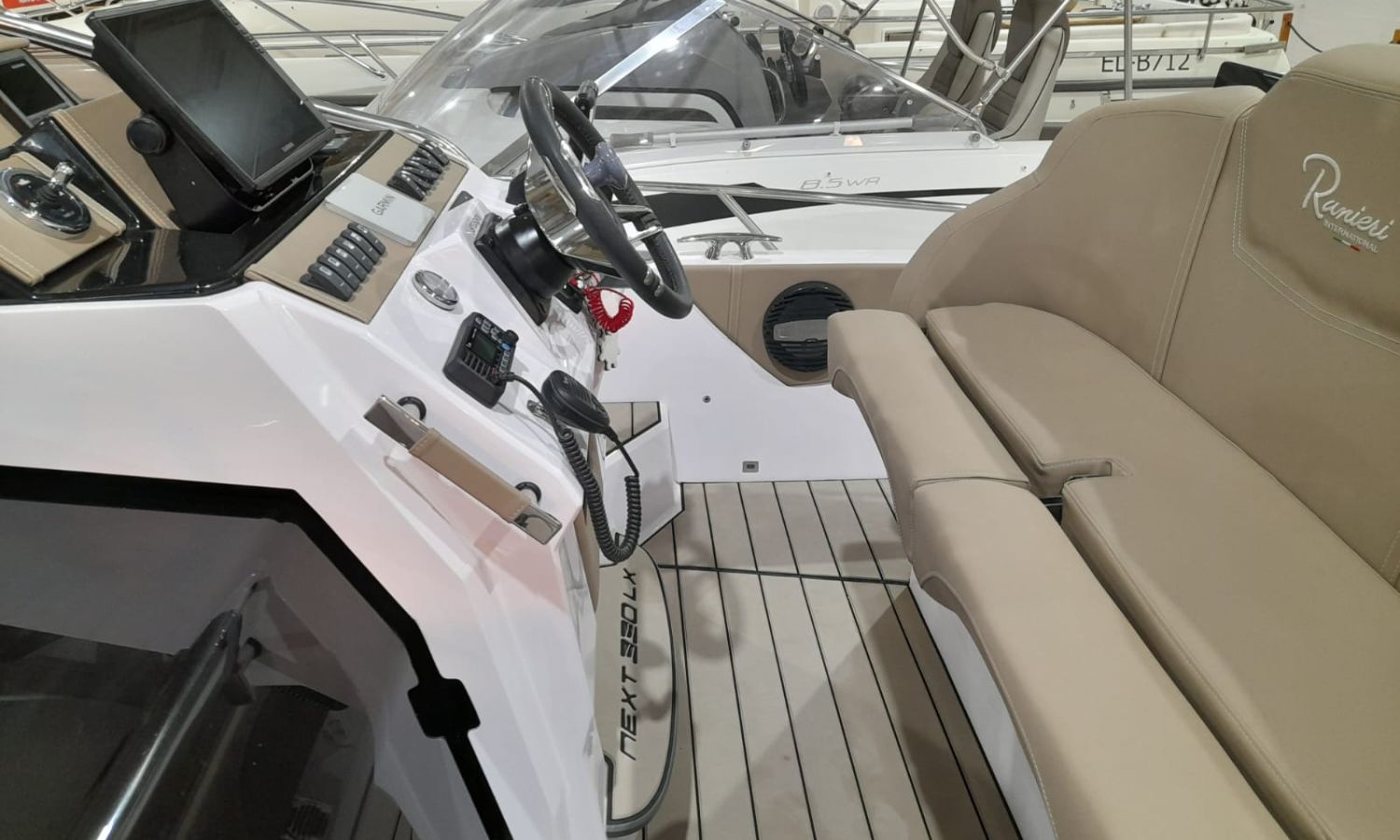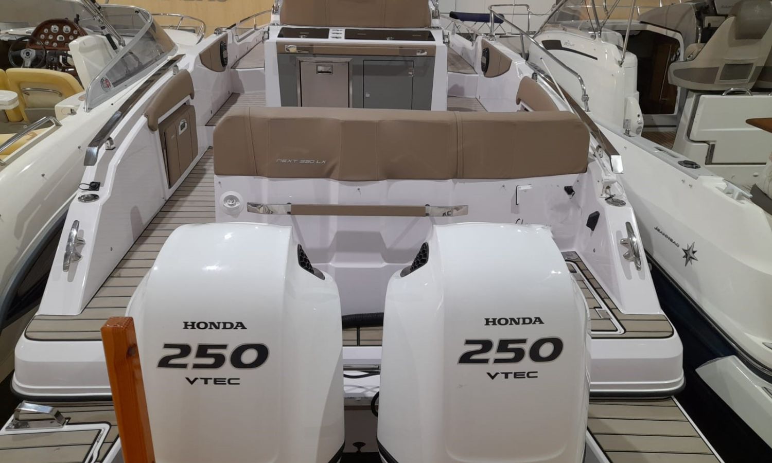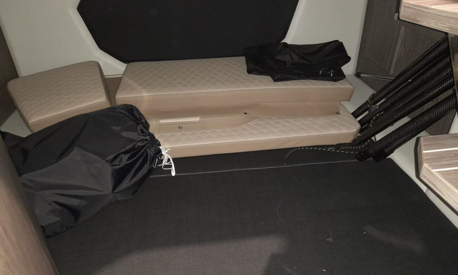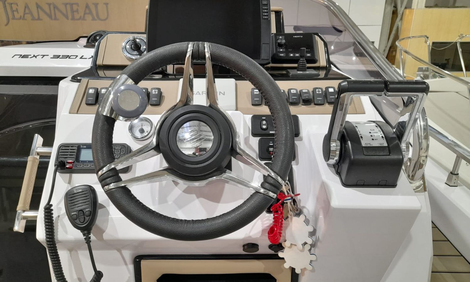 Toldo parasol - Ducha en popa - Plataforma de baño con escalera - Solárium de popa - Mesa en la bañera - Solárium de proa - Seadeck - Mueble-bar con fregadero - Nevera en la bañera 12 V - Cocina a gas - Calentador de agua - Nevera 12 V - Toma de puerto 220 V - Cargador de baterías - Hélice de proa - GPS/Plotter/Sonda - Equipo de audio - Mandos electrónicos - Piloto automático - VHF - Molinete eléctrico con ancla y cadena - WC eléctrico con depósito de aguas negras - Cabina - Lona de fondeo - Antifouling.