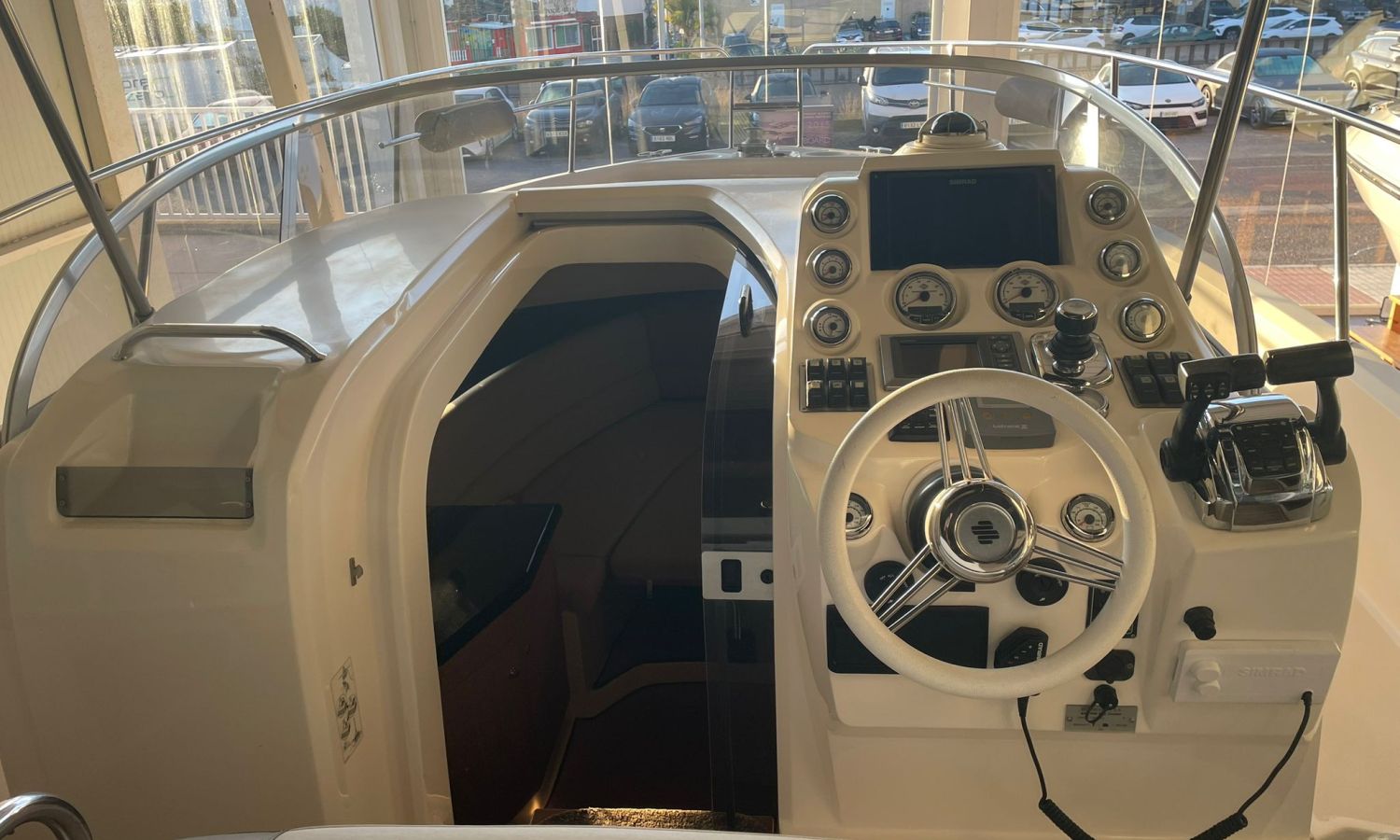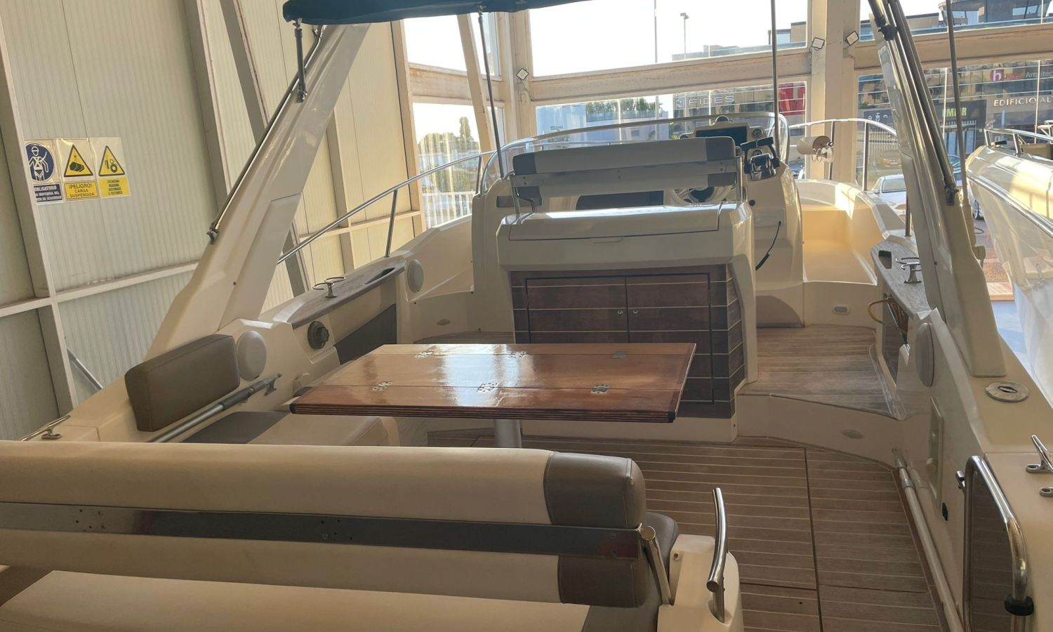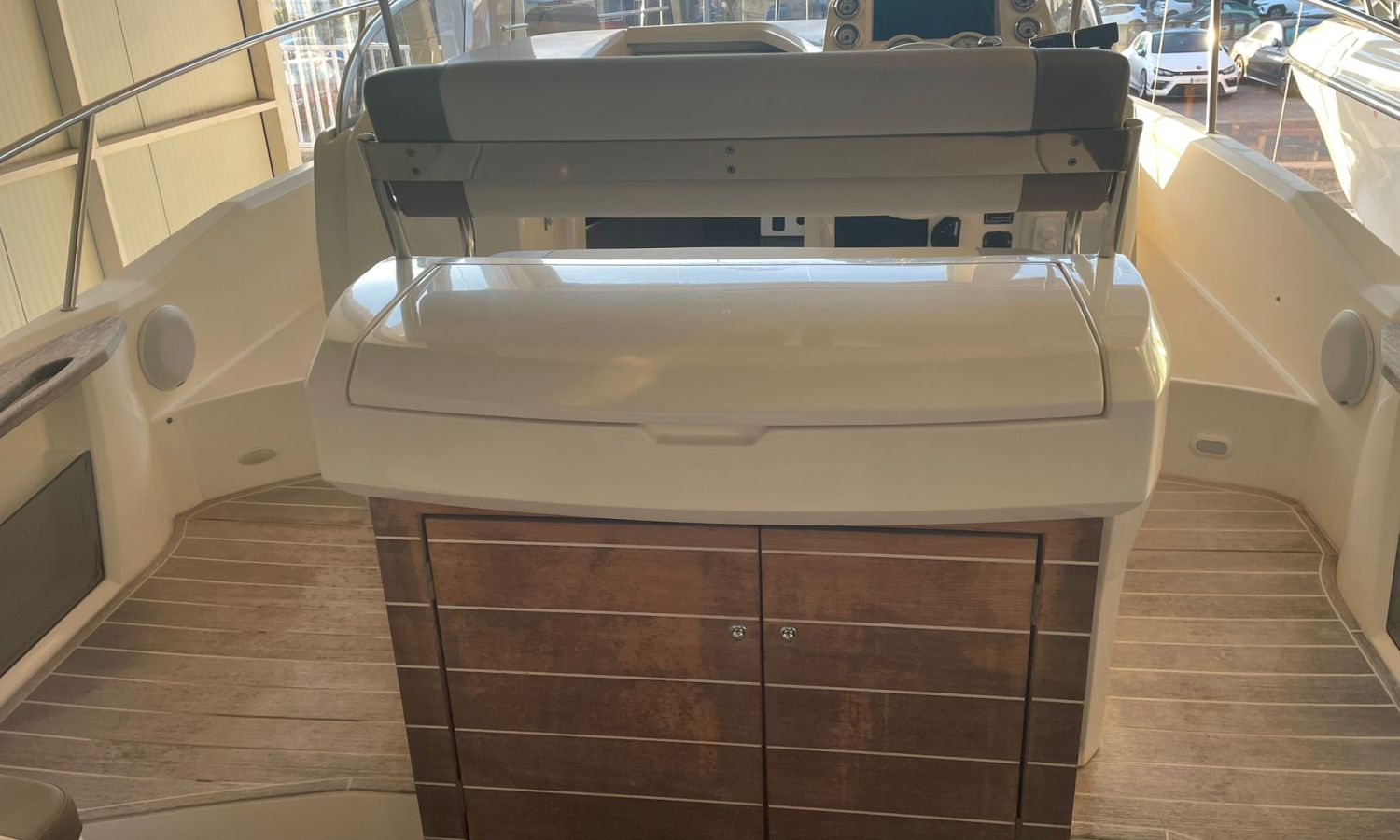 Molinete de ancla eléctrico-Vhf-Sonda Gps Plotter Garmin-Indicadores Vesselview Smartcraft Mercury-Contador de cadena-Axius Mercruiser Joystick-Cargador de baterías-Plataforma de baño-Escalera de baño-Ducha en popa-Amplio sofá bañera en forma de L-Respaldo reversible en asiento bañera-Mesa en bañera convertible en solárium-Mueble bar en bañera con fregadero-Nevera en bañera-Gran salón a proa-Escotilla practicable en salón-Gran sofá en salón en forma de U-Mesa en salón convertible en cama-WC eléctrico-Ducha en aseo-Fregadero en aseo con agua C/F-Bimini-Lona de fondeo-Solárium de proa-Arco de radar con luces-Pasillos walk-around-Gran camarote en popa con doble cama.Descripción embarcación