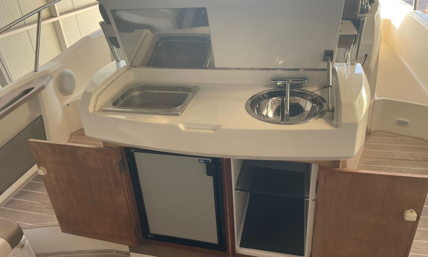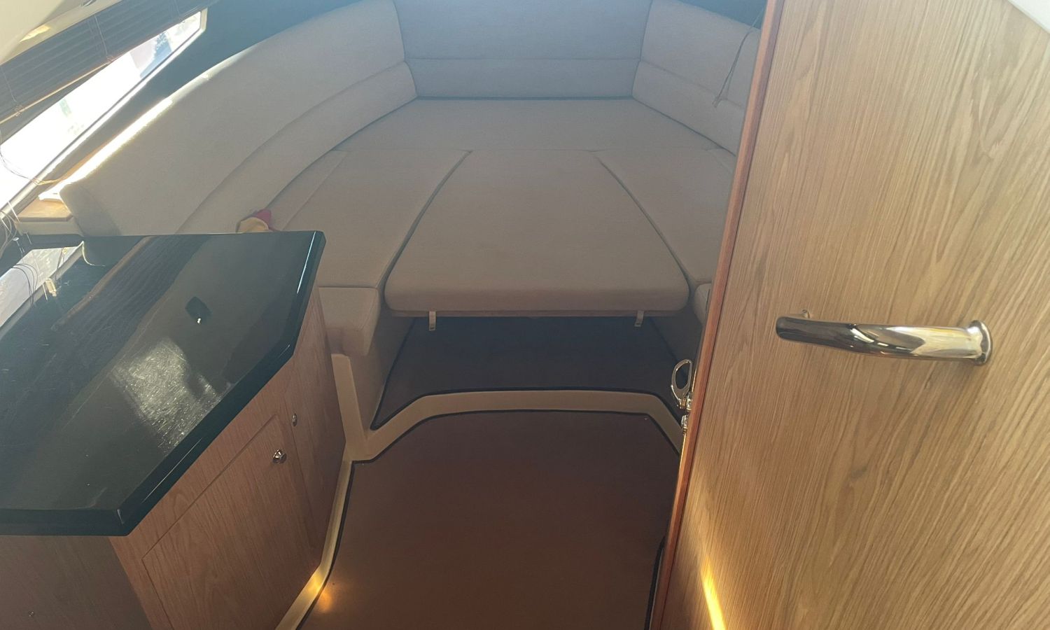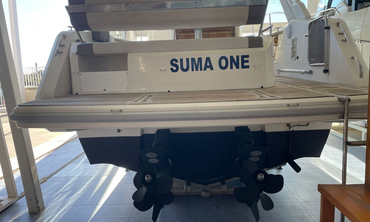 Molinete de ancla eléctrico-Vhf-Sonda Gps Plotter Garmin-Indicadores Vesselview Smartcraft Mercury-Contador de cadena-Axius Mercruiser Joystick-Cargador de baterías-Plataforma de baño-Escalera de baño-Ducha en popa-Amplio sofá bañera en forma de L-Respaldo reversible en asiento bañera-Mesa en bañera convertible en solárium-Mueble bar en bañera con fregadero-Nevera en bañera-Gran salón a proa-Escotilla practicable en salón-Gran sofá en salón en forma de U-Mesa en salón convertible en cama-WC eléctrico-Ducha en aseo-Fregadero en aseo con agua C/F-Bimini-Lona de fondeo-Solárium de proa-Arco de radar con luces-Pasillos walk-around-Gran camarote en popa con doble cama.Descripción embarcación