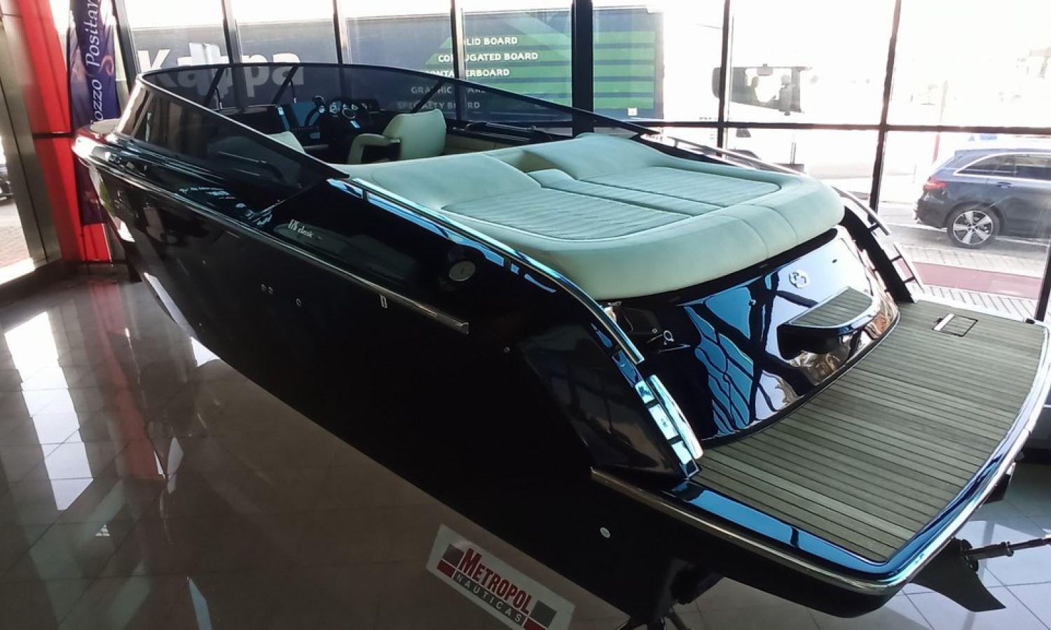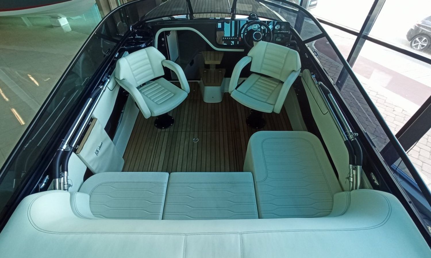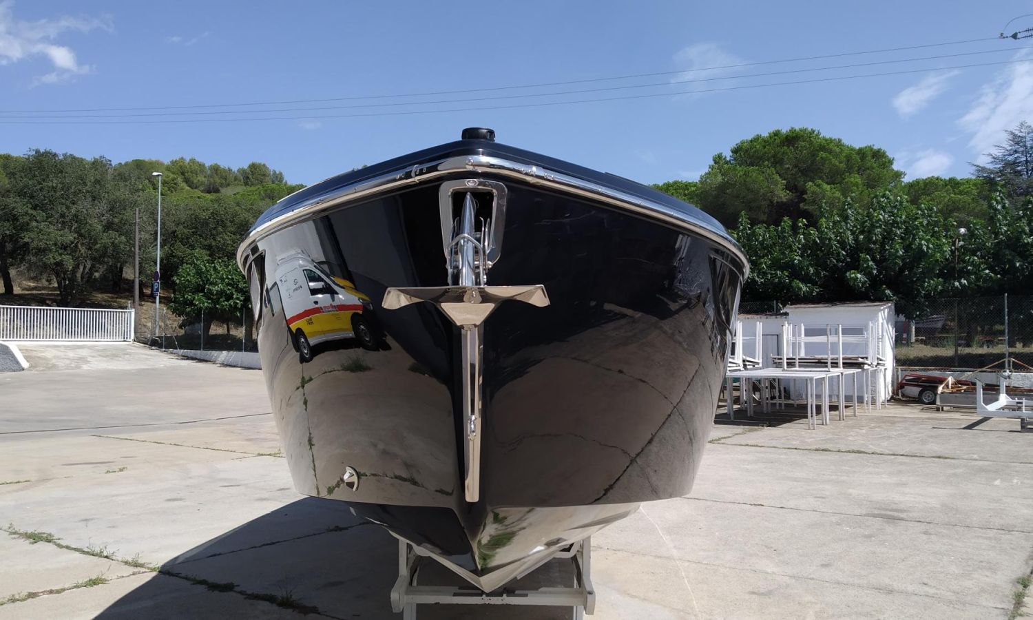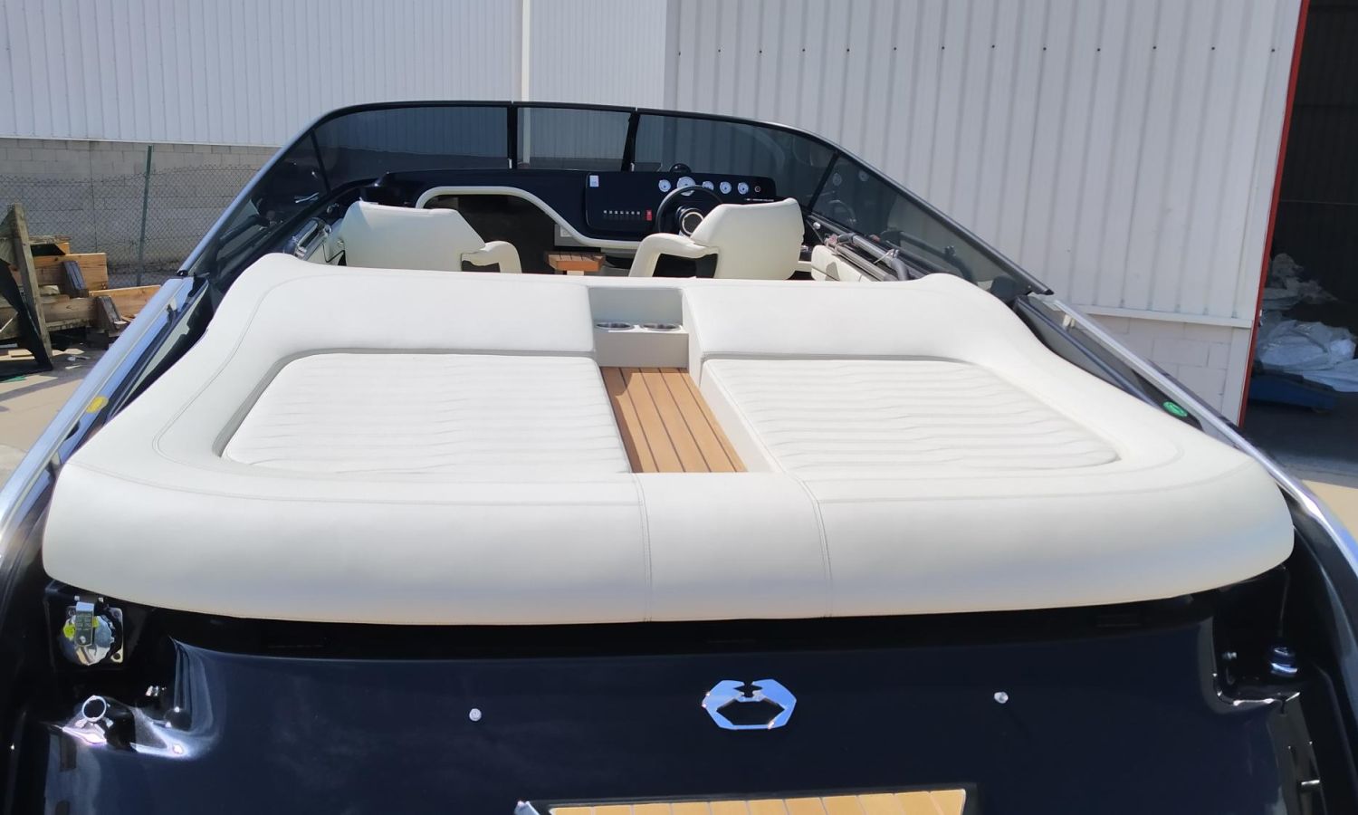 Réservoir d'eaux noires - Taud de soleil microperforée noir - Propulseur d´étrave avec extincteur automatique - Réfrigérateur cabine 42 l - Installation électrique 230 V avec chargeur de batteries et prise de quai avec câble de connexion - 6 Pare-battages et couvertures - Radio Fusion Bluetooth/USB - Table de cockpit avec housse - Teck sur le pont de proue complet - Cockpit en teck - Taud de mouillage - Guindeau électrique avec ancre et chaîne - WC marin électrique avec couvercle - Couvertures pare-battages couleur alternative du standard - Sellerie extérieure Silvertex - Coque et pont en couleur laquée - Certificat CE et déclaration de conformité - Transport du chantier naval à la Costa Brava.Description du bateau