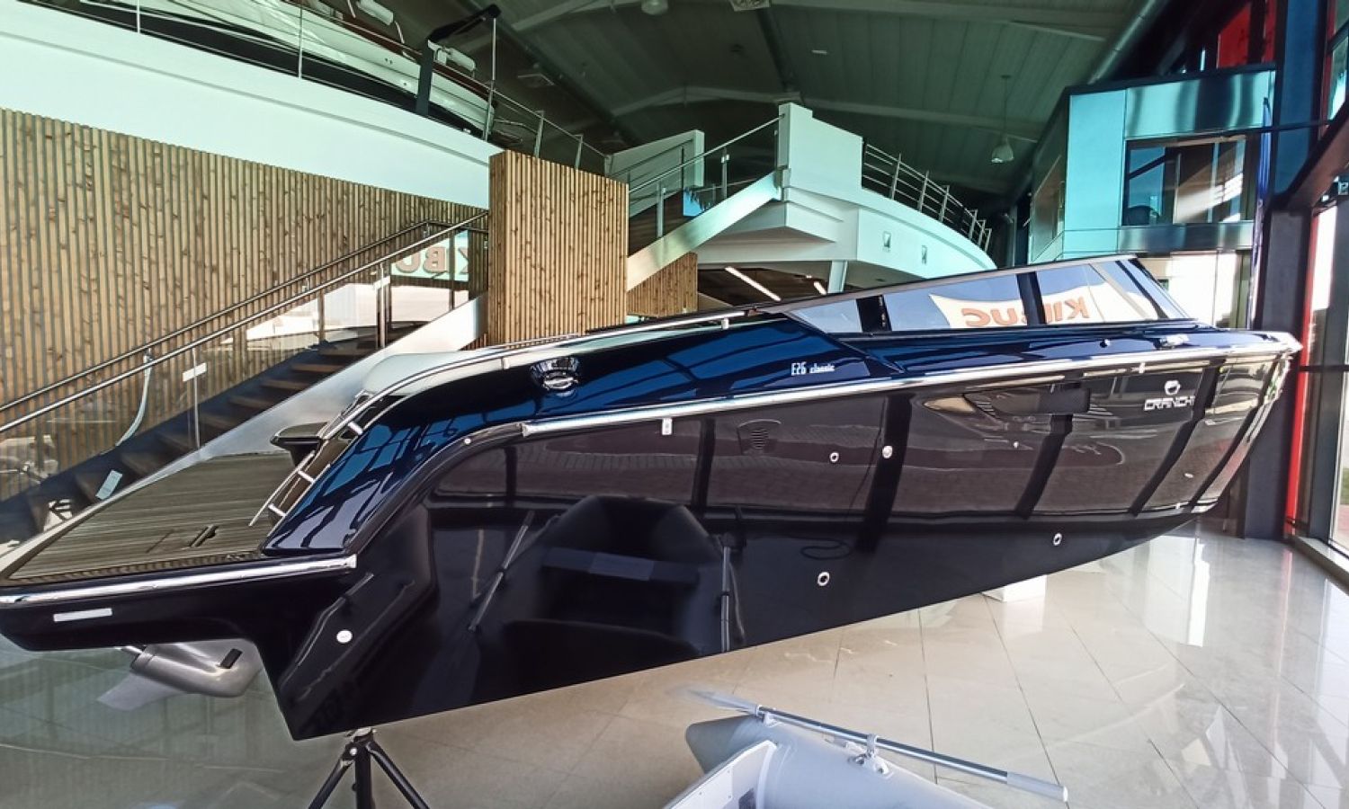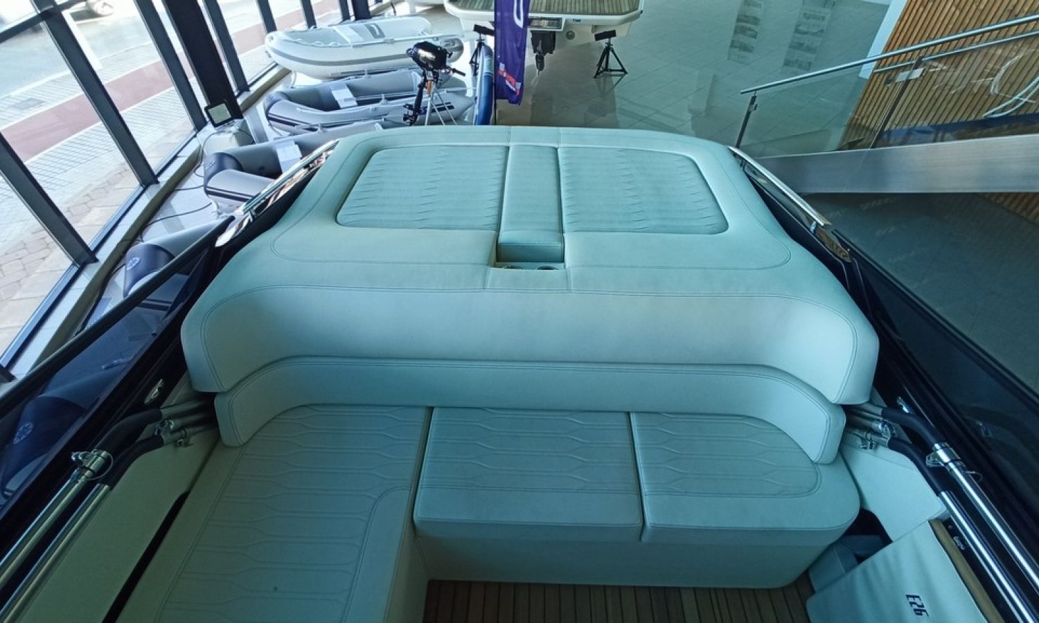 Bateau neuf en stock. Livraison immédiate. Modèle E 26 Classic du chantier naval italien Cranchi de 7,85 mètres de longueur totale. Bateau avec plate-forme de bain confortable, avec cabine et bain de soleil arrière.PAL-Nº 7813Z