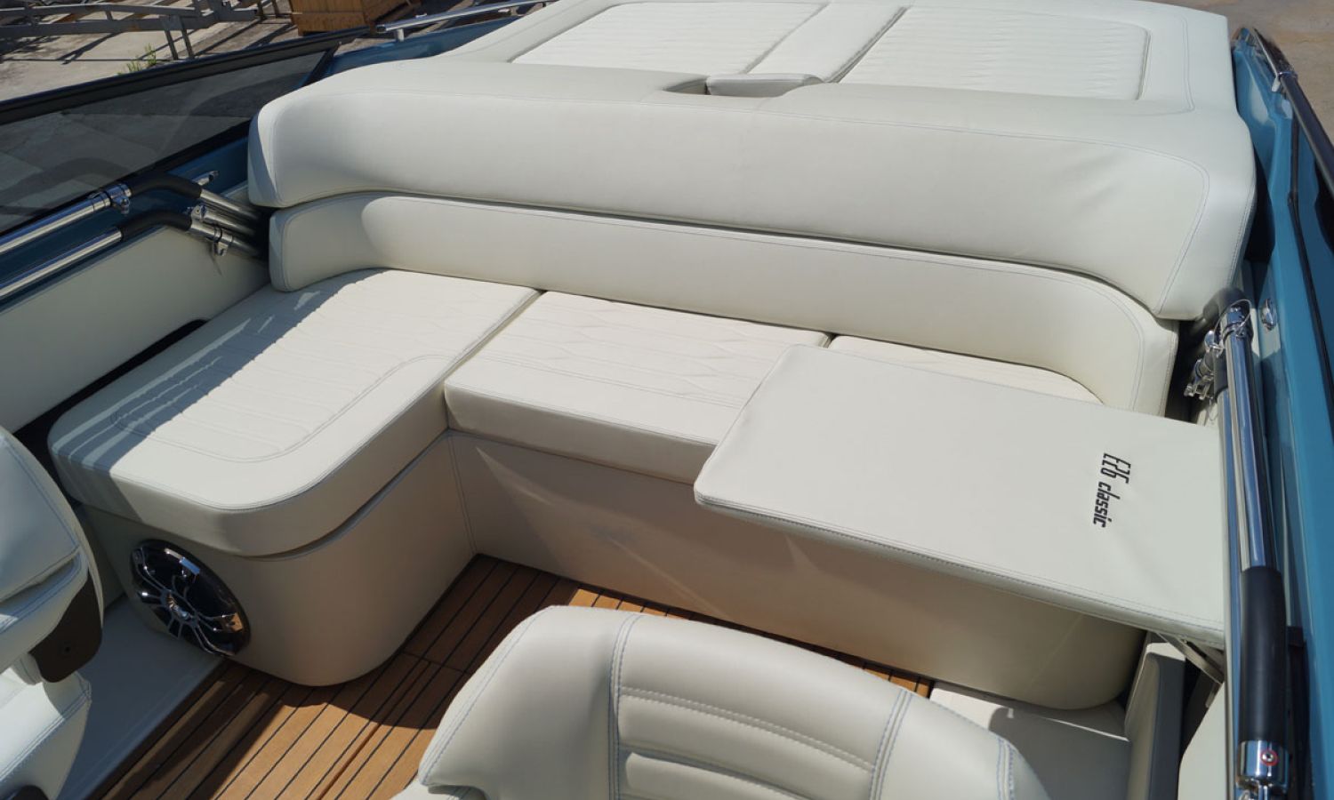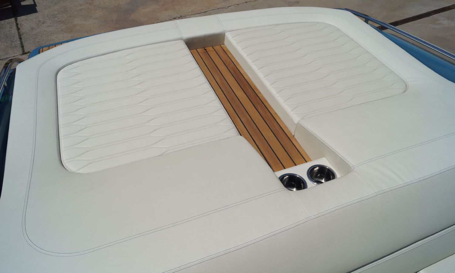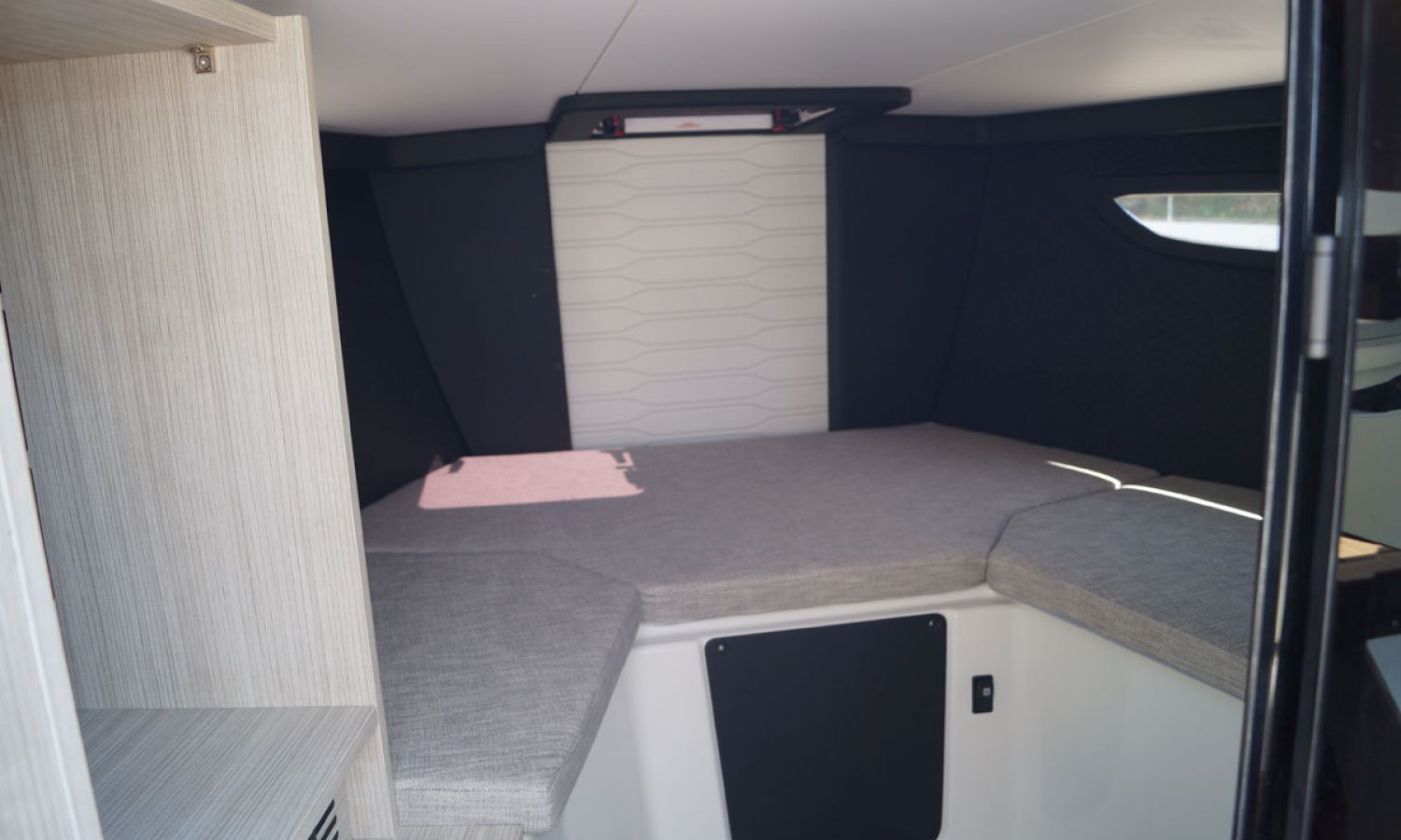 Taud de soleil microperforée noir - Coussin bain de soleil avant - Propulseur d´étrave avec extincteur automatique - Réfrigérateur cabine 42 l - GPS/Chartplotter à couleur + transducteur pour la profondeur, la température de l'eau, interfacé avec le moteur - Installation électrique 230 V avec chargeur de batteries et prise de quai avec câble de connexion - 6 Pare-battages et couvertures - Radio Fusion Bluetooth/USB, 2 haut-parleurs, amplificateur, subwoofer et télécommande dans le cockpit - Table de cockpit avec housse - Teck sur le pont de proue complet - Cockpit en teck - Taud de mouillage - Guindeau électrique 500 W avec 30 m chaîne et ancre 8 kg Ultramarine en acier inoxydable - Couvertures pare-battages couleur alternative du standard - Sellerie extérieure Silvertex couleur alternative du standard - Coque et pont en couleur laquée - Certificat CE et déclaration de conformité - Transport du chantier naval à la Costa Brava.Description du bateau